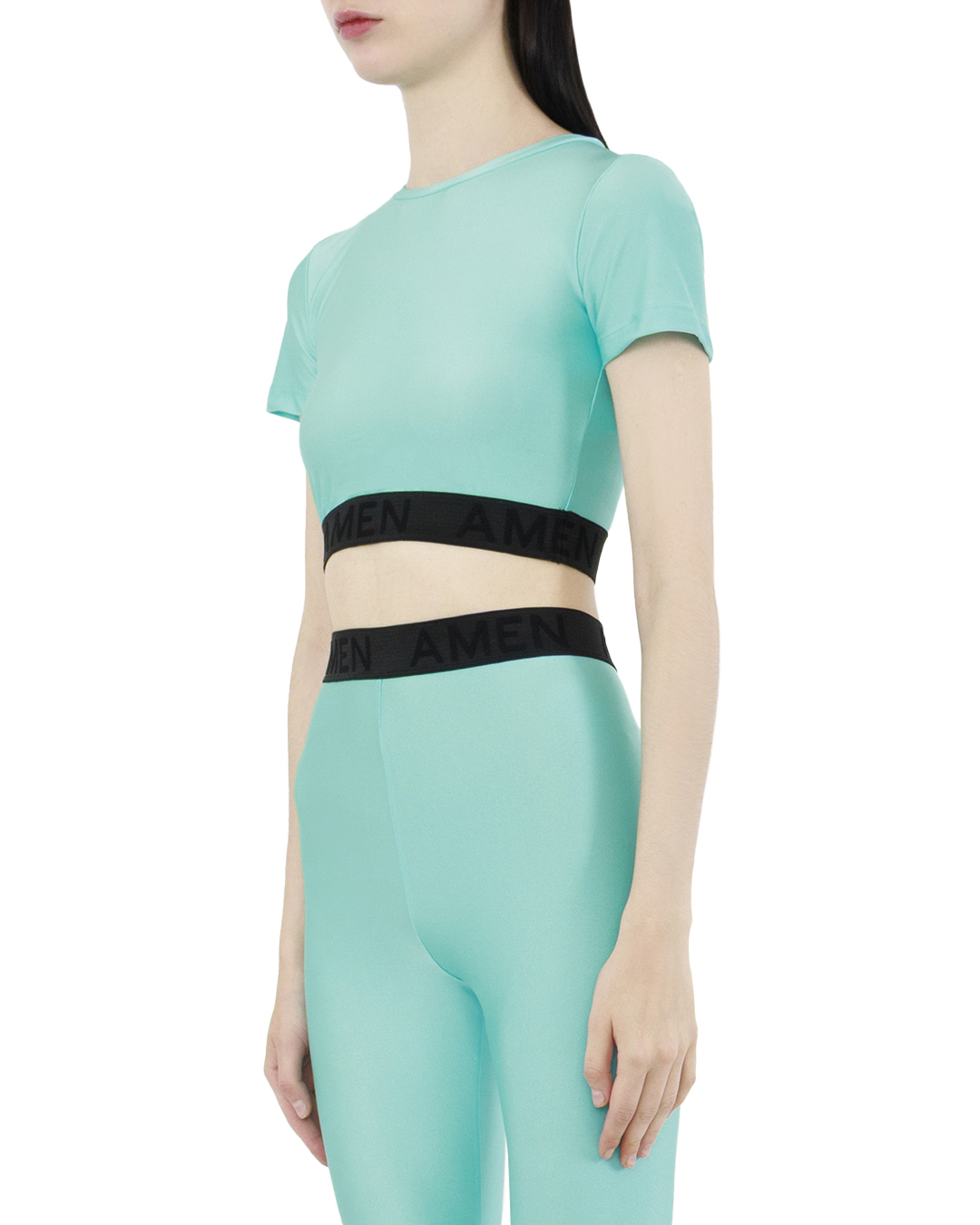 Этот топ воплощает в себе свежий и современный стиль, идеально подходящий для создания динамичных и модных образов. Нежно-бирюзовый оттенок добавляет легкости и свежести, делая его великолепным акцентом в вашем гардеробе. Минималистичный крой с классическим круглым вырезом и короткими рукавами придает топу универсальность, позволяя легко комбинировать его с различными предметами гардероба. Удлиненный крой чуть выше талии добавляет современный штрих и акцентирует внимание на фигуре. Контрастная эластичная лента с тонким брендингом на талии добавляет спортивный акцент и создает завершенный образ. Этот элемент придает топу модную направленность и динамичность. Материал обеспечивает комфорт и легкость, что делает топ идеальным выбором как для активного отдыха, так и для повседневных выходов. Этот топ станет вашим стильным союзником, позволяя экспериментировать с модными сочетаниями и создавая стильный, но непринужденный образ.