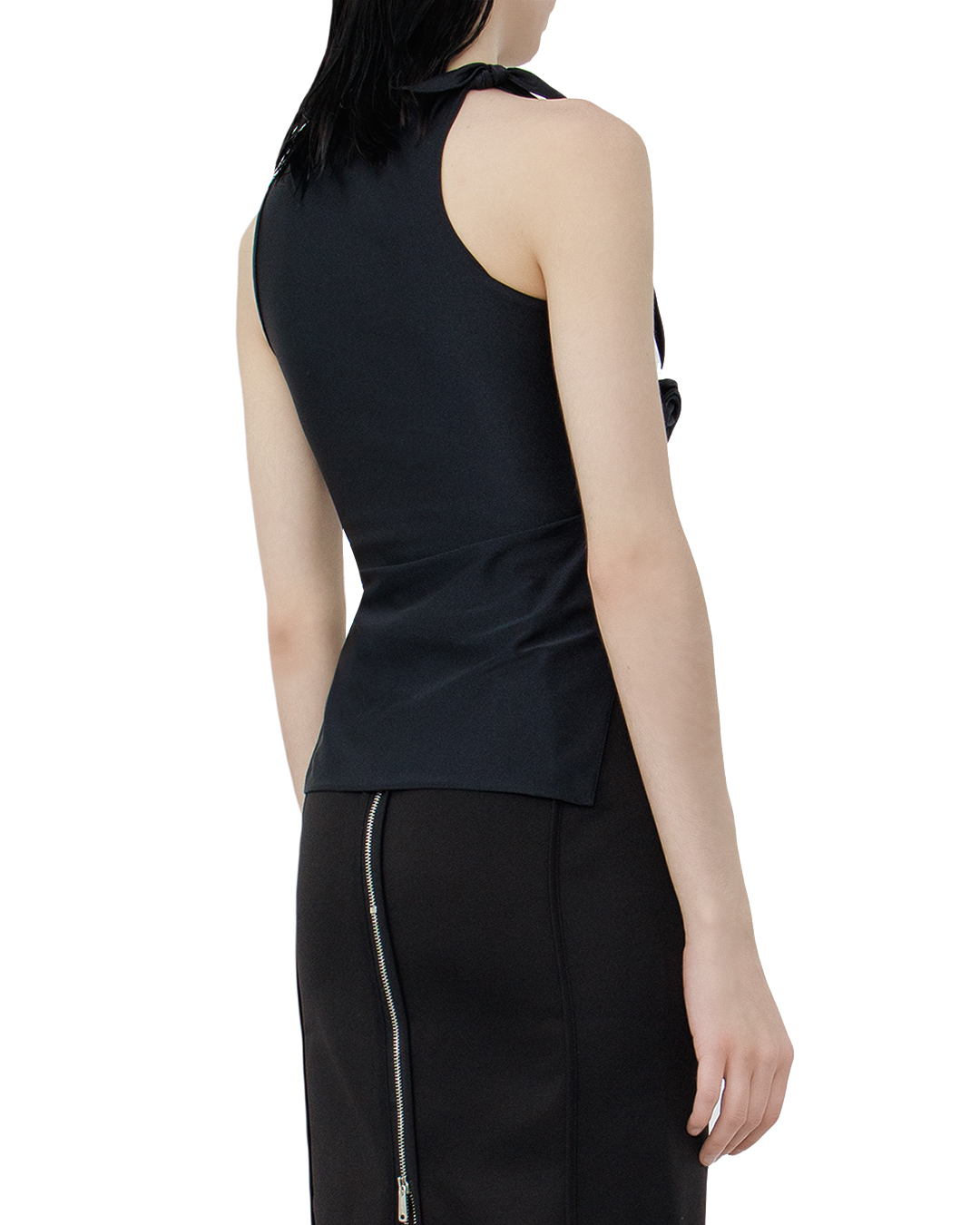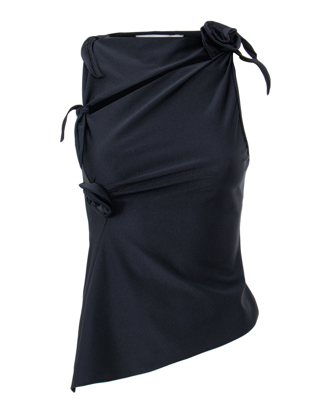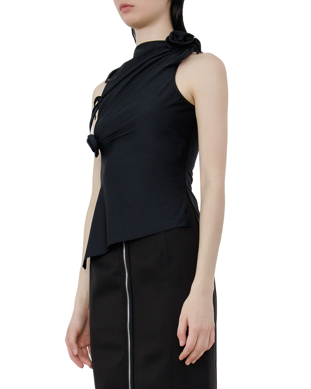 Асимметричный топ станет ярким акцентом в вашем гардеробе, сочетая элегантность и современный стиль. Изготовленный из высококачественного нейлона черного цвета, он обладает отличной прочностью и легкостью, что обеспечивает комфорт при носке и позволяет коже дышать. Дизайн топа включает в себя сборки, которые добавляют текстуру и объем, создавая эффектный силуэт. Асимметричный крой придает модели динамичность и оригинальность, позволяя вам выделяться в любой обстановке. Особое внимание привлекают декоративные розы, выполненные из того же материала, что и топ. Эти романтичные элементы подчеркивают женственность и утонченность образа, добавляя нотку игривости. Топ отлично сочетается как с классическими брюками для создания элегантного образа на вечерние мероприятия, так и с джинсами или юбками для более повседневного стиля. Он идеально подходит для тех, кто хочет добавить в свой гардероб модные акценты с ноткой креативности. С этим асимметричным топом вы сможете создавать разнообразные образы — от романтичных до смелых!