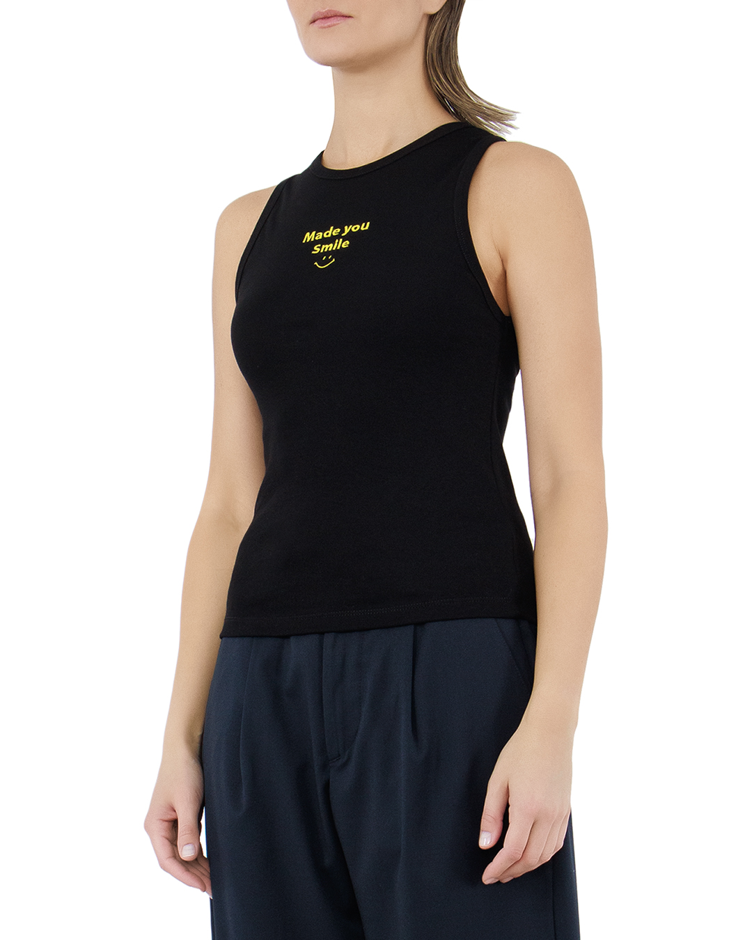 Этот топ от JOSHUA'S воплощает лёгкость и хорошее настроение благодаря своему минималистичному дизайну и ярким деталям. Выполненный из высококачественного хлопка с добавлением эластана, он идеально облегает фигуру, подчёркивая её достоинства и обеспечивая комфорт на весь день. Главный акцент — вышивка ярко-синего цвета с надписью "Made you Smile" и милым смайлом, которая располагается на груди. Этот игривый элемент придаёт топу харизму и очарование, подчёркивая индивидуальность и позитивное настроение. Топ имеет изысканный круглый вырез и аккуратно обработанные края, благодаря чему создаётся чистый и лаконичный силуэт. Продуманные детали и чёткие линии швов свидетельствуют о высоком уровне мастерства исполнения и делают изделие долговечным. Этот топ легко сочетается с разнообразными элементами гардероба, будь то кэжуал-джинсы или стильная юбка. Он добавит яркий акцент и нотку игривости в любой образ, сделав его незабываемым.