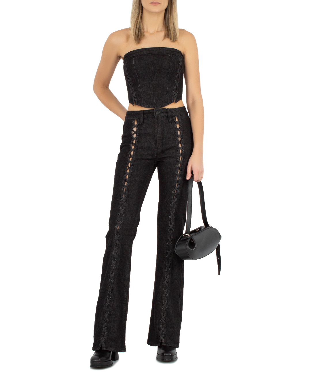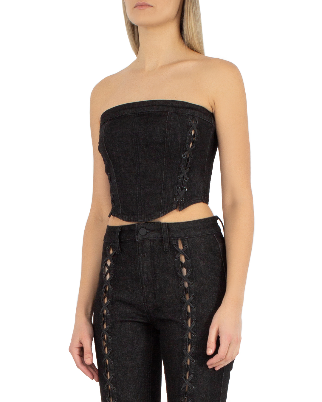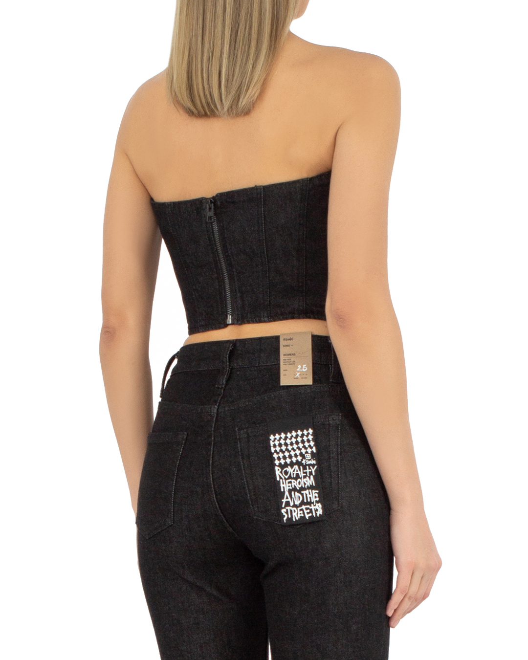 Корсетный кроп-топ KSUBI из хлопкового денима. Укороченное изделие облегающего силуэта с застежкой на молнию на спине.