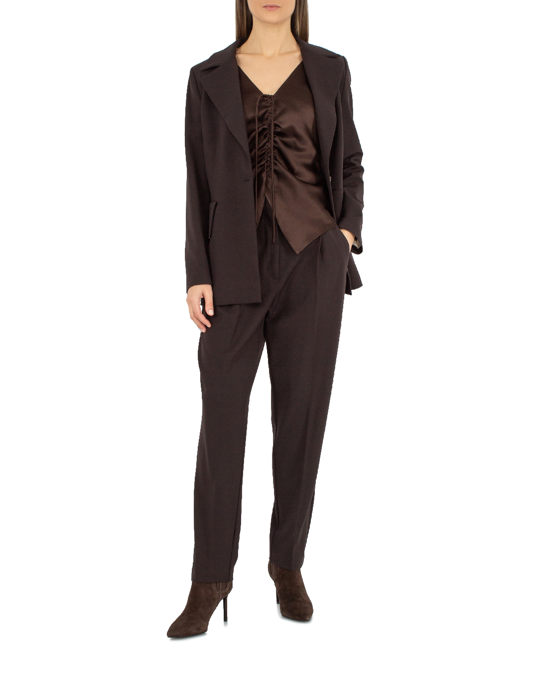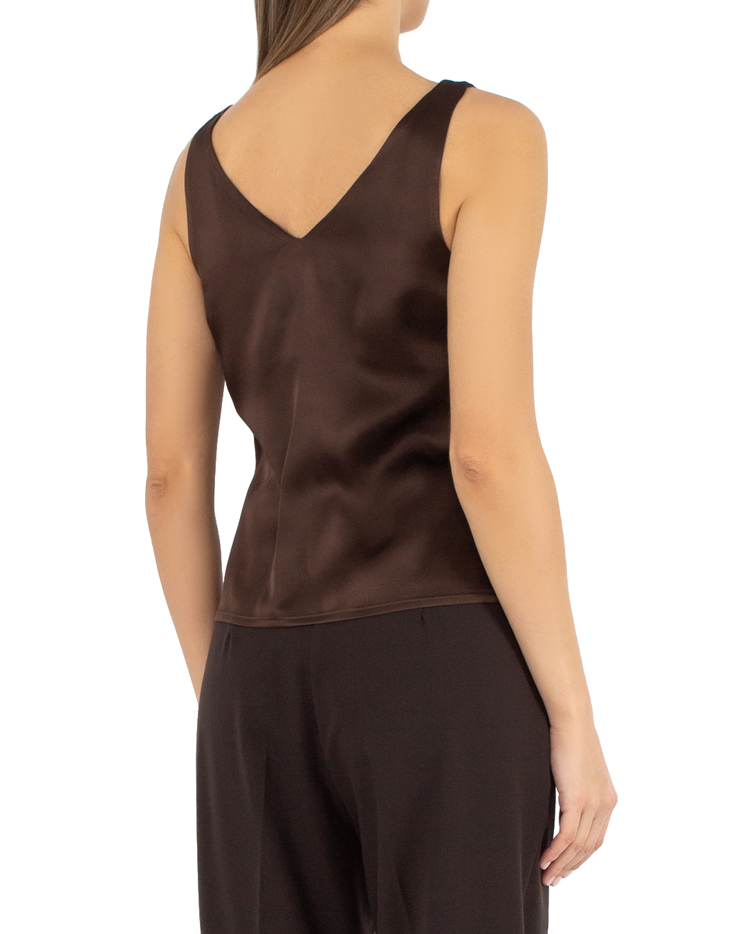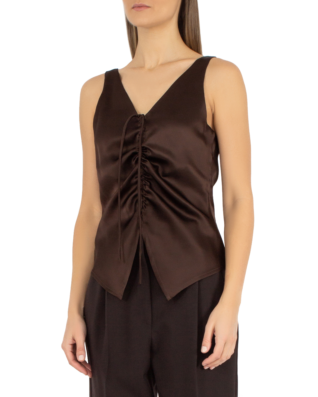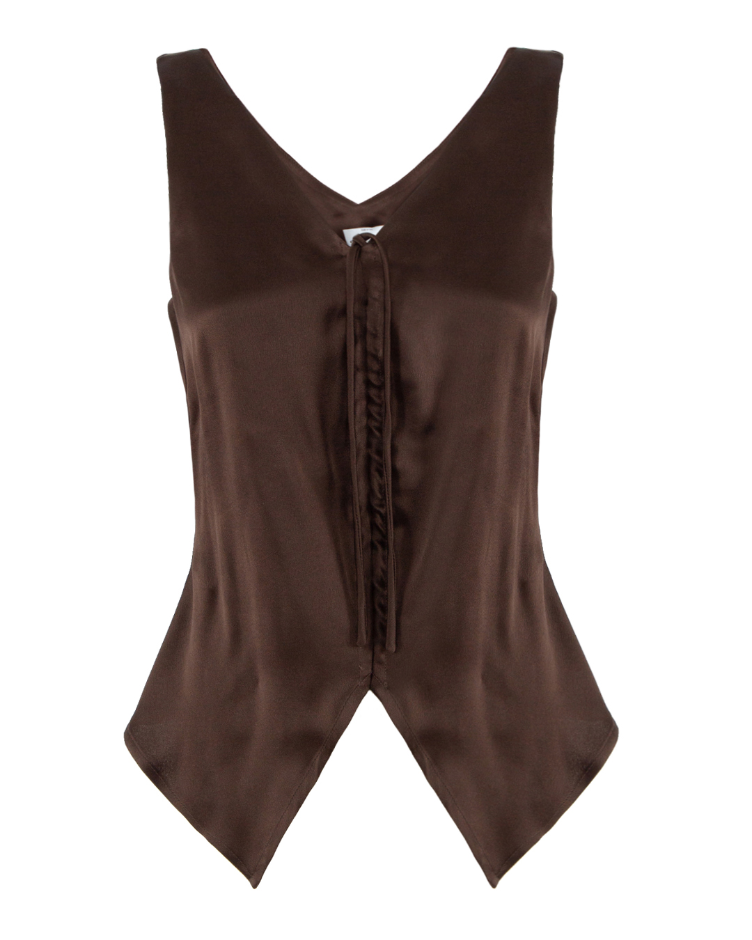 Топ Sfizio из атласного материала коричневого оттенка. Модель приталенного силуэта с завязками.