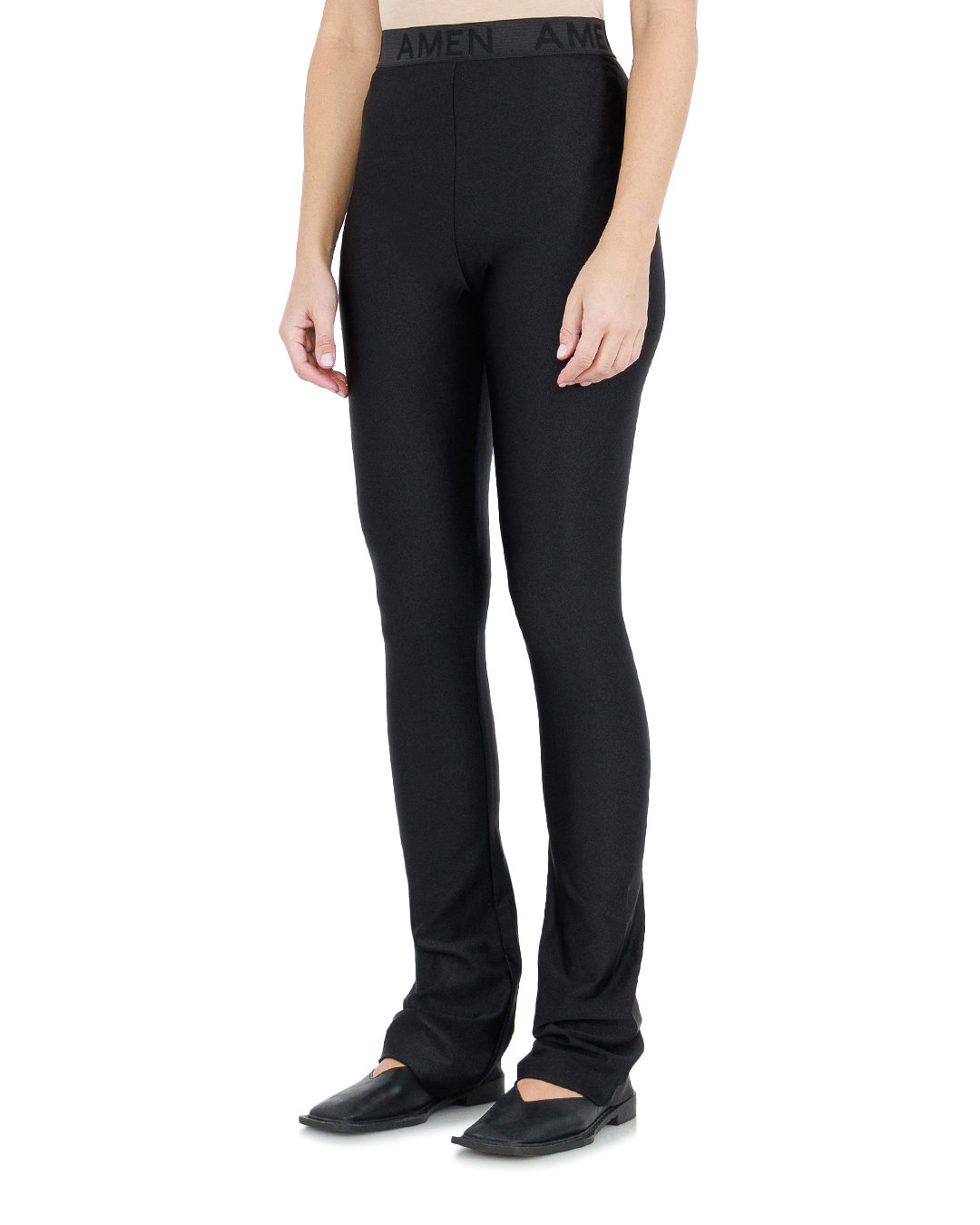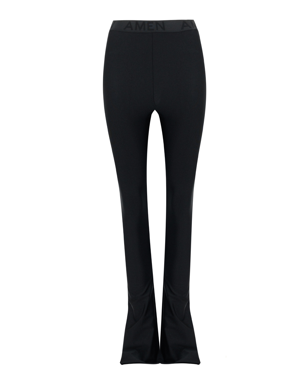 Эти стильные леггинсы от Amen являются образцом современного минимализма и изысканной простоты. Выполненные из эластичной ткани глубокого черного цвета, они обеспечивают идеальную посадку, подчеркивая силуэт и создавая эффектный образ. Лаконичный дизайн акцентирован эластичным поясом с логотипом Amen, который добавляет спортивный шик и узнаваемость бренда. Высокая посадка подчеркивает талию, обеспечивая комфорт и элегантность в носке. Фасон с легким клёшем добавляет динамику и изысканность, превращая классические леггинсы в модный элемент гардероба. Эти леггинсы легко комбинируются с различными элементами и создают выразительный образ для повседневных и вечерних выходов. Идеальные для тех, кто ценит удобство, стиль и функциональность, они становятся основой универсального и модного гардероба.