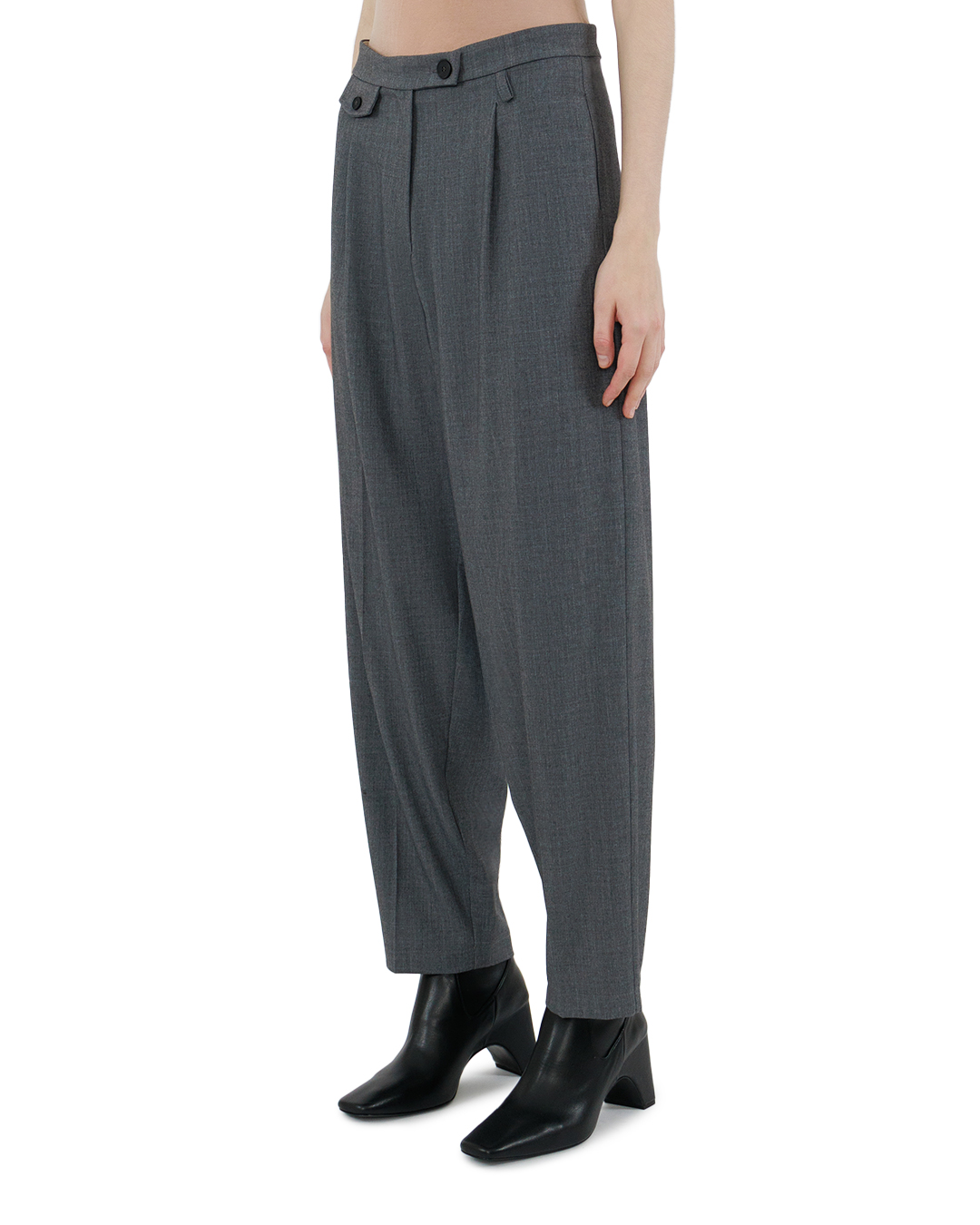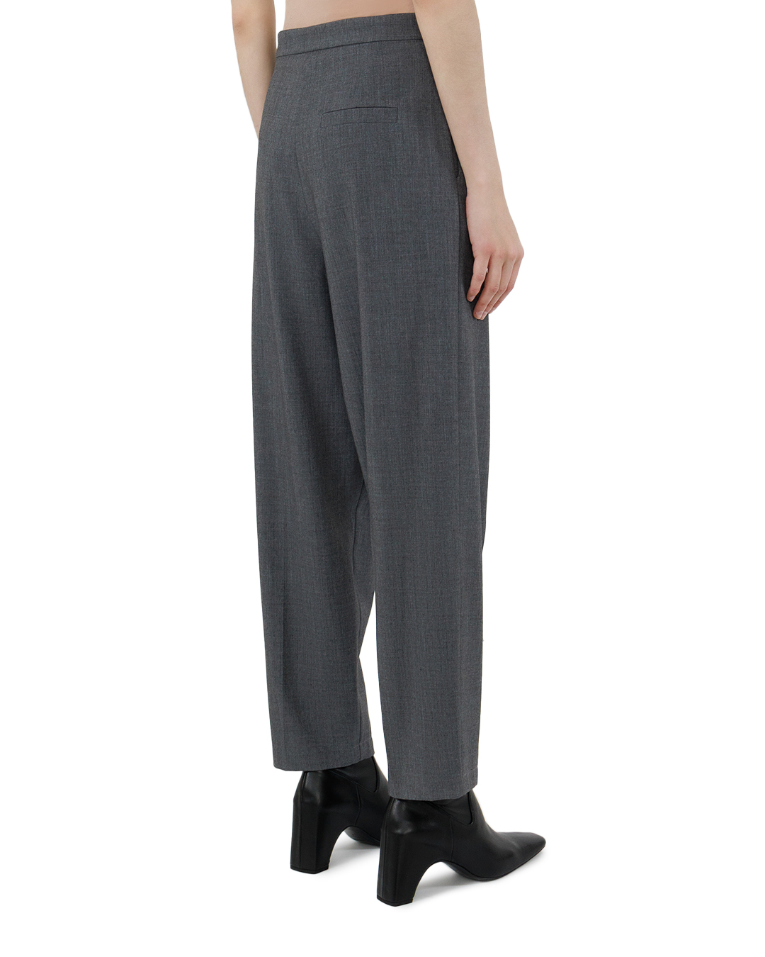 Эти брюки — истинное выражение современного делового стиля и утончённой элегантности. Сшитые из качественной костюмной ткани, они очаровывают своей структурированной формой и лаконичным дизайном. Прямой крой подчёркивает строгость и сдержанность, обеспечивая изысканный силуэт. Высокая посадка с акцентом на талии формирует идеальные пропорции, что добавляет изящность и актуальность модели. Плоские складки спереди создают дополнительный объём и динамику, делая образ более многослойным и насыщенным. Застёжка на пуговицах и декоративные клапаны с имитацией карманов добавляют одежде нотку оригинальности и утонченности. Чистые линии и минимализм отделки подчеркивают универсальность брюк, делая их идеальными для создания разнообразных образов — от офисного до вечернего. Эти брюки станут незаменимым элементом базового гардероба, акцентируя внимание на уверенности и чувстве стиля их обладательницы.