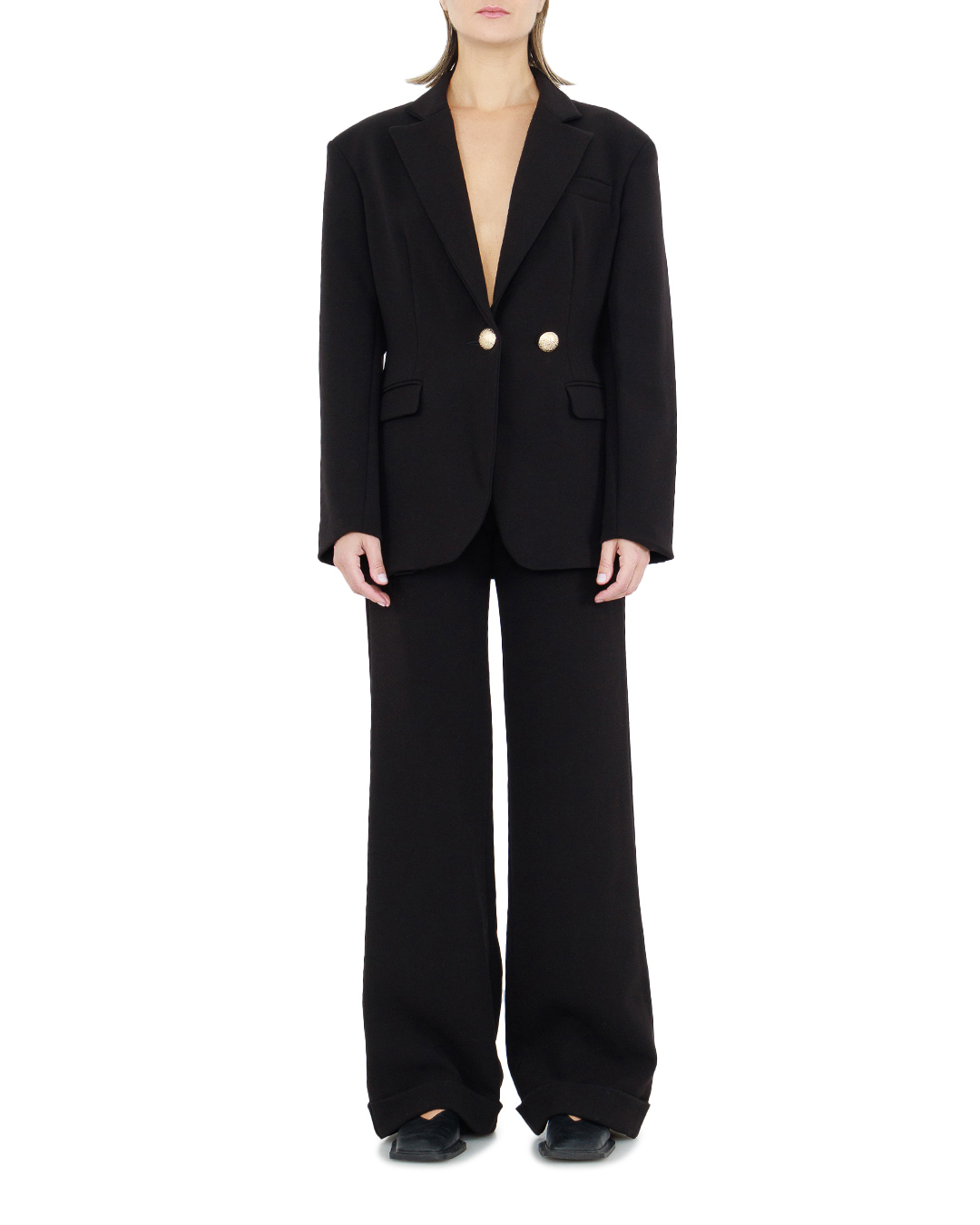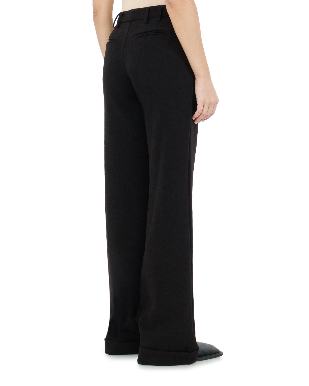 Эти шикарные брюки от Amen представляют собой идеал классического стиля в современной обработке. Изготовленные из высококачественного материала глубокого черного цвета, они создают изящный и утонченный силуэт, подходит для разнообразных стильных интерпретаций. Брюки имеют элегантный клёш, который визуально удлинит ноги и добавляет динамичности образу. Высокая линия талии подчеркивает фигуру и создает стройный силуэт. Лаконичные шлевки для ремня предлагают возможность акцентировать талию, добавляя индивидуальности и утонченности. Чистые линии и минималистичный крой делают эти брюки универсальными и стильными для любого случая — от деловых встреч до вечерних мероприятий. Манжеты снизу добавляют завершенности и аккуратности общему виду, подчеркивая внимание к деталям. Эти брюки от Amen — это воплощение классики с элементами современного шика, делая их необходимым элементом в гардеробе любого ценителя моды.