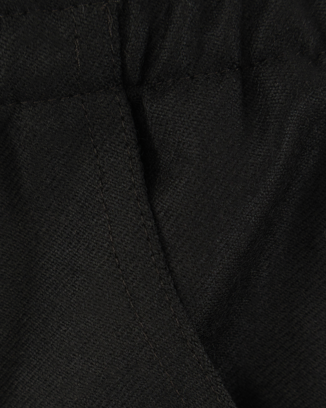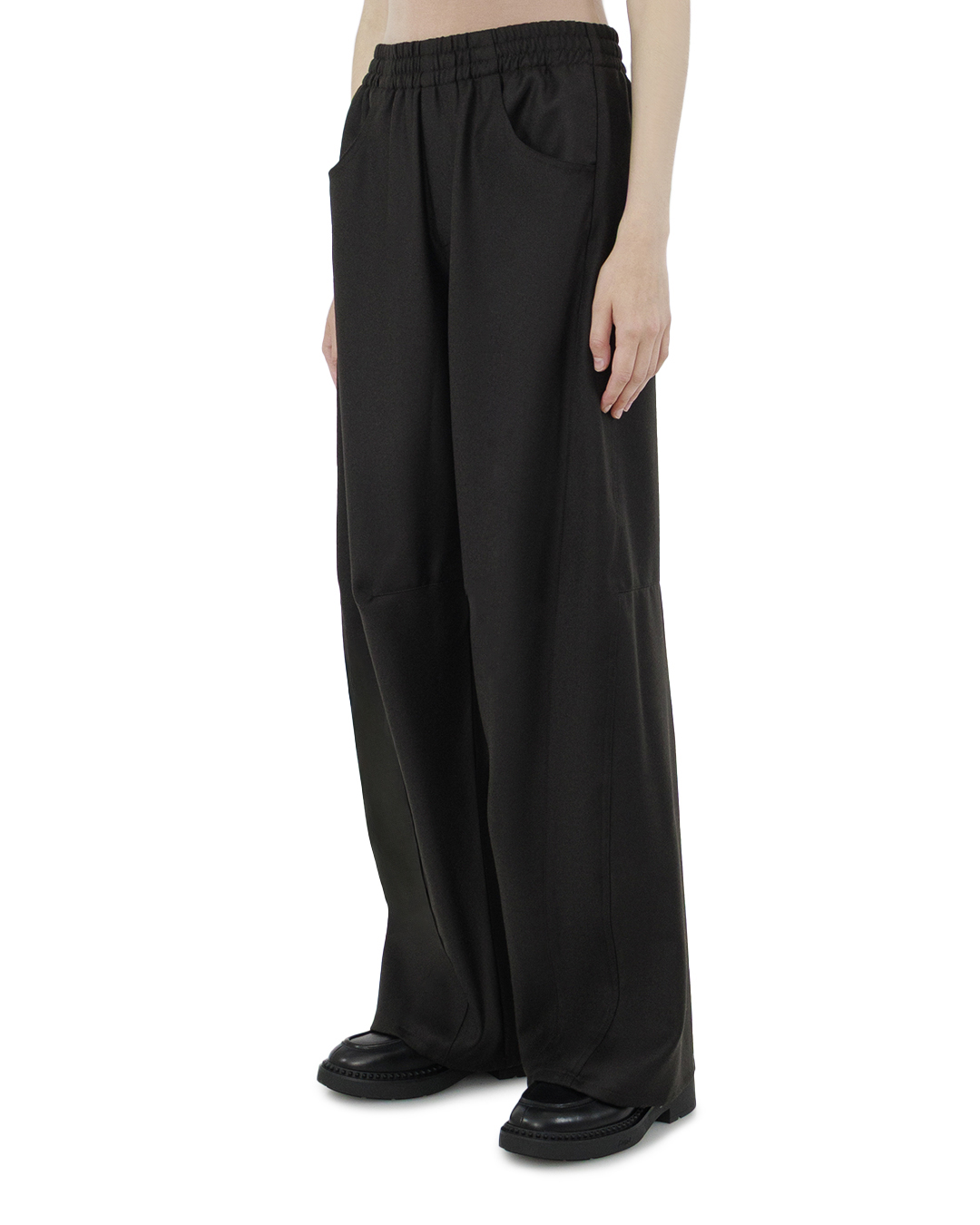 Эти брюки — воплощение изысканной простоты и универсальной элегантности. Выполненные в классическом чёрном цвете, они легко вписываются в любой гардероб, обеспечивая стиль и комфорт для каждого случая. Прямой крой и свободные брючины создают гармоничный силуэт, подчёркивающий стройность и лёгкость фигуры. Ткань отличается мягкостью и отличной драпировкой, что позволяет брюкам элегантно струиться при движении. Эластичный пояс обеспечивает удобную посадку, адаптируясь к форме фигуры и позволяя чувствовать себя комфортно в течение всего дня. Наличие классических боковых карманов добавляет функциональности и практичности, сохраняя при этом минималистичный дизайн. Тщательно проработанные швы и качественная отделка свидетельствуют о высокой степени мастерства, гарантируя долговечность и износостойкость изделия. Эти брюки идеально подходят как для деловых встреч, так и для вечерних прогулок, легко комбинируясь с различными элементами гардероба. Эти брюки — идеальное сочетание элегантности и комфорта, создающие безупречный базовый элемент для любых модных экспериментов.