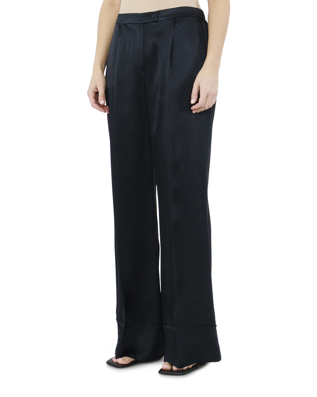 Брюки из сатина от BEATRICE представляют собой гармонию роскоши и утонченной элегантности. Сатиновая ткань с характерным мягким блеском придает образу изысканную легкость и оттенок аристократизма, создавая эффектный визуальный акцент в любом ансамбле. Брюки отличаются высокой посадкой, которая идеально формирует талию, и добавляет силуету грациозности. Четкие стрелки создают вертикальные линии, удлиняющие фигуру и добавляющие стройности. Плавные потайные застежки и пуговица обеспечивают лаконичный и завершенный вид, подчеркивая изысканность дизайна. Широкие манжеты на штанинах добавляют современный штрих, создавая стильный контраст классике и делая брюки универсальными для множества обстановок, будь то вечерний выход или бизнес-встреча.