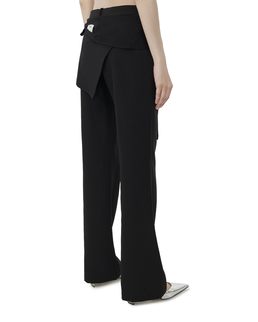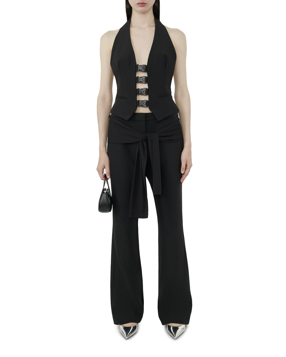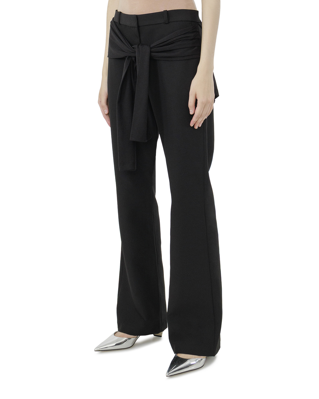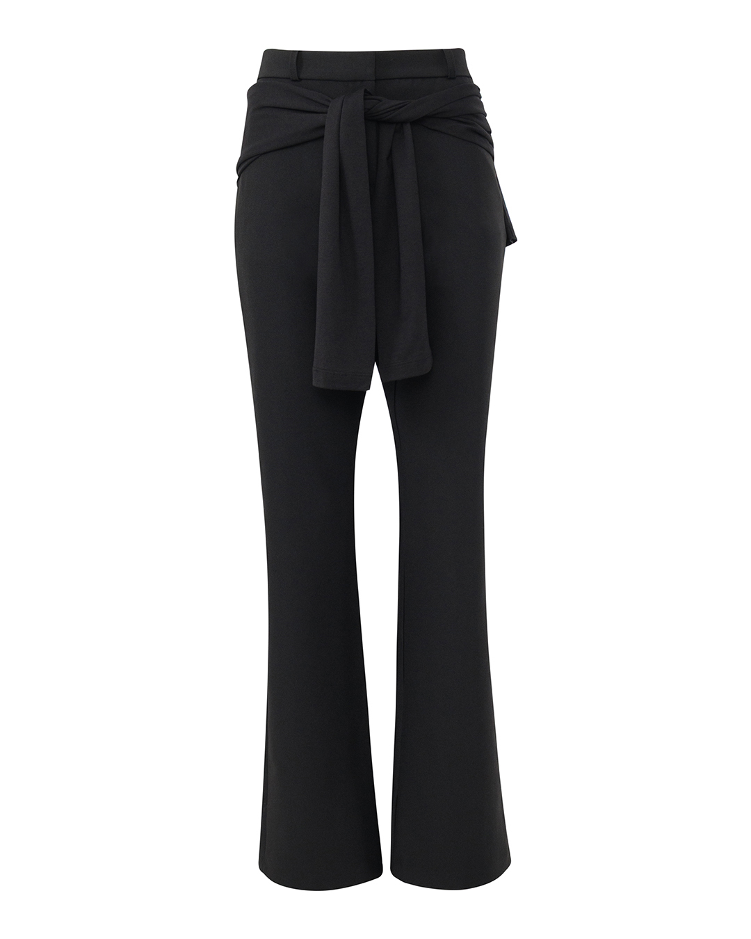 Эти брюки — воплощение современного шика и изящной простоты. Выполненные из высококачественного полотна, они идеально объединяют классику и актуальные тренды. Прямой крой образует стройный силуэт, а высокая посадка акцентирует талию, придавая образу элегантность и женственность. Особенностью модели является завязанный на талии пояс, который добавляет стильный акцент и оригинальность, создавая выразительный вид. Минималистичный дизайн дополняется тщательно проработанными швами и безупречной отделкой, что подчеркивает высокий уровень исполнения и внимание к каждой детали. Эти брюки станут идеальным дополнением к любому гардеробу, добавляя изысканности как деловому, так и повседневному образу.