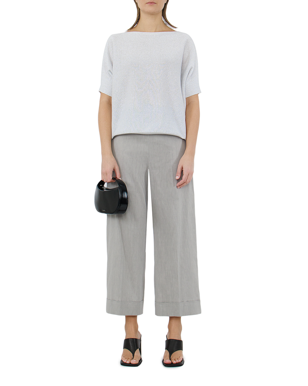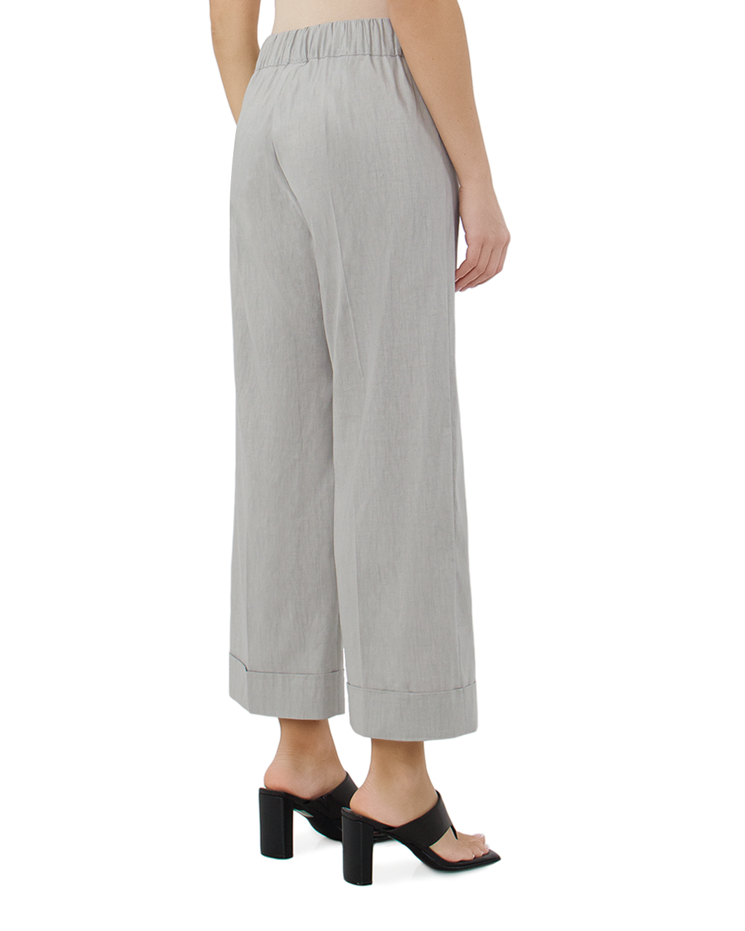 Эти брюки от D.EXTERIOR воплощают элегантную минималистичную моду, подчёркивая современные тенденции утончённого стиля. Изготовленные из лёгкой, дышащей ткани, они дарят комфорт и свободу движений без потери формы. Серый оттенок добавляет изделию универсальность и возможность многогранных цветовых сочетаний. Брюки обладают свободным силуэтом, что придаёт образу изысканную неформальность. Завышенная талия подчёркивает стройность фигуры, обеспечивая женственный акцент на линии талии. Чёткие, лаконичные линии без лишней отделки создают чистоту дизайна. Подгиб внизу брюк добавляет структурированности и завершённости, уравновешивая общий объём и придавая модели современный вид. Ткань обладает гладкой текстурой, визуально отражая чувство спокойствия и изящества. Такое решение делает брюки идеальными как для офисного гардероба, так и для эффектных кэжуал-ансамблей. Эти брюки станут основной частью гардероба, прекрасно интегрируясь в любой стиль благодаря своей нейтральной палитре и продуманному дизайну.