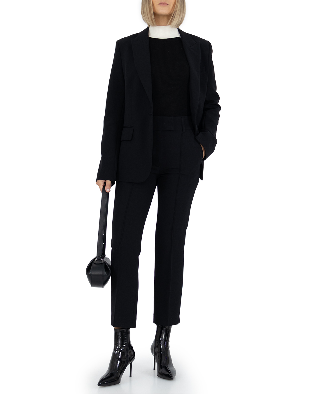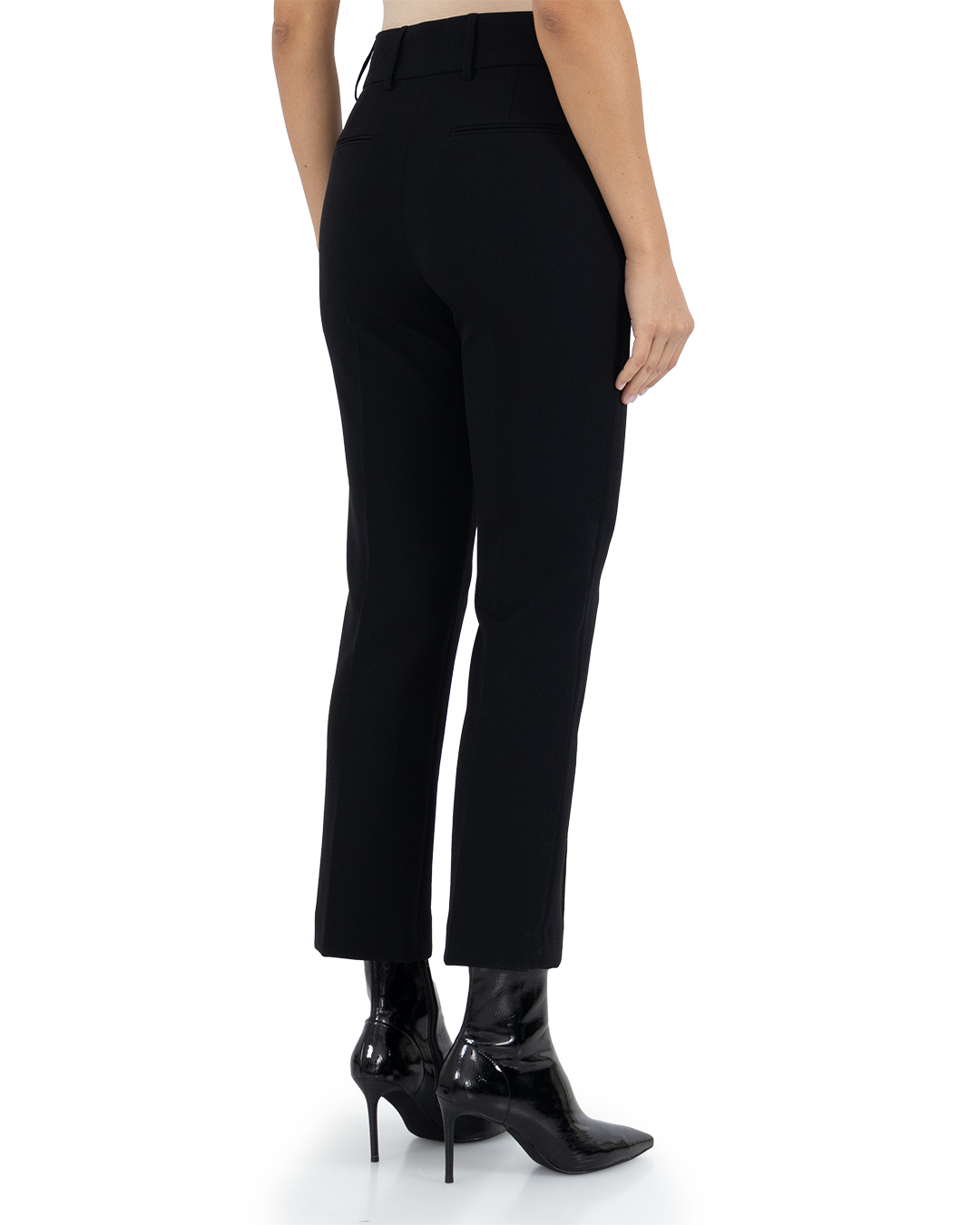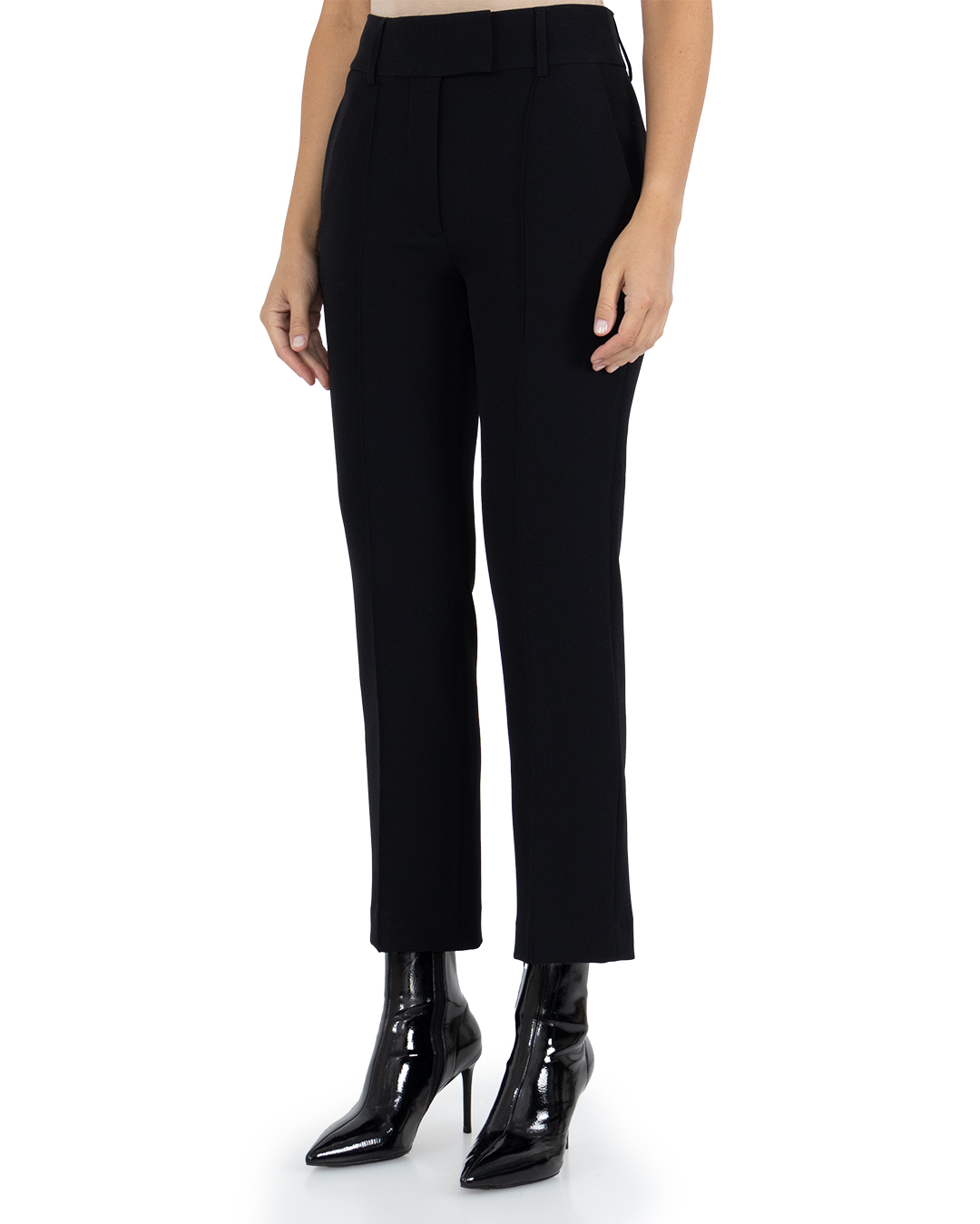 Укороченные брюки зауженного силуэта с средней комфортной посадкой на поясе с шлевками для ремня, застежка на молнию и крючок.