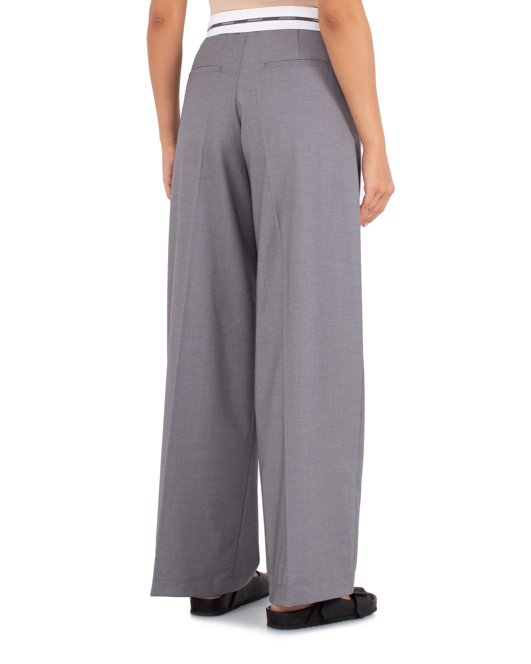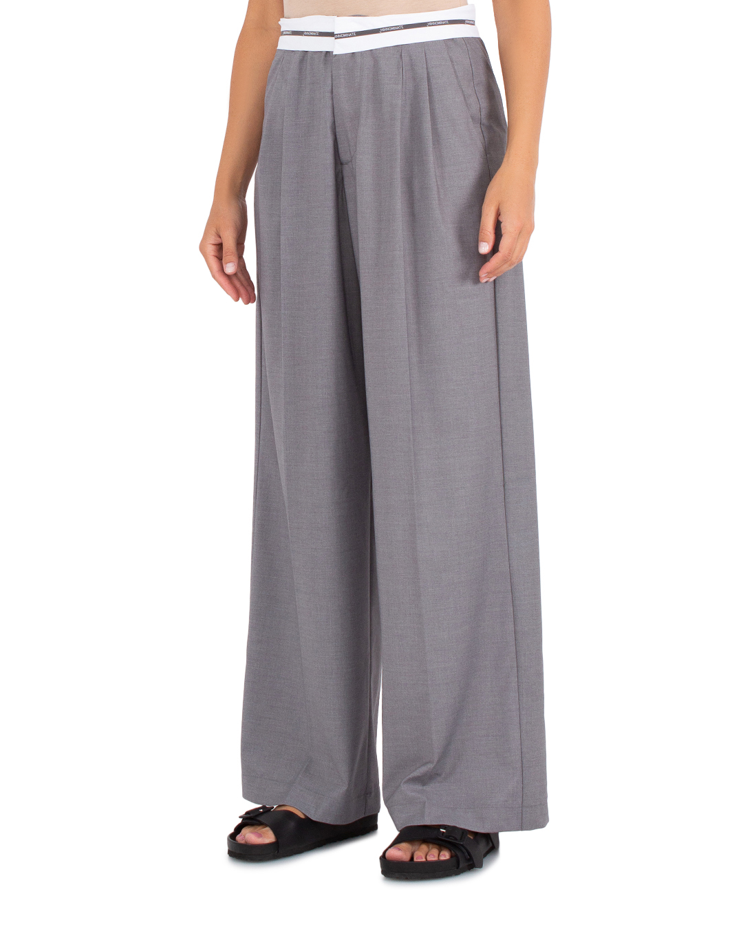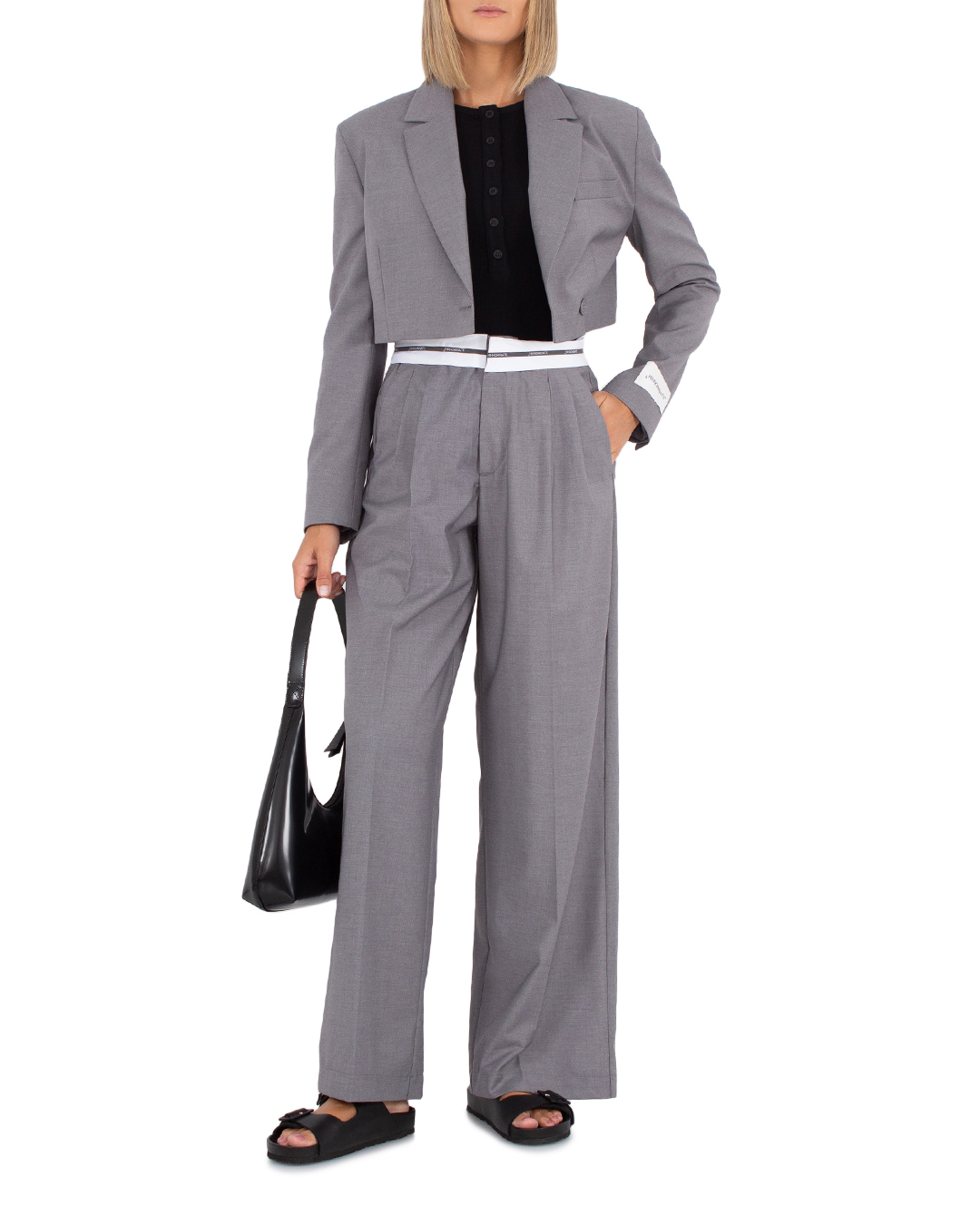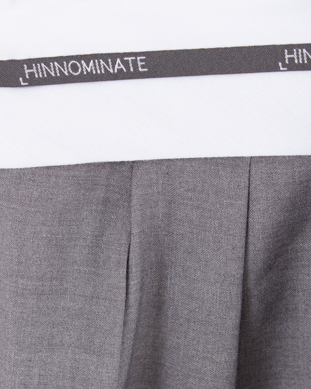 Костюмные брюки HINNOMINATE из крепа с добавлением вискозы. Модель прямого силуэта с широкими брючинами и высокой посадкой на талии. Два кармана по бокам и застежка на молнию и пуговицу.