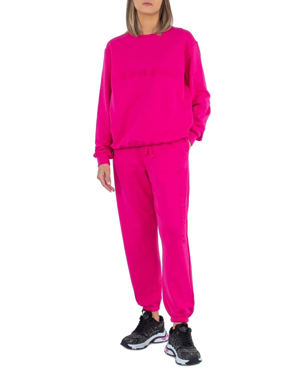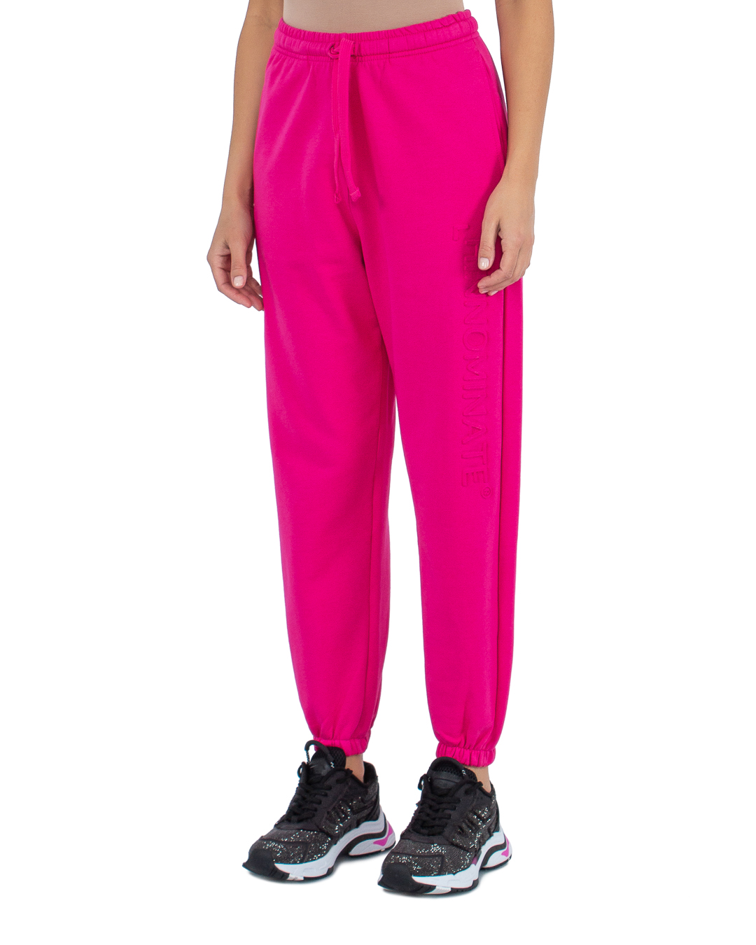 Брюки HINNOMINATE из трикотажного хлопка с логотипом бренда. Модель в спортивном стиле зауженного к низу силуэта с эластичной линией пояса с завязками.