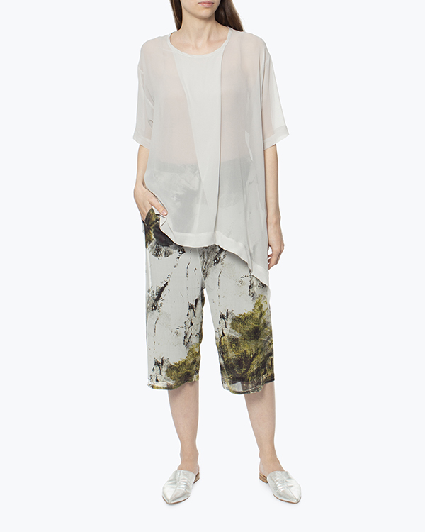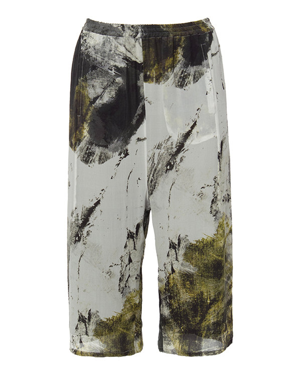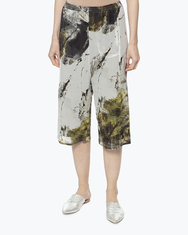 Брюки-кюлоты из шелка с принтом. Модель свободного силуэта с эластичной линией пояса.