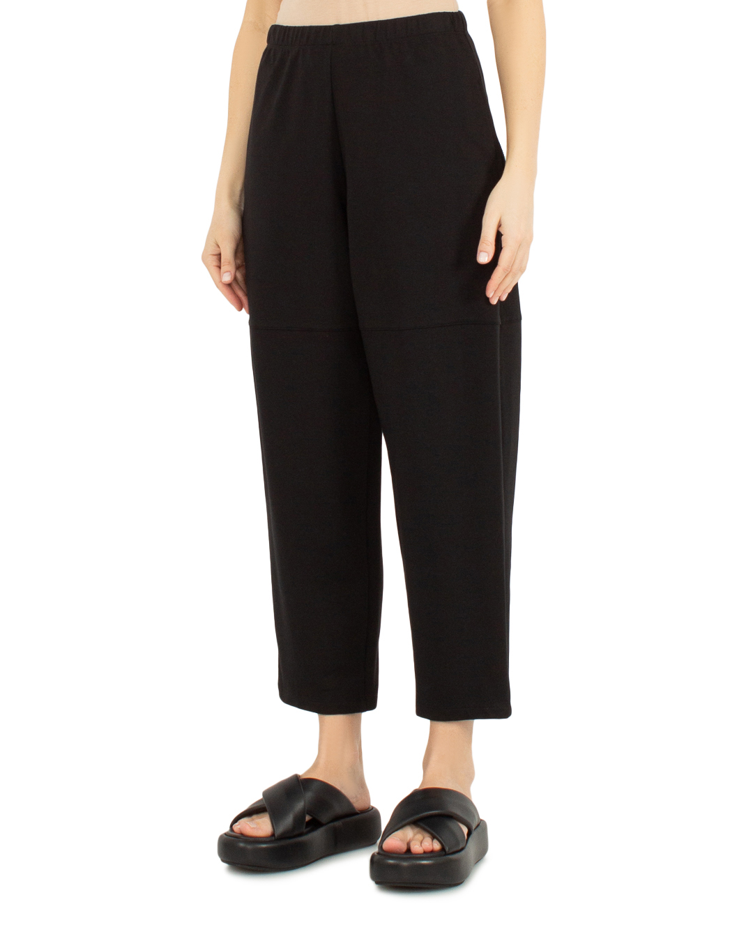 Брюки J.M design из трикотажного хлопка. Модель свободного силуэта укороченной длины с эластичной линией пояса.