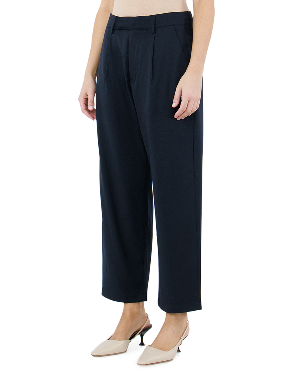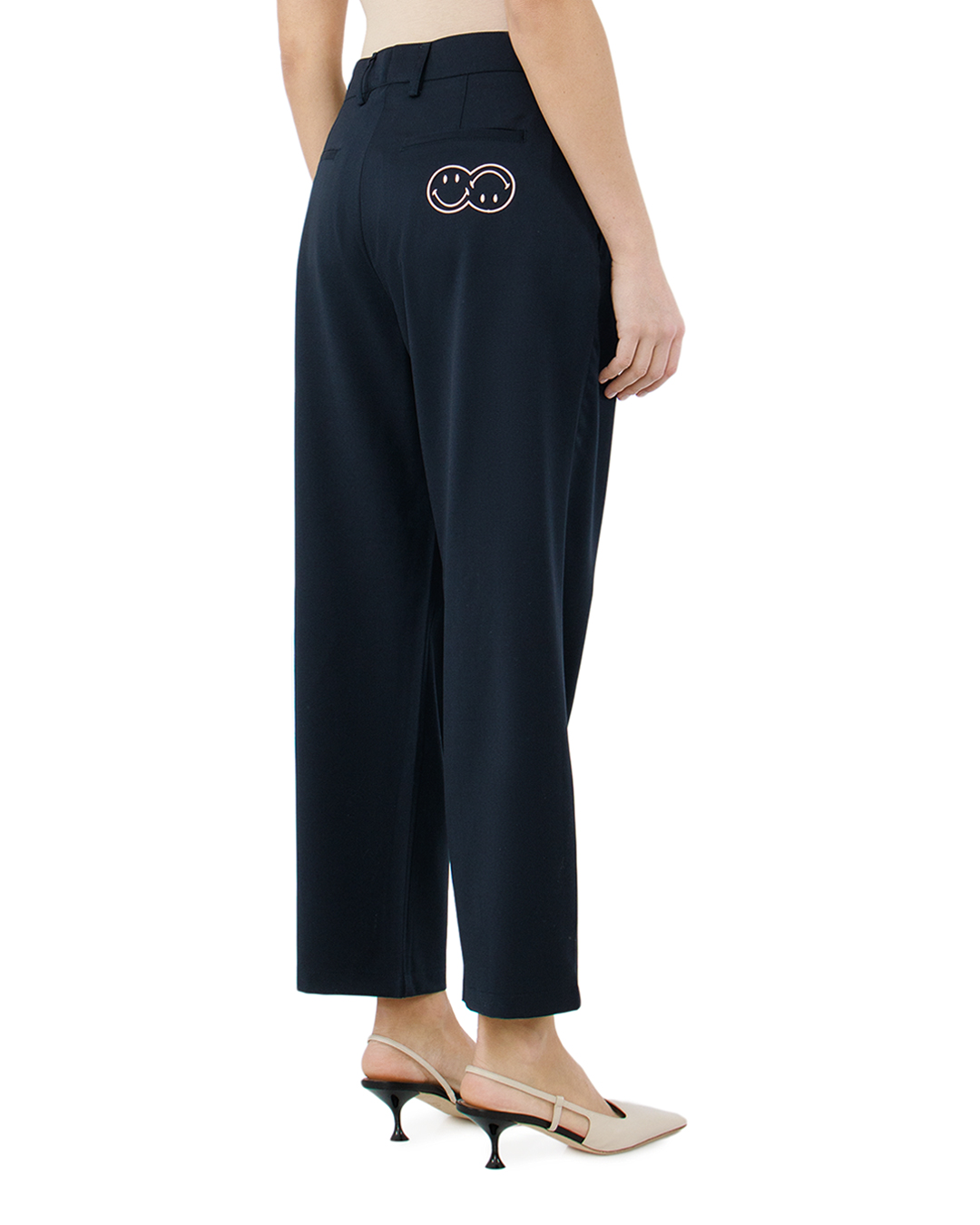 Эти брюки от JOSHUA'S — образец изысканной простоты и креативности. Глубокий тёмно-синий оттенок придаёт модели сдержанную элегантность, делая её универсальной для любого случая. Свободный крой с лёгкими складками добавляет динамизма и обеспечивает свободу движений, сохраняя при этом четкость силуэта. Особое внимание привлекает вышивка на заднем кармане, которая вносит вдохновляющий элемент в общий дизайн, оживляя образ и подчёркивая индивидуальность. Акуратные шлёвки и классическая застёжка дополняют утилитарную эстетику. Эти брюки идеально подойдут для создания стильных и современных ансамблей, добавляя нотку утончённой креативности в ваш гардероб.
