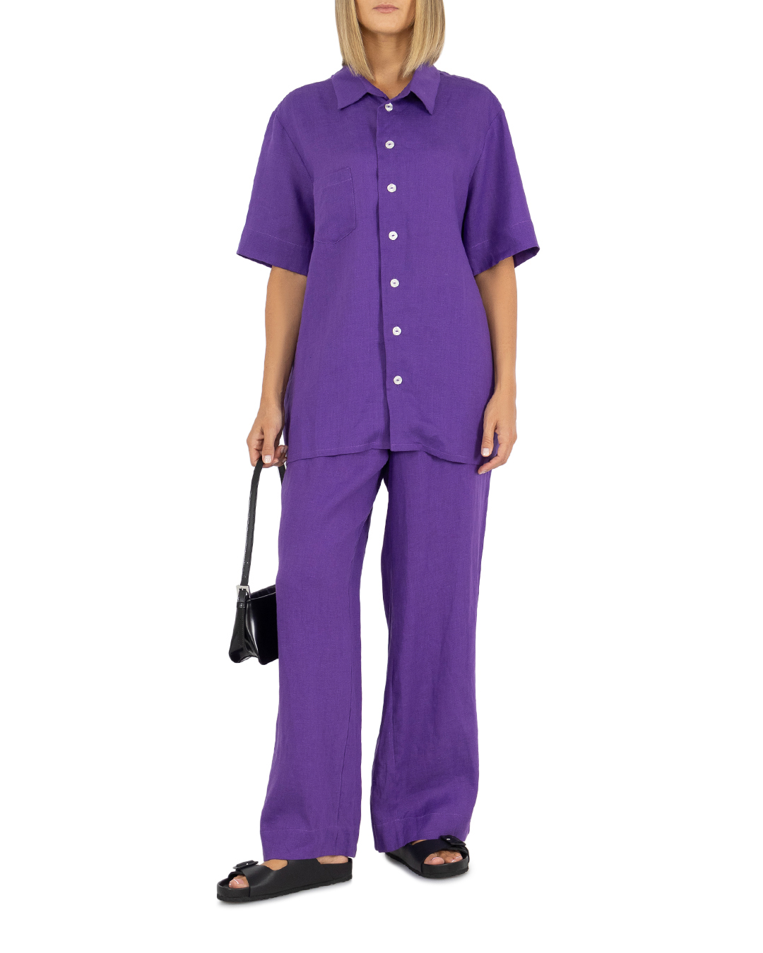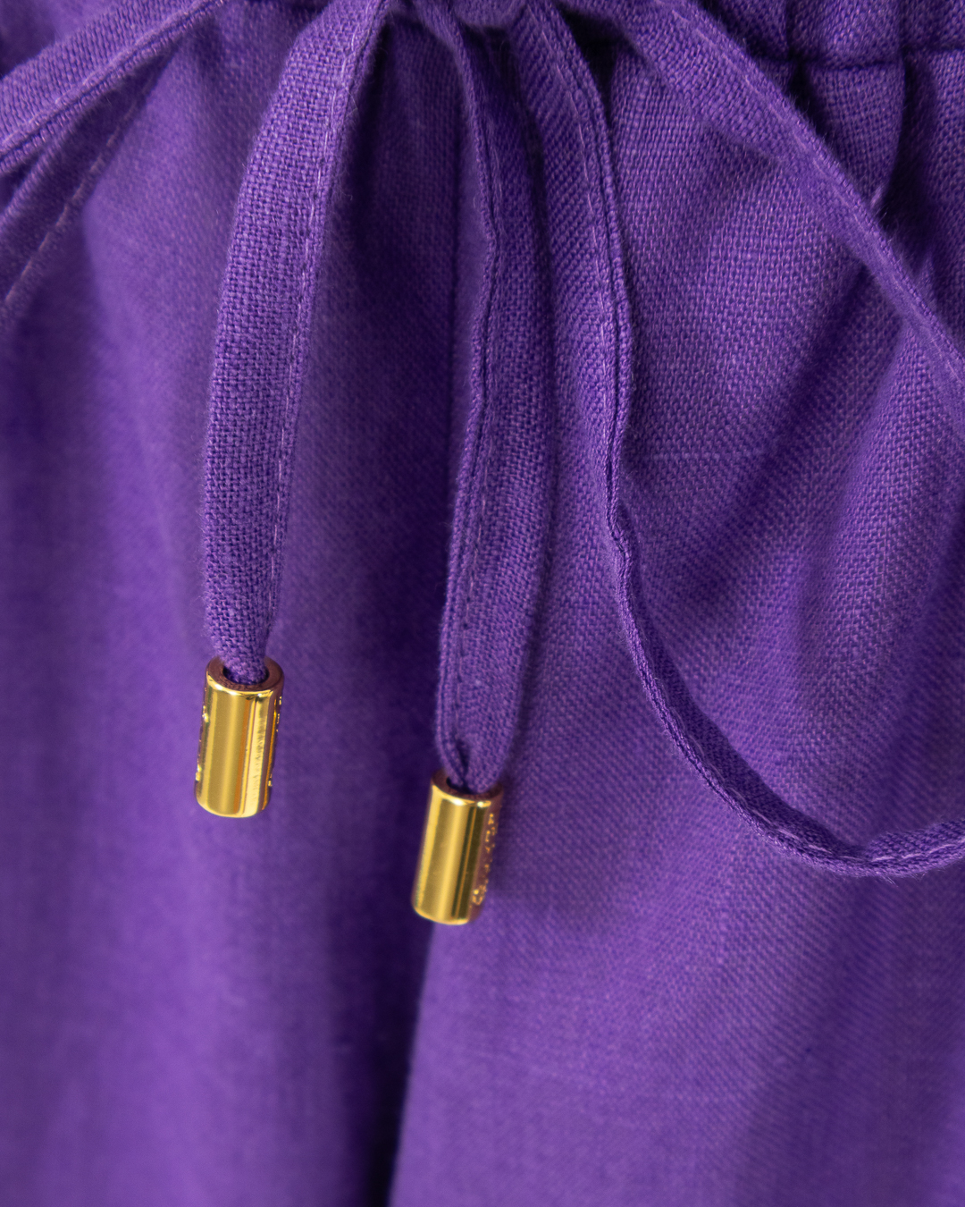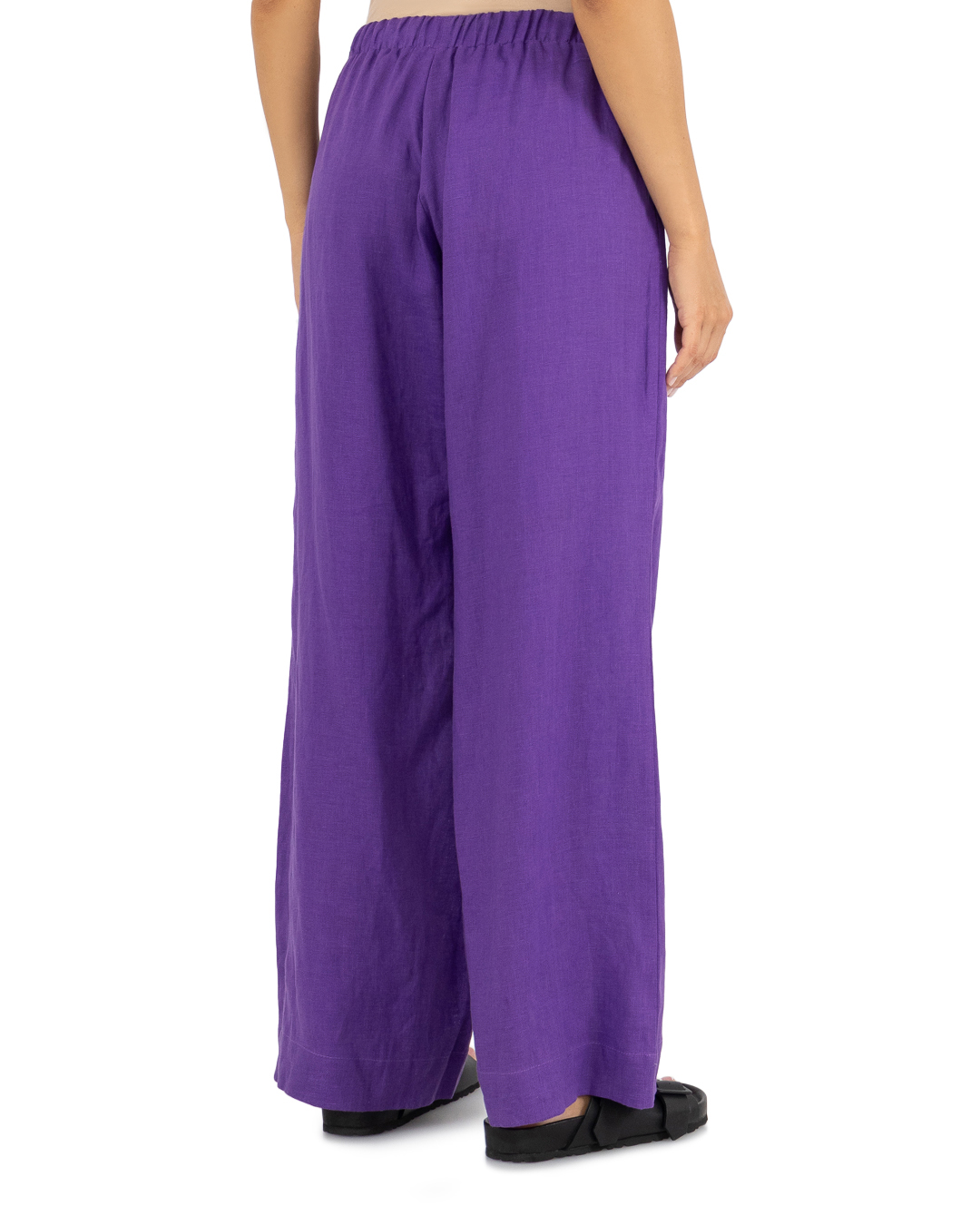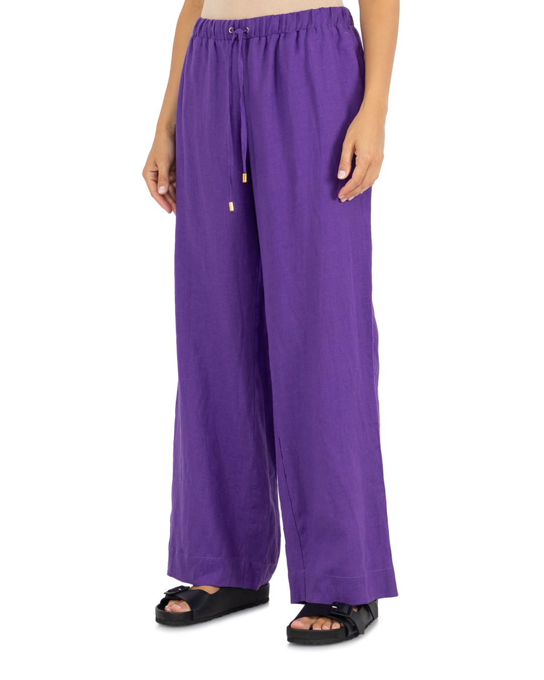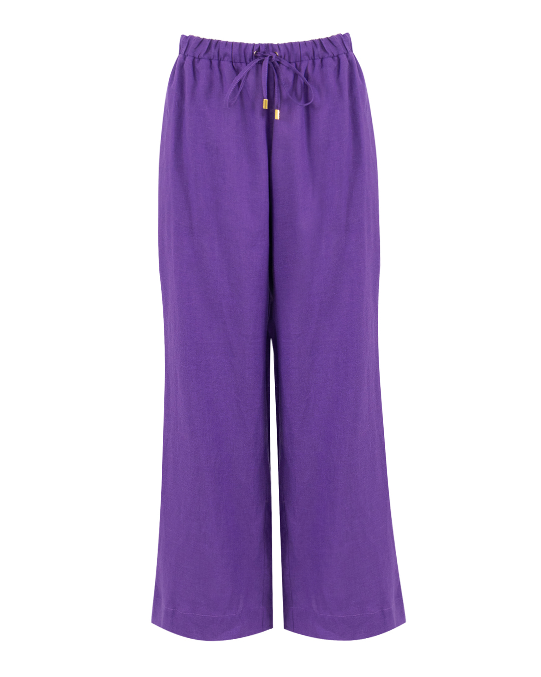 Брюки LEAH сшиты из натурального льна. Модель прямого силуэта с широкими брючинами и эластичной линией пояса с завязками.