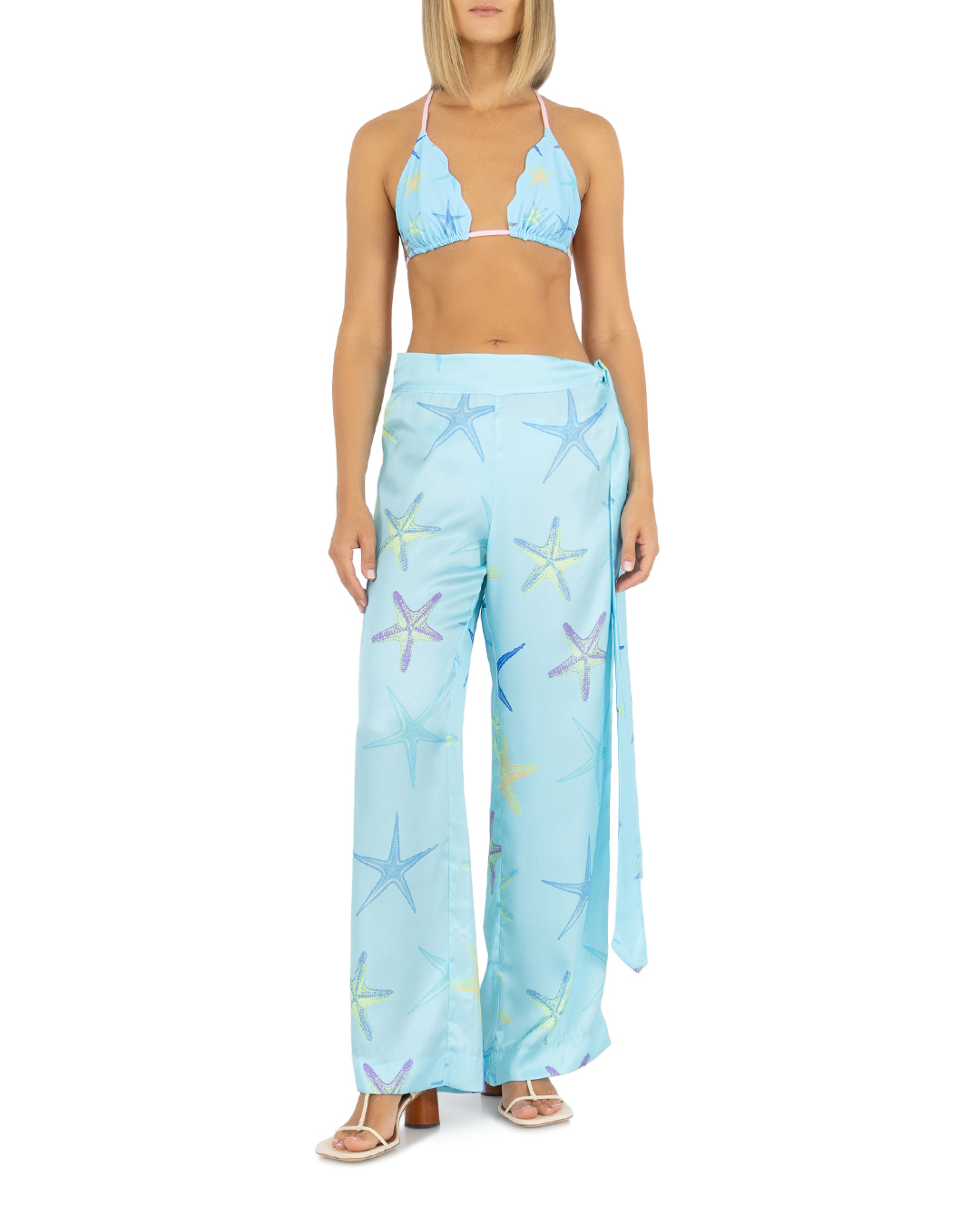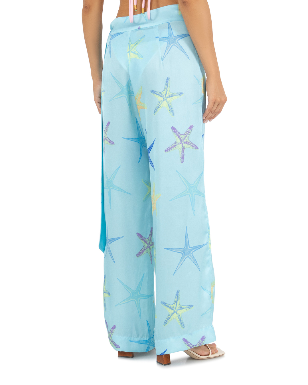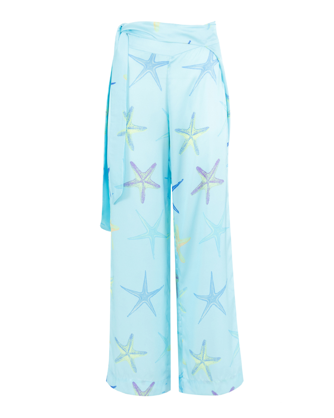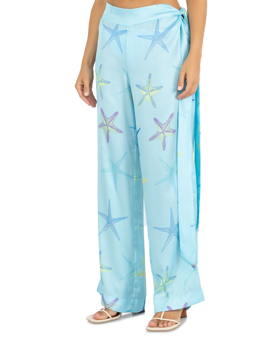 Брюки LEAH из атласного материала с принтом. Модель для пляжа прямого силуэта с завязками сбоку.