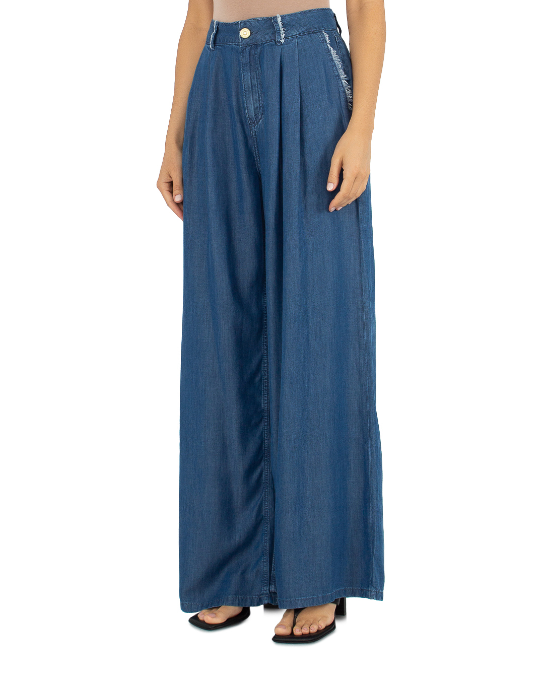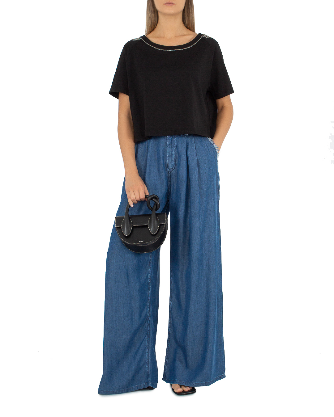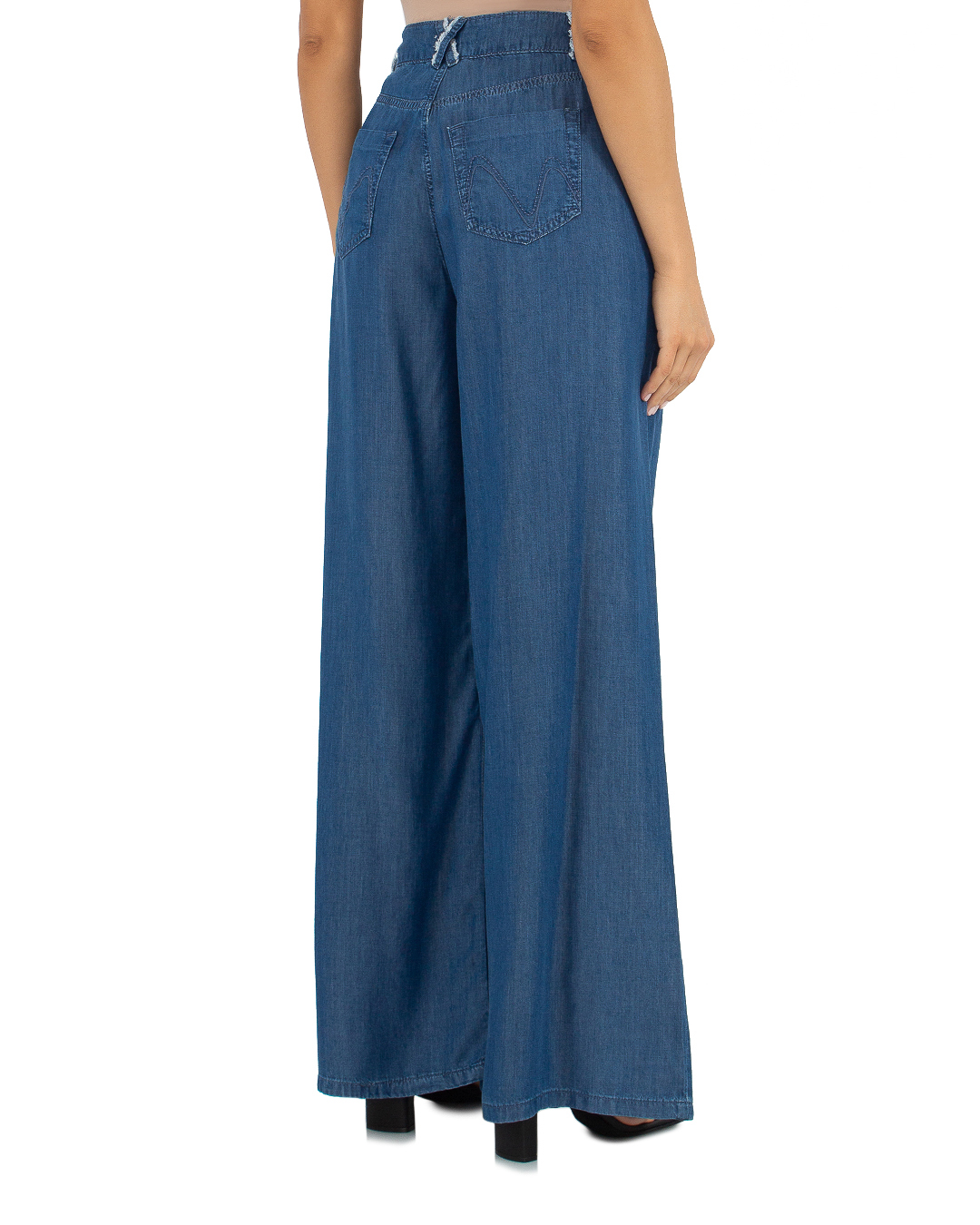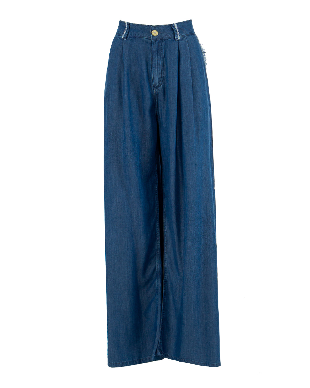 Брюки MAX&MOI из тенселя под деним. Модель прямого силуэта с широкими брючинами и высокой посадкой на талии.