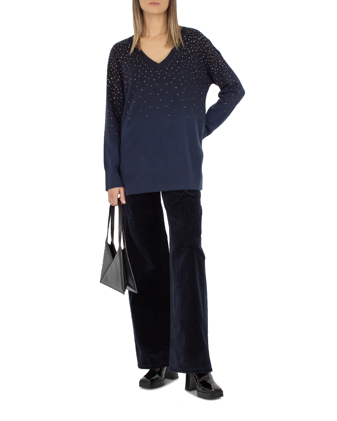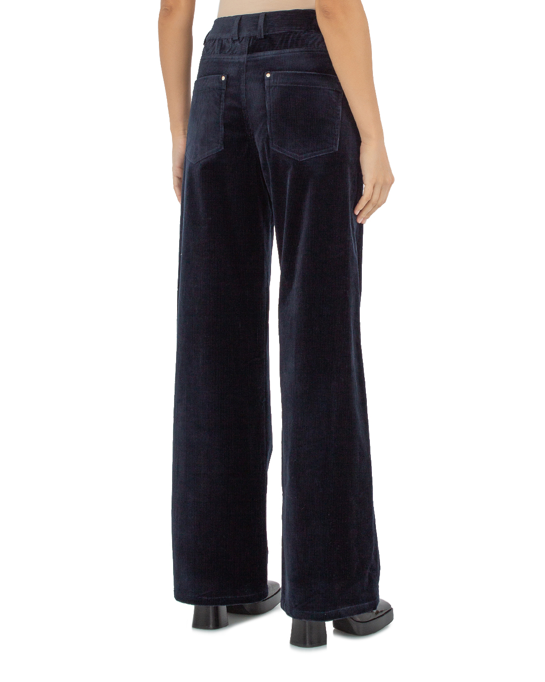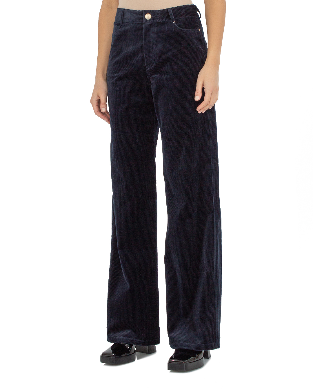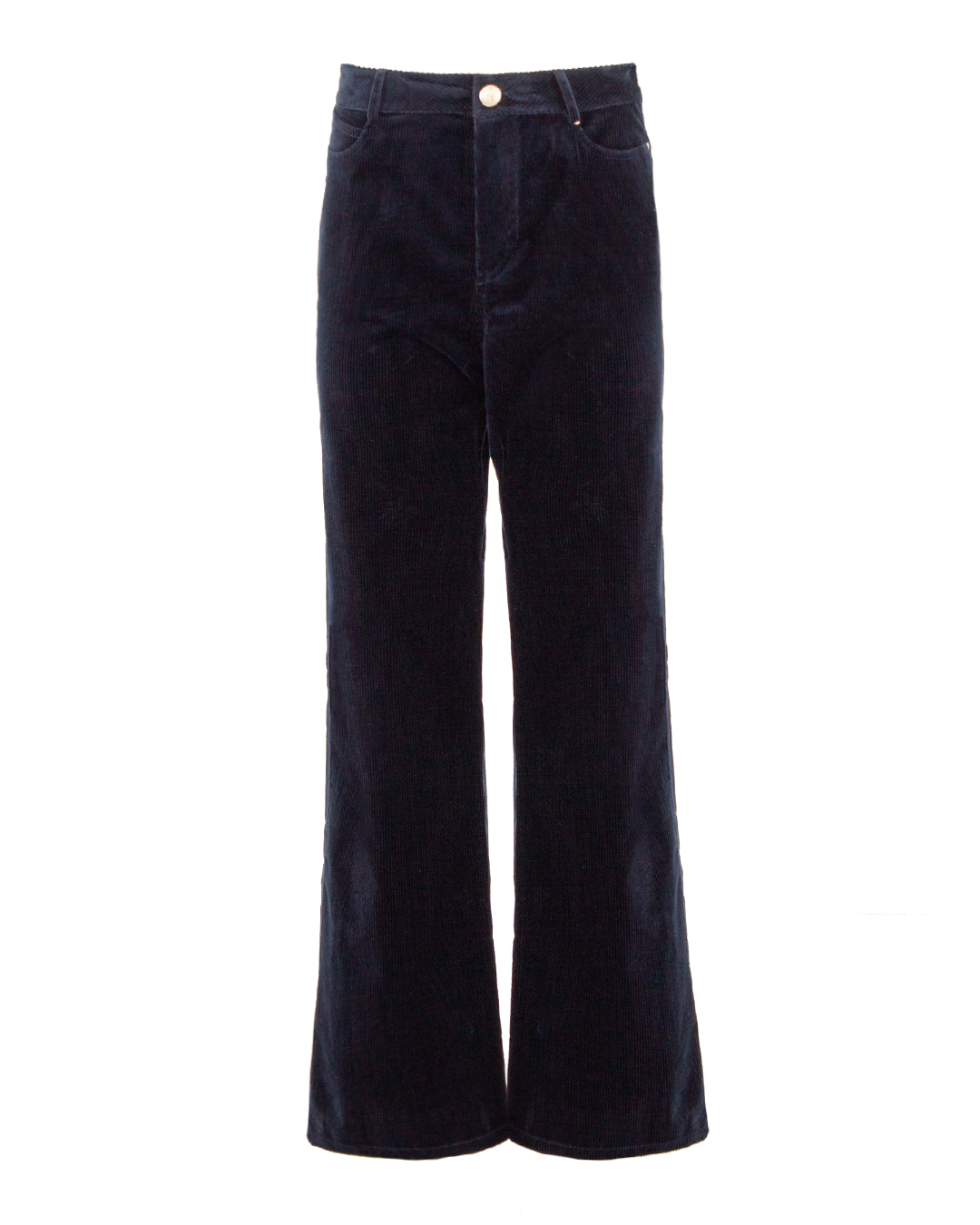 Брюки MAX&MOI из хлопкового вельвета. Модель прямого силуэта с широкими брючинами и высокой посадкой на талии и застежкой на молнию и пуговицу.