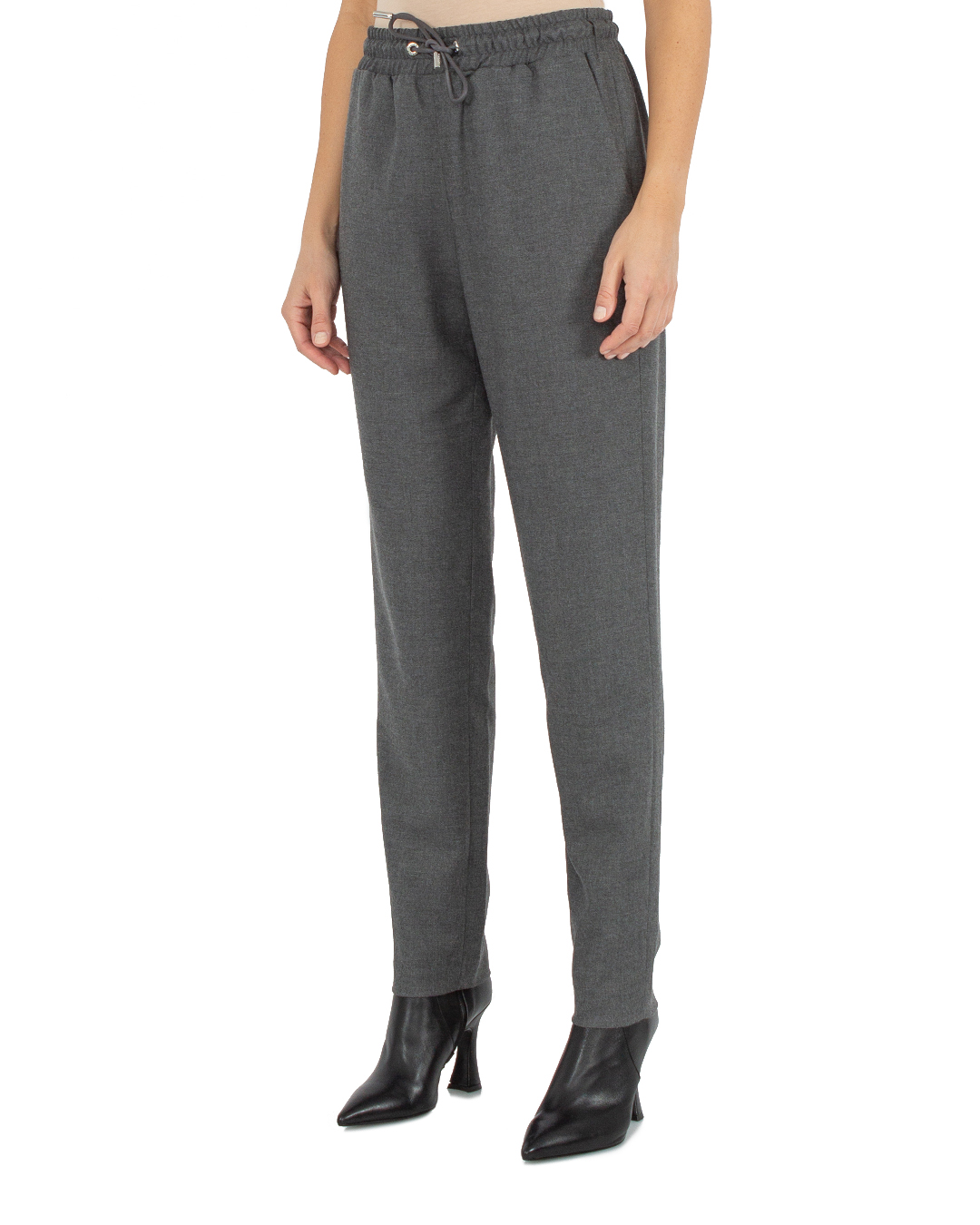 Брюки MAX&MOI из смесового материала. Модель прямого слегка зауженного силуэта с завязками по линии пояса и двумя карманами по бокам.