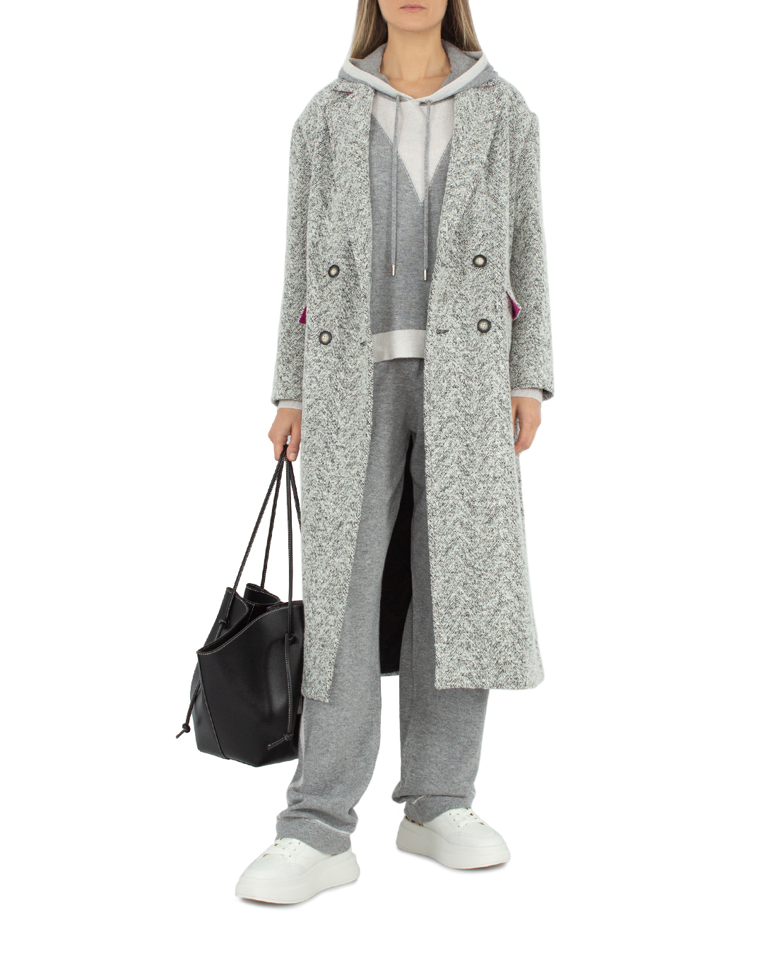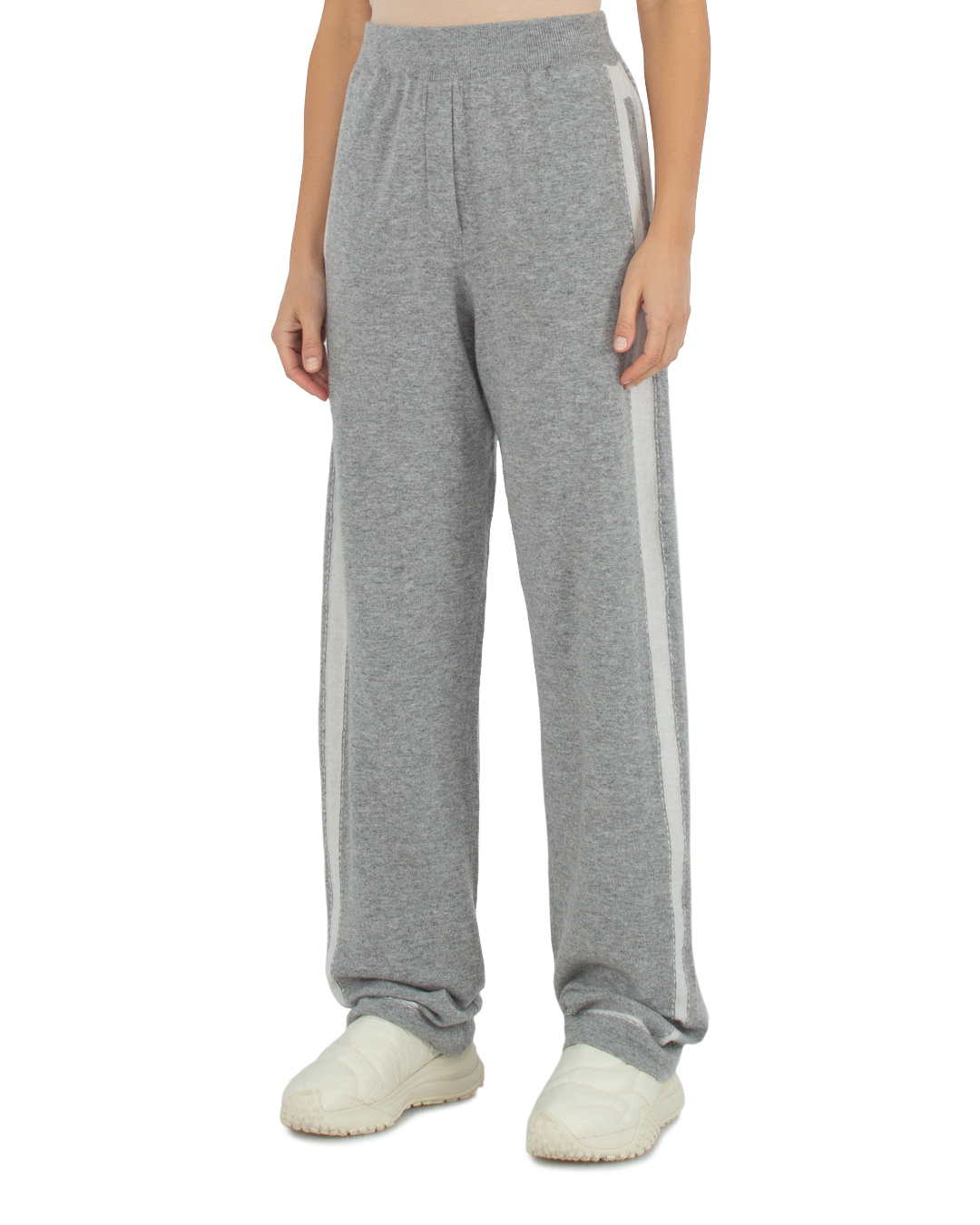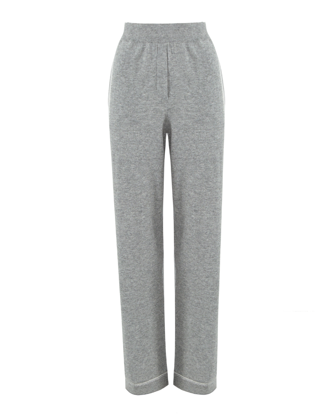 Брюки MAX&MOI из мягкой шерсти с добавлением кашемира серого оттенка. Модель прямого силуэта в спортивном стиле с эластичной линией пояса и двумя карманами по бокам.