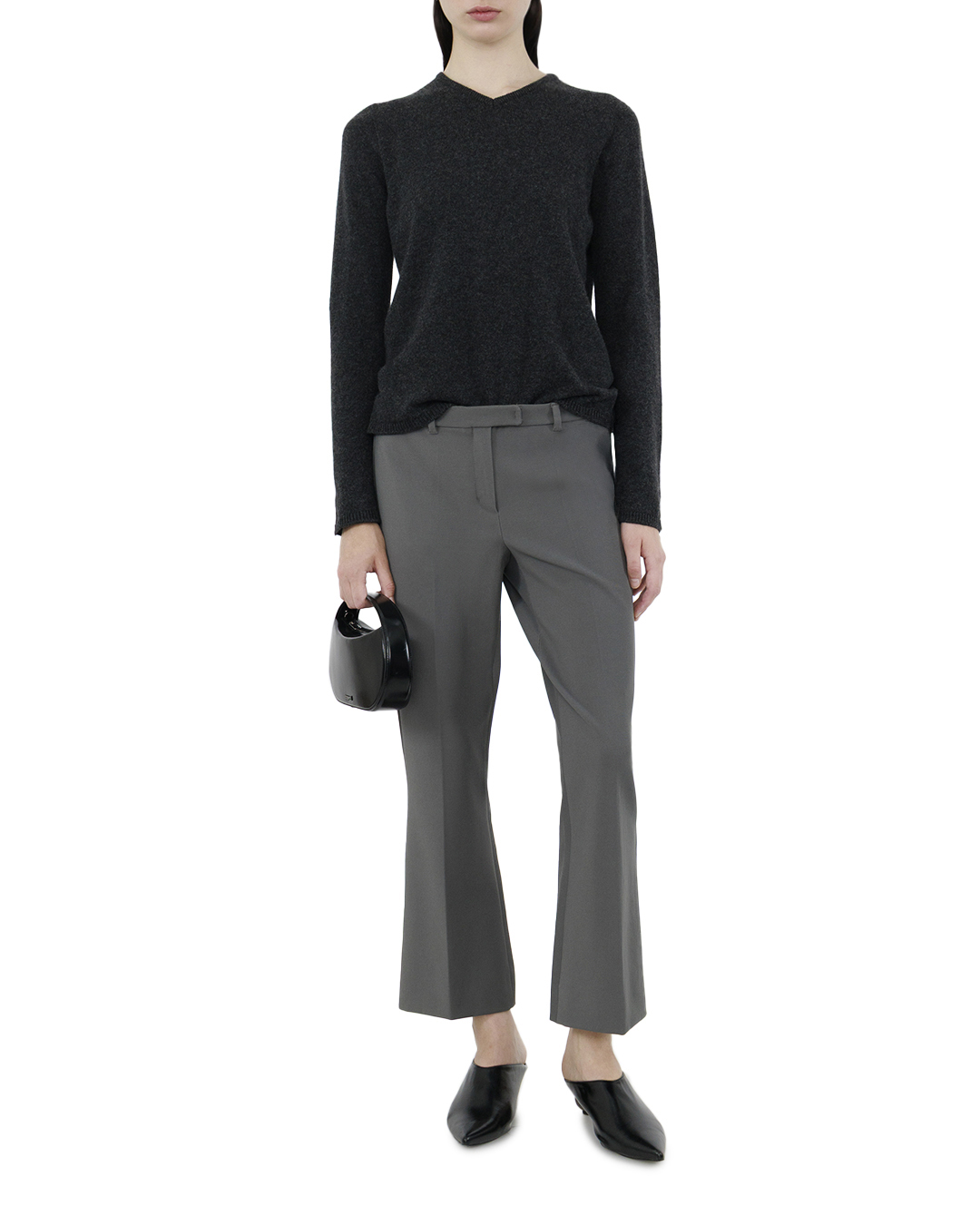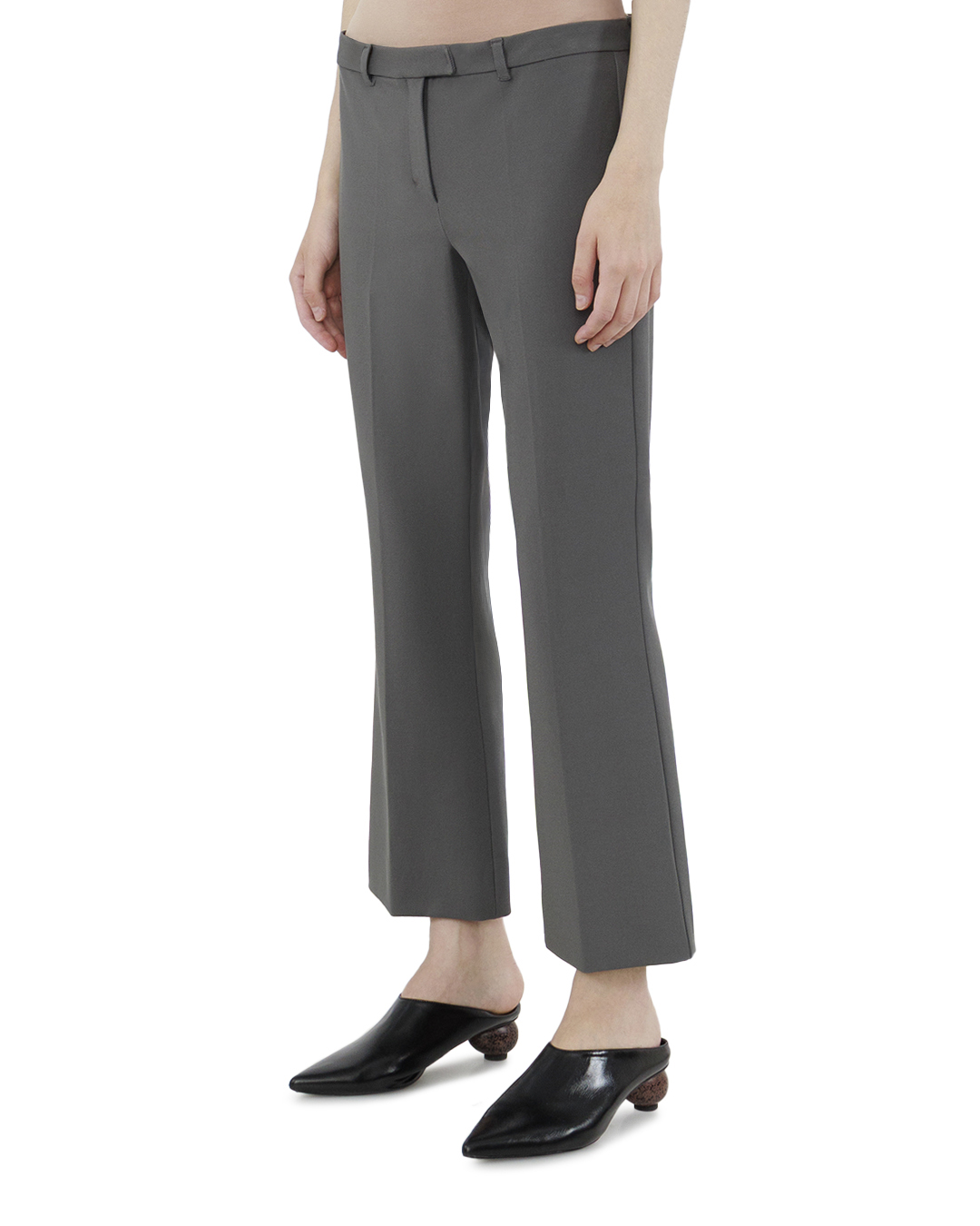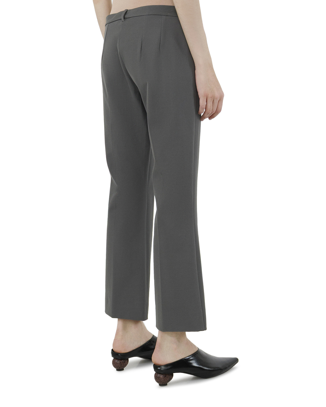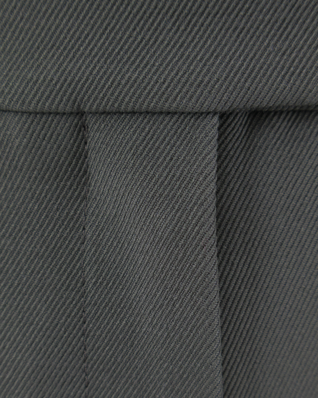 Эти брюки представлены в универсальной серой палитре, идеально сочетающей классику и современность. Изготовленные из высококачественной ткани, они обеспечивают комфорт и изящную посадку на фигуре. Элегантный прямой крой с лёгким расклешением от колена создает визуально удлиняющий эффект, подчеркивая женственность и стройность. Такая форма подходит для различных типов фигур и легко интегрируется в гардероб, предлагая множество стильных комбинаций. Строгие стрелки на брюках добавляют образу формальную нотку, придавая ему аккуратность и структурированность. Это делает брюки идеальными для офисного дресс-кода и более официальных мероприятий. Тонкий пояс с шлевками обеспечивает возможность дополнить образ ремнём, добавляя индивидуальности и акцентируя талию. Застежка на молнии и скрытая застежка на пуговицу поддерживают чистый и лаконичный вид передней части брюк. Благодаря минималистичному дизайну и утонченным линиям, эти брюки воплощают в себе элегантность и изысканность, становясь ключевым элементом в создании стильных и уверенных образов.
