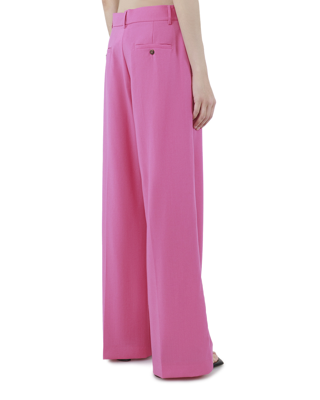 Эти брюки — ода современному стилю, мастерски играя с цветом и формой. Широкий крой придает им динамичность и свободу движения, создавая эффектный силуэт, который становится центром внимания. Яркий розовый цвет заряжает энергией и оптимизмом, делая изделие ключевой деталью вашего гардероба. Материал отличается гладкостью и лёгким блеском, что придаёт брюкам роскошный вид и подчеркивает их изысканность. Отделка выполнена с вниманием к деталям: пояс со шлёвками добавляет функциональности и позволяет носить аксессуары, которые подчеркнут вашу индивидуальность. Скрытая застёжка на молнии и крючок обеспечивают чистоту линий и аккуратную посадку в талии. Эти брюки — идеальный выбор для создания выразительных и стильных образов как в повседневной жизни, так и для особых случаев, подчеркивая вашу уверенность и уникальность.
