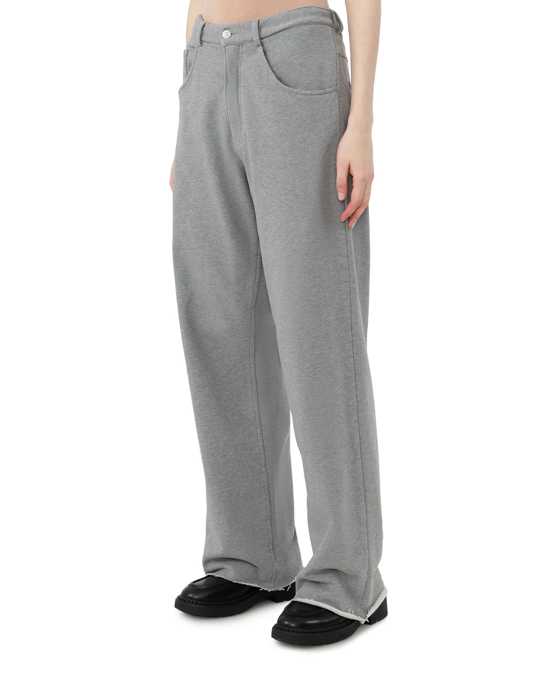 Описание брюк Эти брюки выполнены в спортианом стиле с прямым, слегка расширяющимся книзу кроем, что обеспечивает комфортную посадку и свободное движение. Модель изготовлена из мягкого, тканого трикотажа с легкой эластичностью, что добавляет изделия удобство и универсальность в носке. Передняя часть оснащена классической застёжкой на пуговицу и молнию, дополненной аккуратным гульфиком, что делает дизайн лаконичным и функциональным. Зауженная линия пояса с продетыми шлевками позволяет сочетать брюки с ремнём для дополнительной фиксации и стилистического акцента. Практичные боковые карманы скошенной формы создают визуальный баланс и добавляют повседневный элемент удобства. Верхний срез и швы обработаны аккуратным отделочным швом двойным строчением, что повышает износостойкость и подчёркивает высокое качество пошива. Эти брюки — идеальное сочетание минимализма и функциональности для стильного и комфортного образа вне зависимости от сезона.