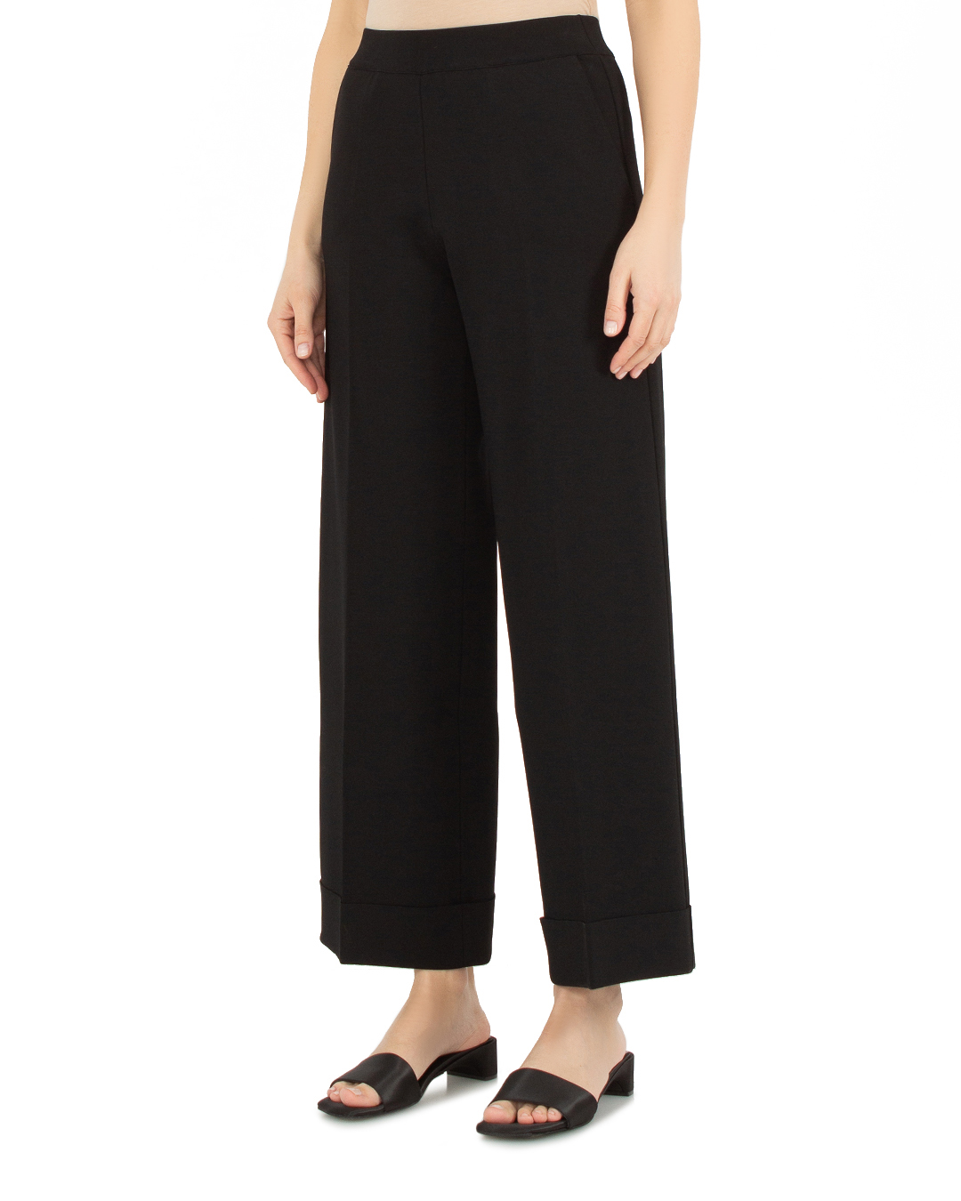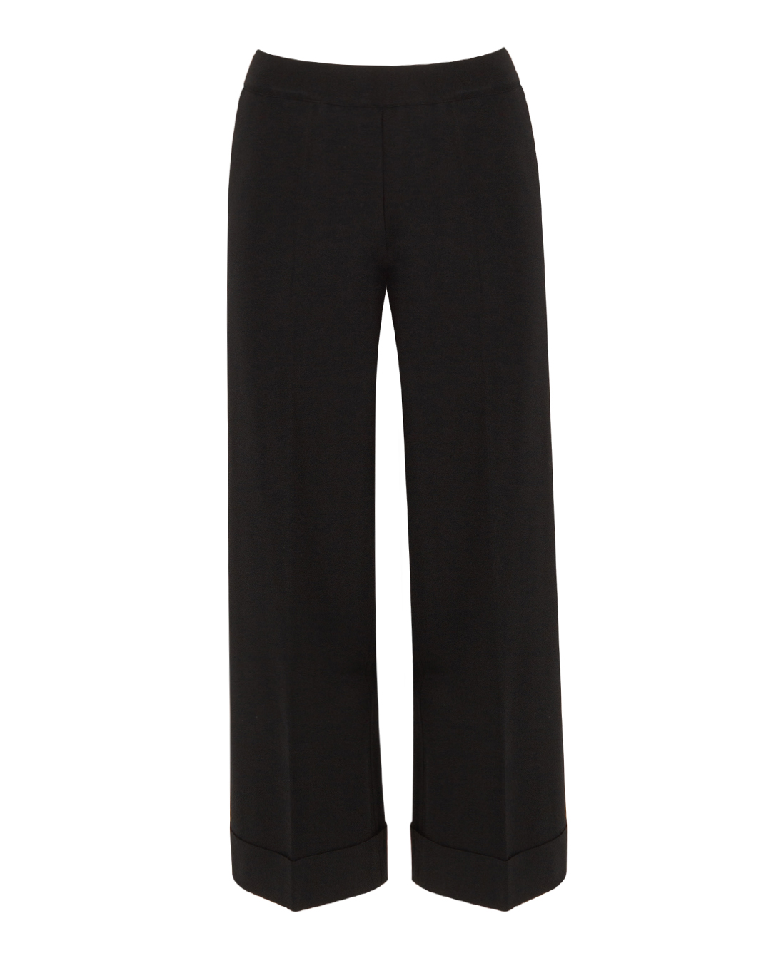 Брюки MRZ сшиты из трикотажной вискозы. Эластичное изделие прямого силуэта со стрелками дополнено отворотами в нижней части брючин.