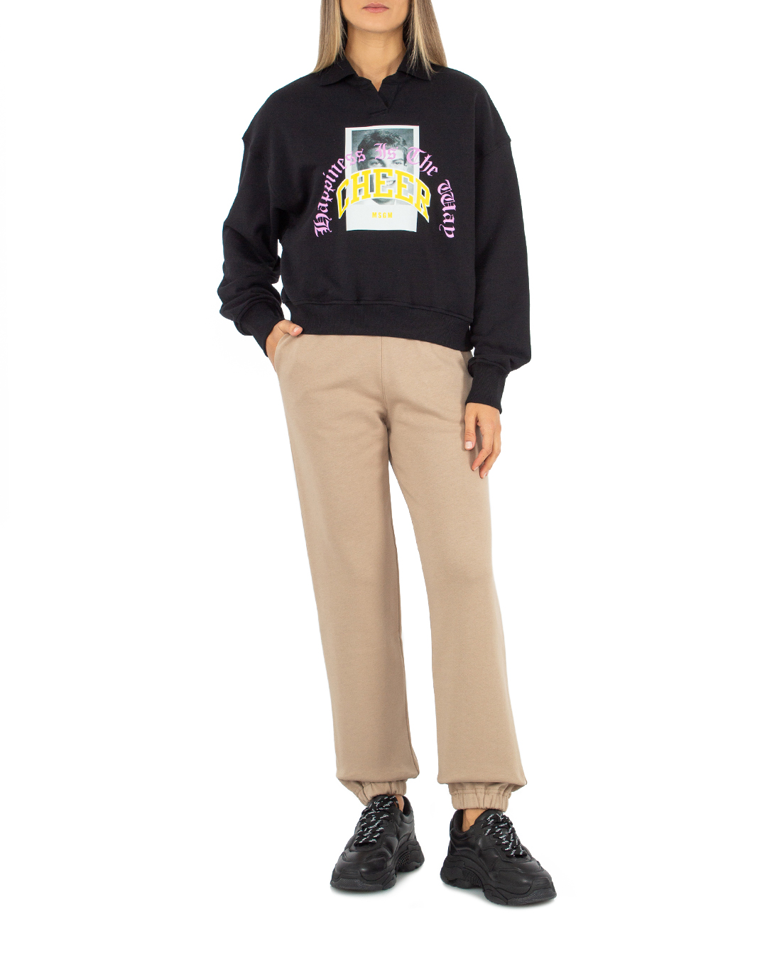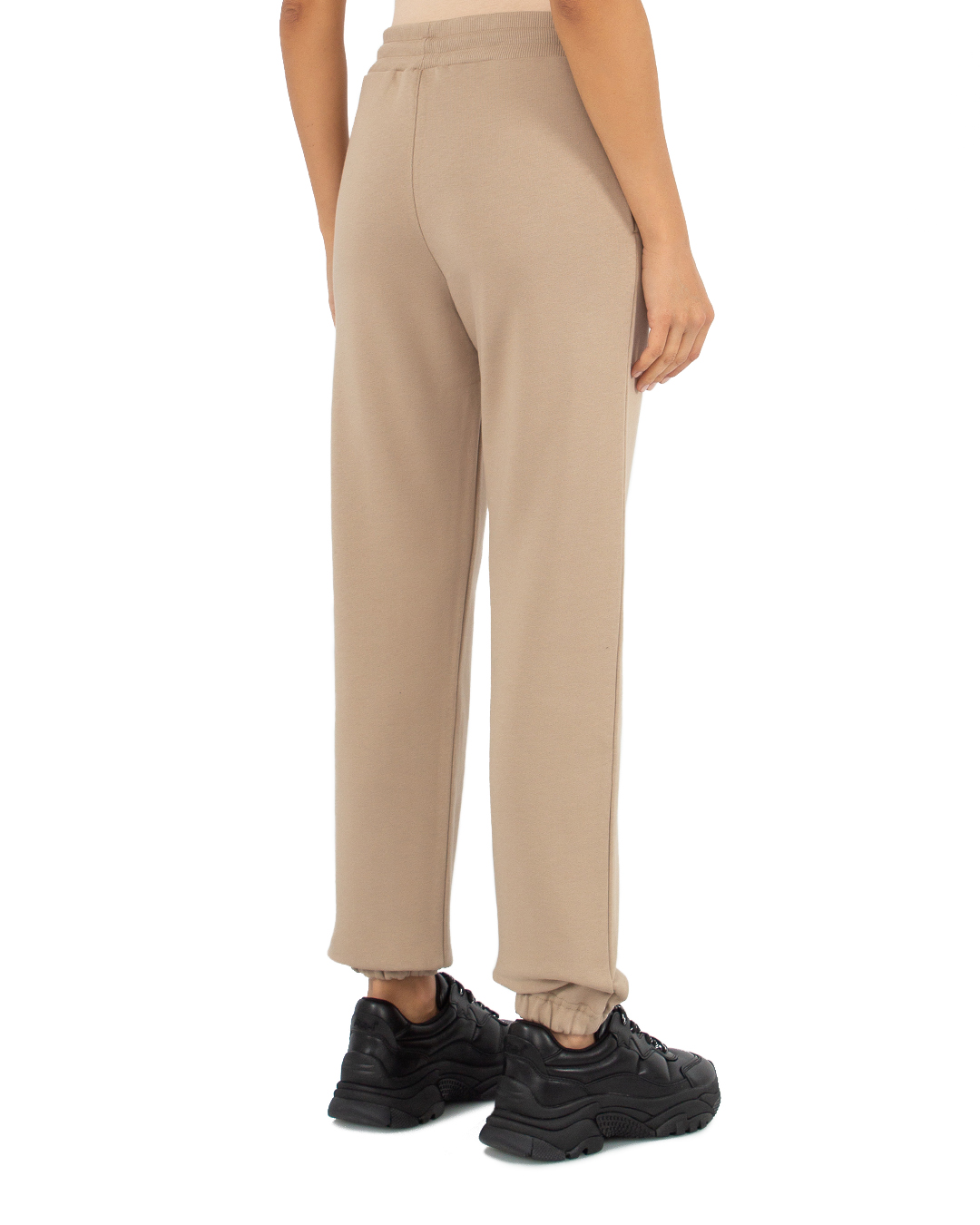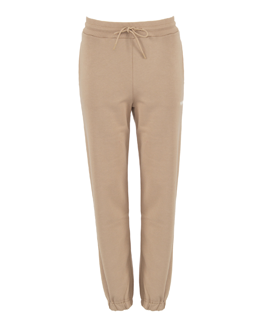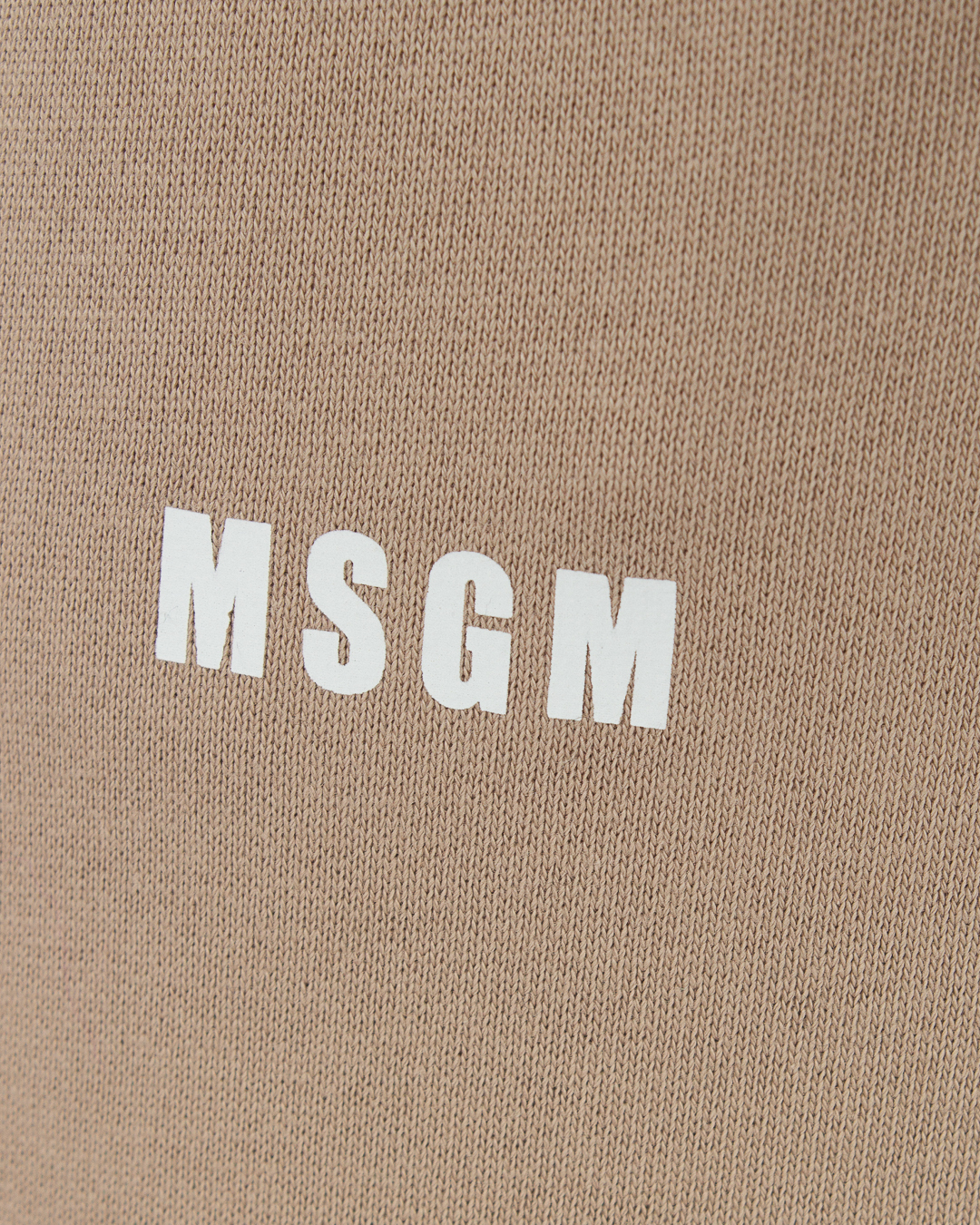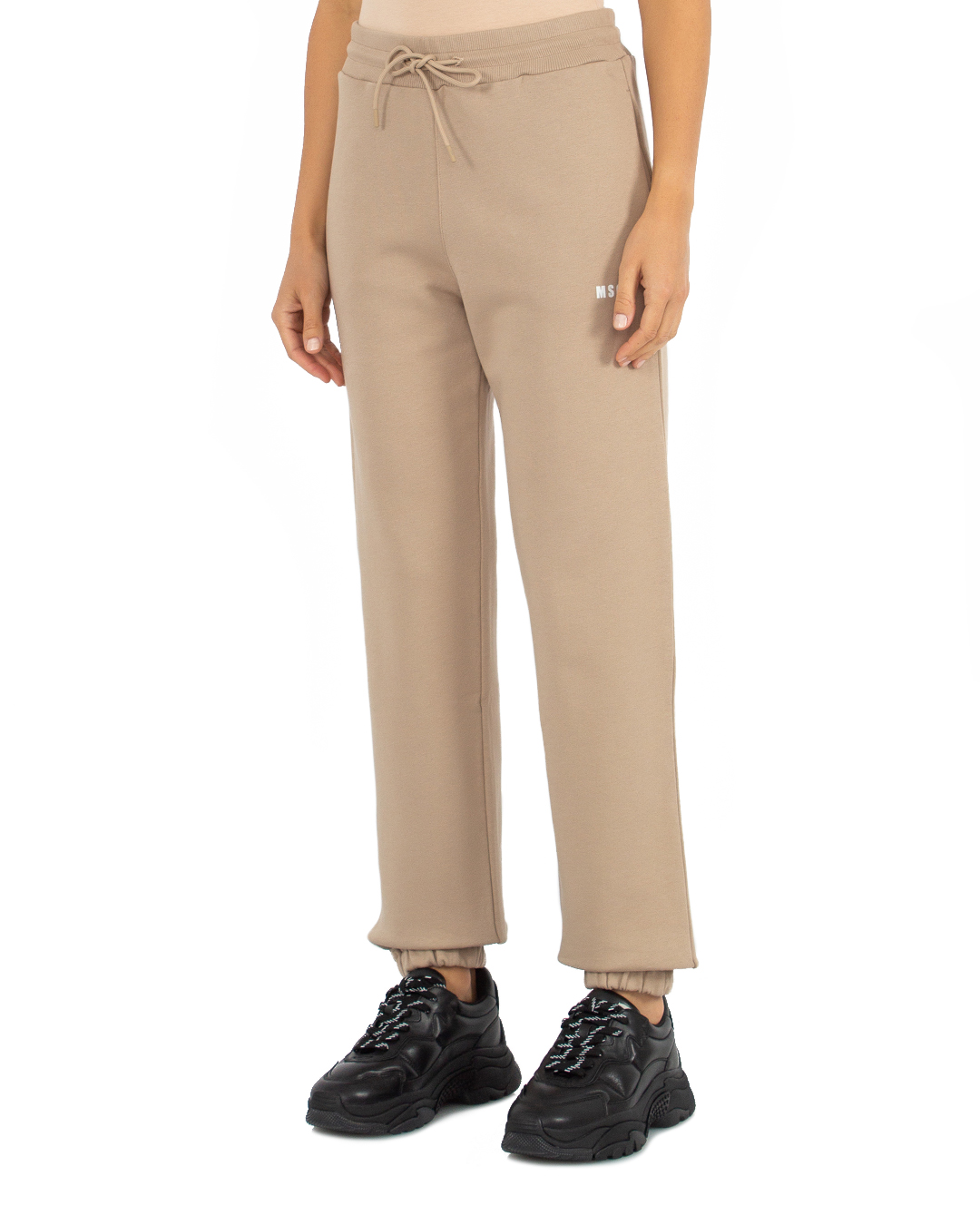 Брюки MSGM из трикотажного хлопка бежевого оттенка с логотипом бренда. Модель в спортивном стиле с высокой посадкой на талии и широкой эластичной линией пояса.
