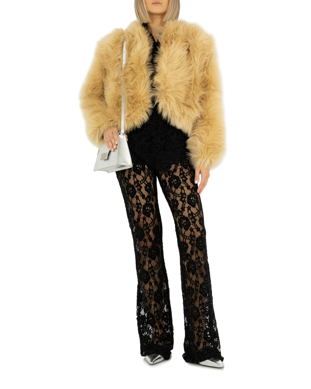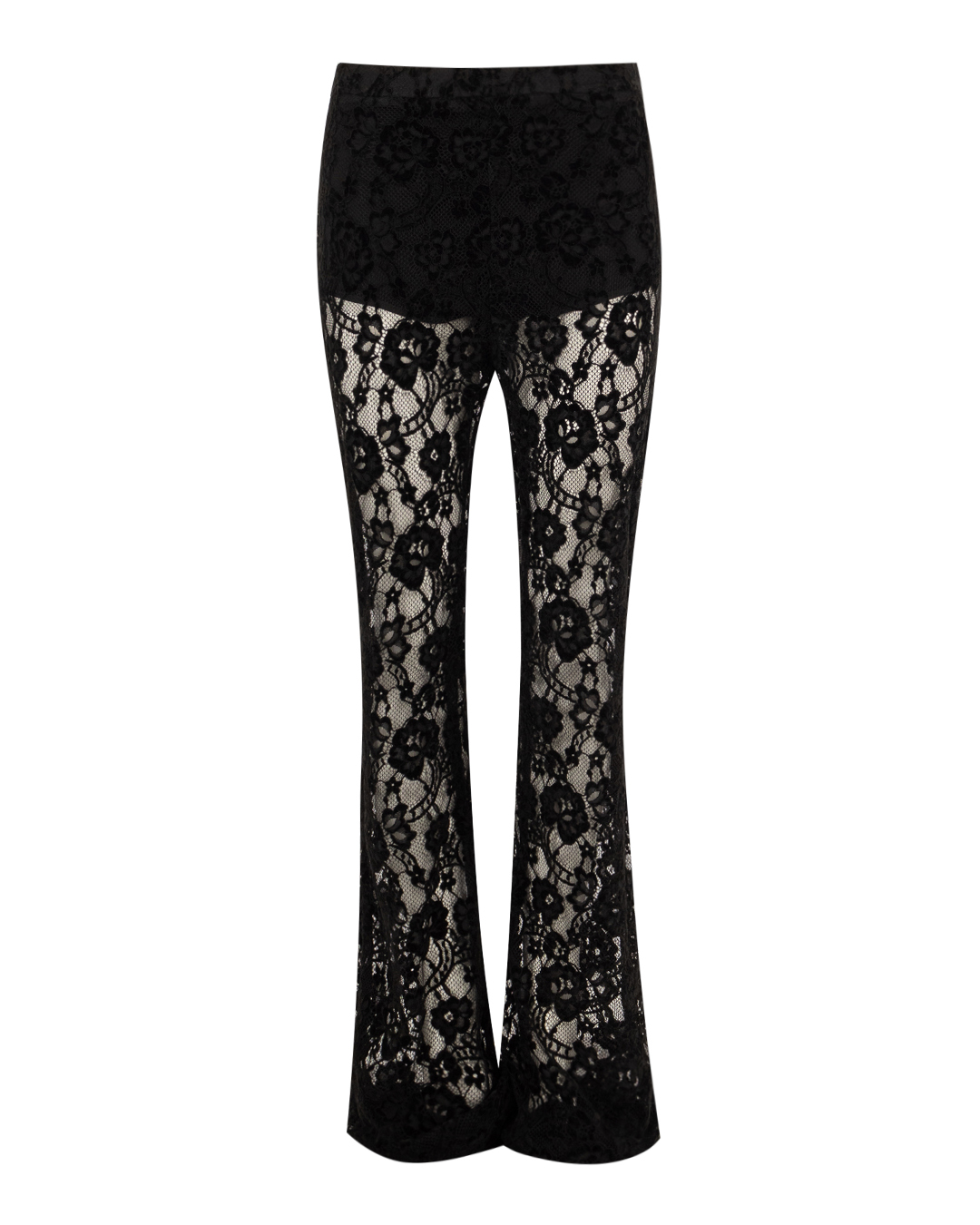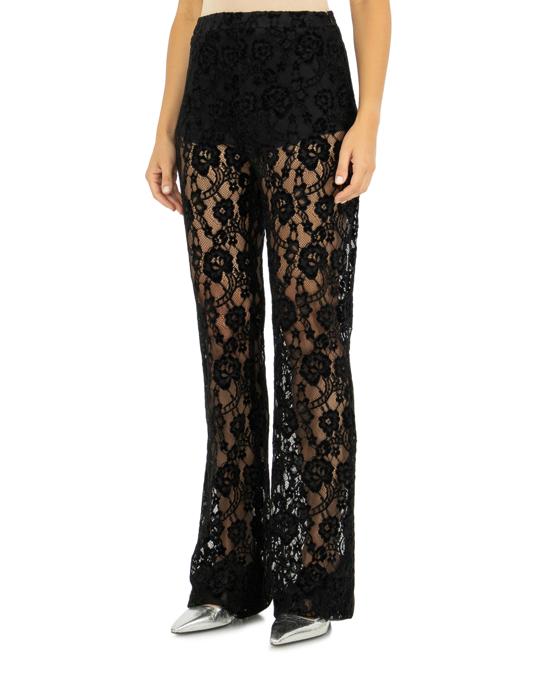 Прямые брюки из легкой, тонкой кружевной ткани с подкладкой - шорты. Высокая посадка на талии, подчеркивающая фигуру. Модель без карманов и шлевок для ремня. Трендовые брюки из прозрачной кружевной ткани для самых стильных и женственных аутфитов на каждый день или по особым случаям.
