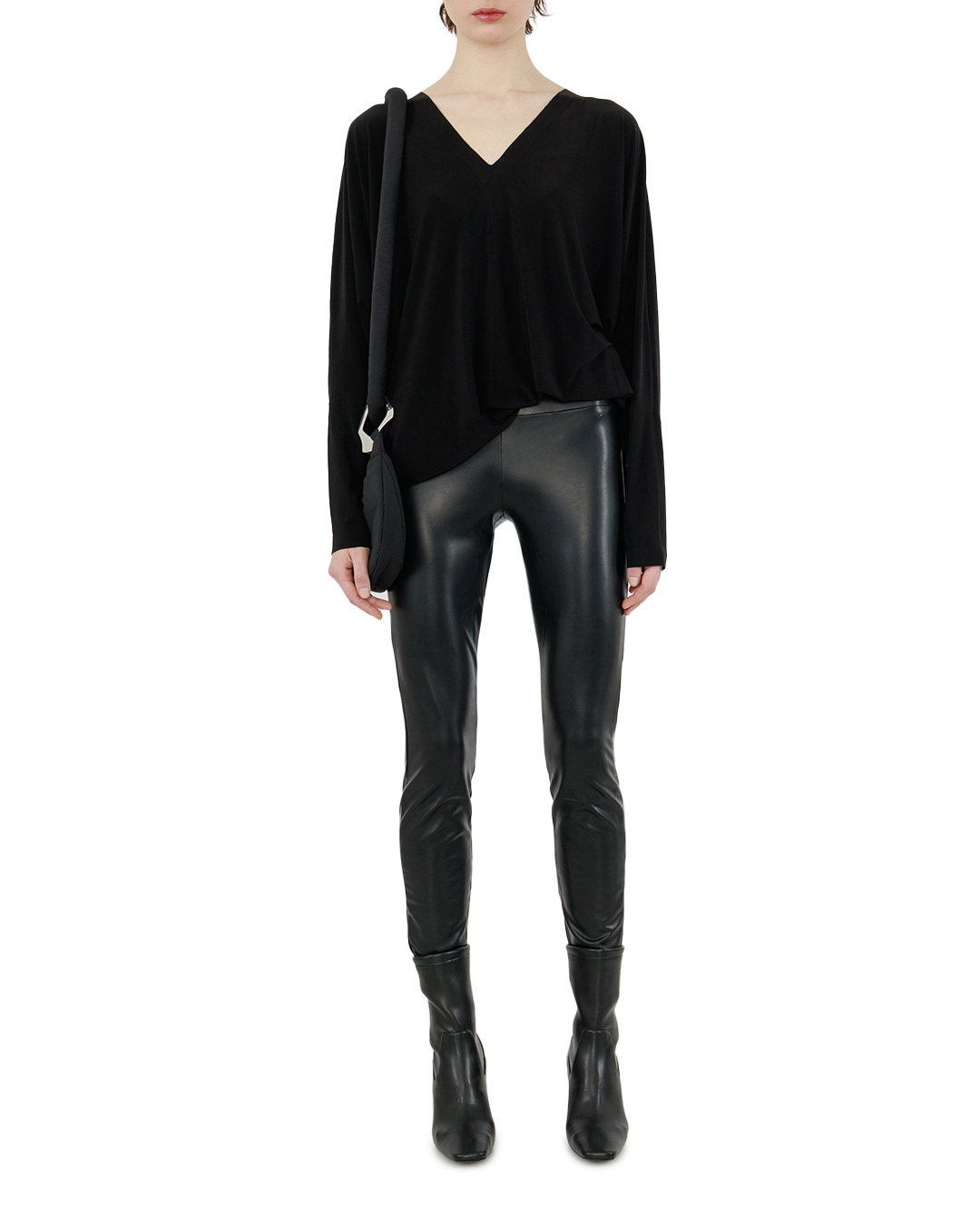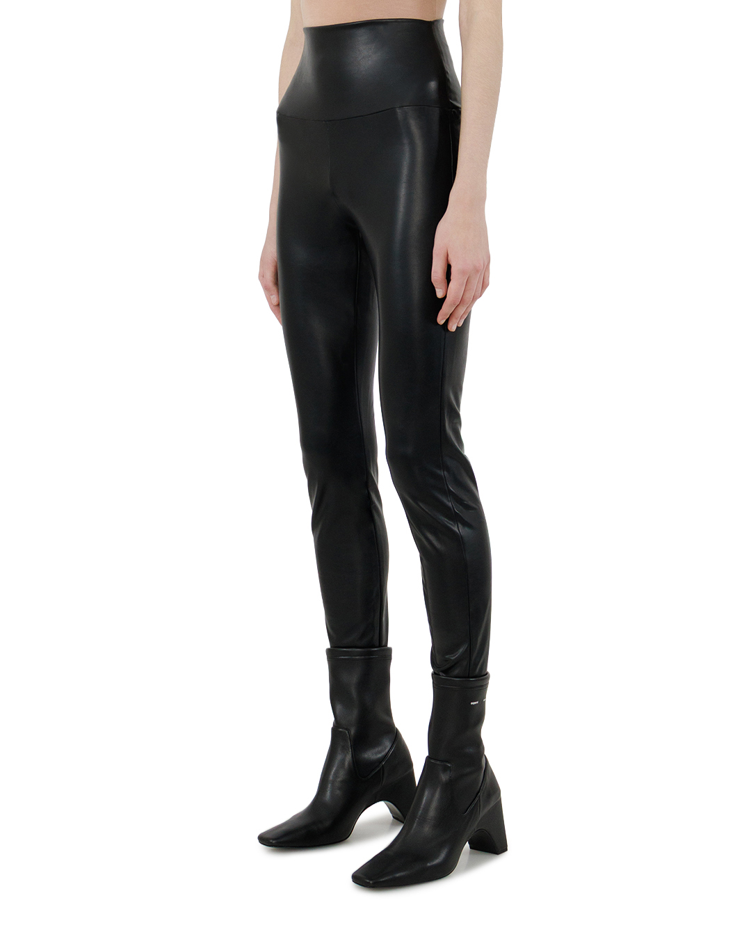 Эти леггинсы из искусственной кожи — воплощение современного гламура с оттенком дерзкой элегантности. Глубокий чёрный оттенок и глянцевая фактура материала создают эффект «второй кожи», подчёркивая контуры фигуры с изысканной лаконичностью. Высокая посадка пояса изящно акцентирует талию, визуально удлиняя ноги и формируя безупречный силуэт. Обтягивающий крой подчёркивает естественные изгибы тела, создавая гармоничное сочетание комфорта и выразительности. Отсутствие лишних деталей придаёт модели минималистичный шик — такие леггинсы станут базой для самых смелых образов. Гладкая поверхность экокожи играет со светом, добавляя образу глубины и динамики. Безупречная посадка и эластичность материала обеспечивают свободу движений, при этом сохраняя безупречный внешний вид в течение всего дня. Эта модель идеально впишется в гардероб ценительницы урбанистической эстетики. Сочетайте их с кроп-топами для создания дерзкого аутфита, лаконичными блузами для более сдержанного образа или объёмными свитерами для уютной многослойности. В тандеме с ботильонами на каблуке или массивными ботинками леггинсы превратятся в ключевой акцент стильного лука. Идеальный выбор для тех, кто не боится экспериментировать с модой и ценит сочетание роскоши с практичностью.