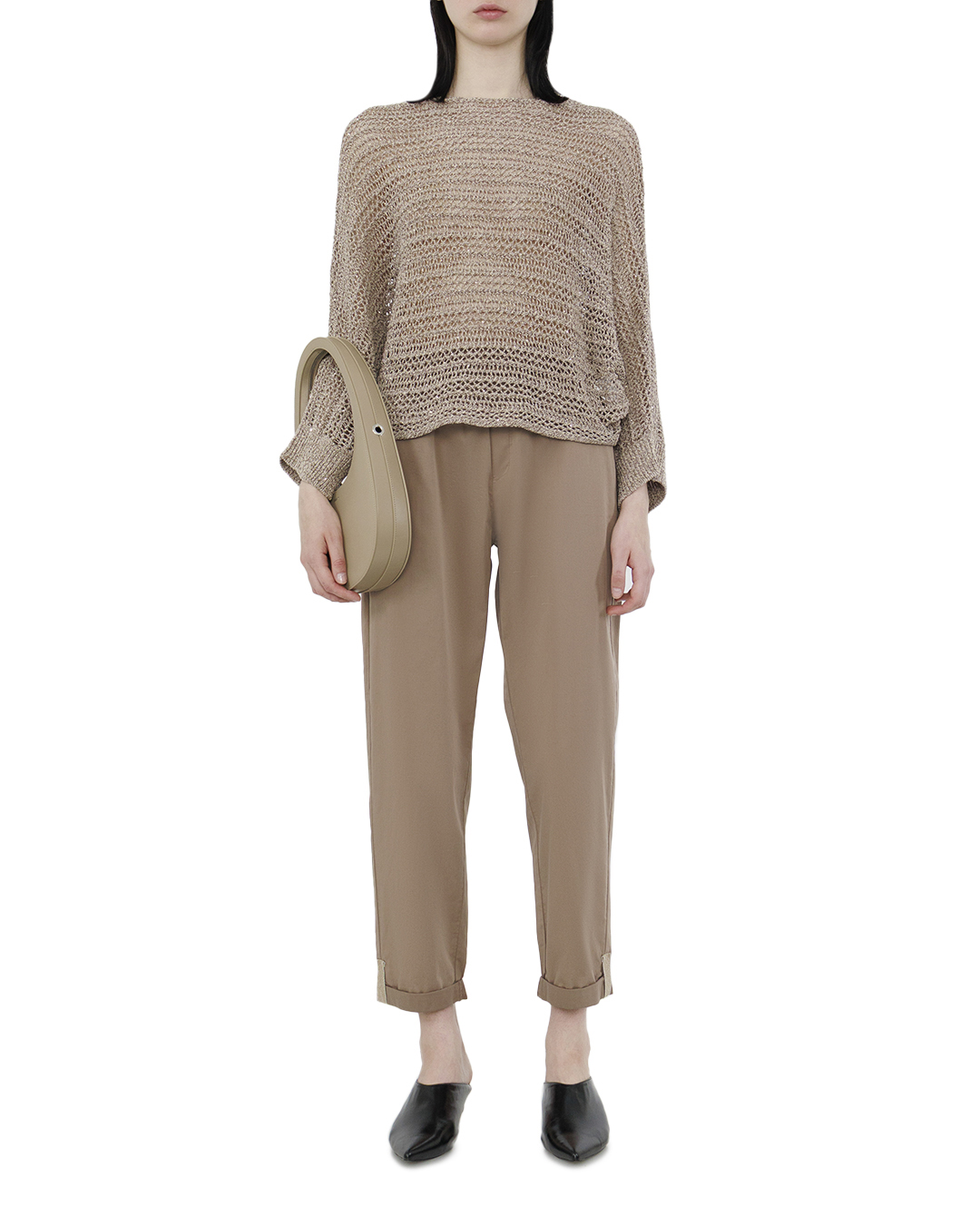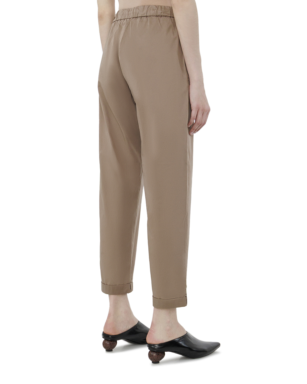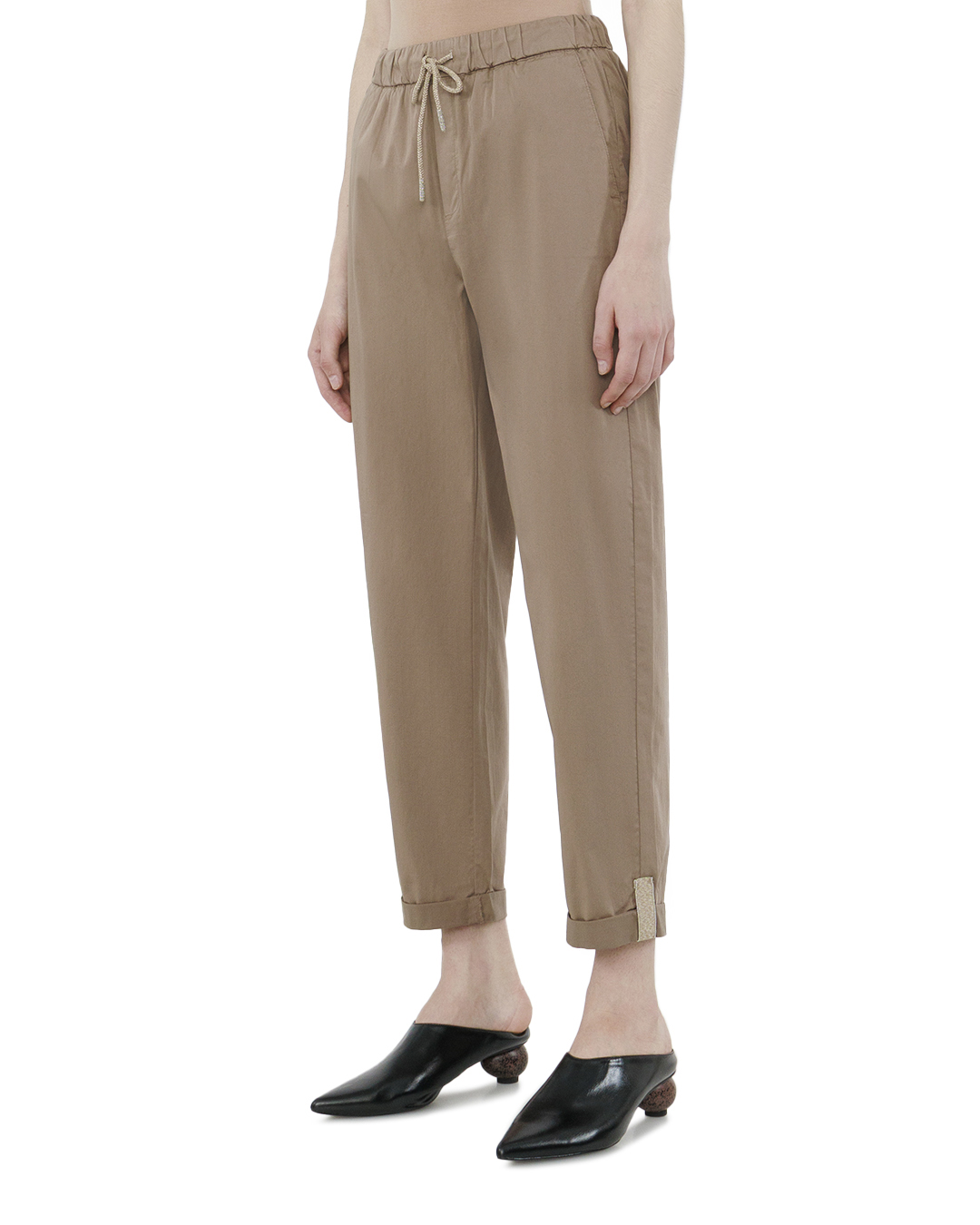 Эти брюки в теплой бежевой гамме — синоним утонченного комфорта и современного стиля. Легкая ткань позволяет коже дышать, обеспечивая непревзойденное удобство в течение всего дня. Свободный крой с мягкими линиями придает модели расслабленный характер и подчёркивает ее универсальность. Эластичный пояс с декоративным шнурком не только обеспечивает удобную посадку, но и добавляет динамичного акцента, делая образ более жизнерадостным. Подвернутые манжеты в нижней части брючин создают стильный, повседневный вид, который прекрасно впишется в кэжуал гардероб. Боковые карманы формируют практичный элемент, добавляя функциональности и лёгкости в движениях. Качественные швы и отделка, выполненные с заботой о деталях, подчеркивают внимание к качеству и современным тенденциям. Эти брюки станут идеальной основой для создания стильных ансамблей, прекрасно комбинирующихся как с кедами и футболками, так и с более элегантными вариантами одежды.