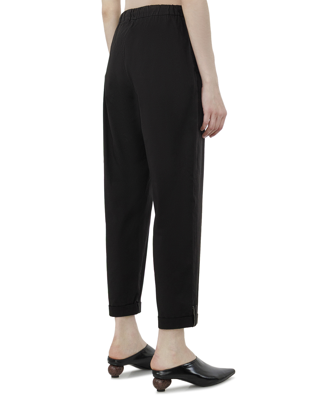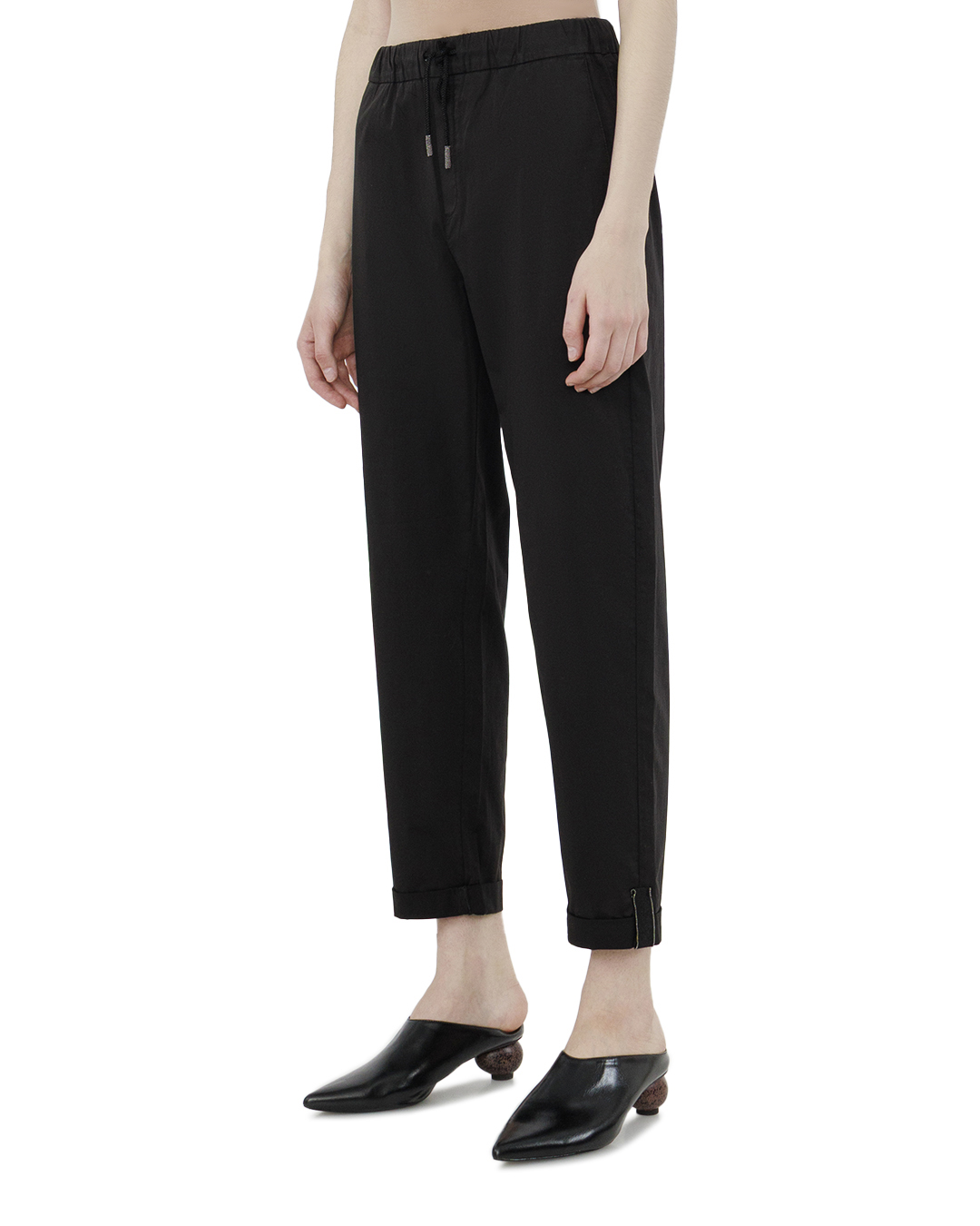 Эти брюки в черном цвете воплощают современный минимализм и комфорт, предлагая стильное решение для повседневного гардероба. Лаконичный дизайн и прямой крой обеспечивают элегантный силуэт, который подходит для любой обстановки — от офиса до прогулок по городу. Эластичный пояс со шнурком добавляет нотку спортивной элегантности и позволяет легко регулировать посадку. Этот элемент также акцентирует внимание на талии, создавая гармонию между комфортом и стилем. Подвороты на брюках придают изделию утонченный и дерзкий вид, добавляя современный штрих в традиционный дизайн. Аккуратные швы и гладкая текстура материала подчеркивают качество исполнения. Эти брюки станут превосходной основой как для кэжуал нарядов, так и для более формальных сочетаний, благодаря своей универсальности и безупречному стилю.