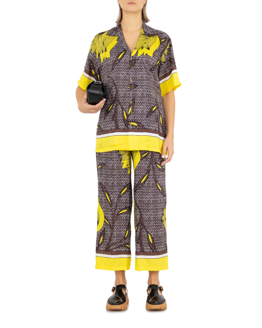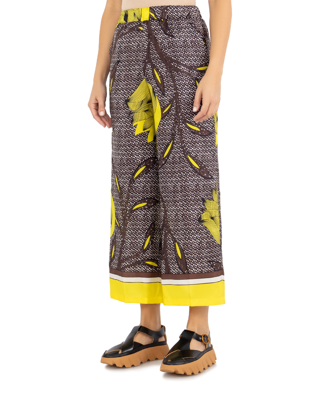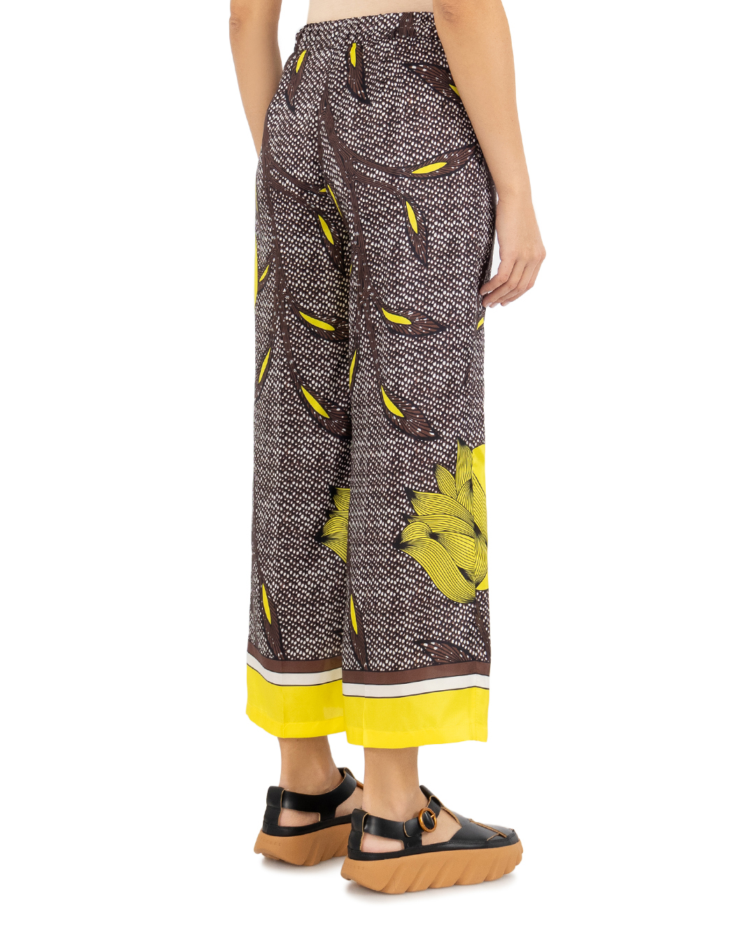 Укороченные брюки свободного кроя с цветочным принтом из 100% шелка. Модель на широкой эластичной резинке. Шелк известен таким свойством как высокая воздухопроницаемость и отличная терморегуляция, что гарантирует комфорт.