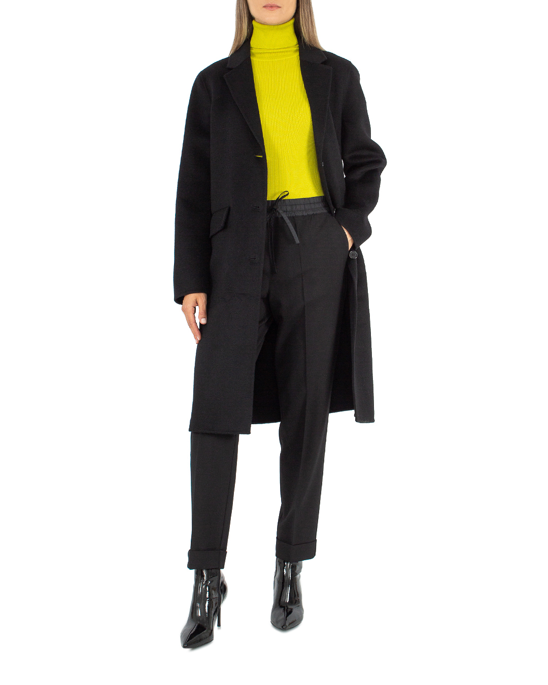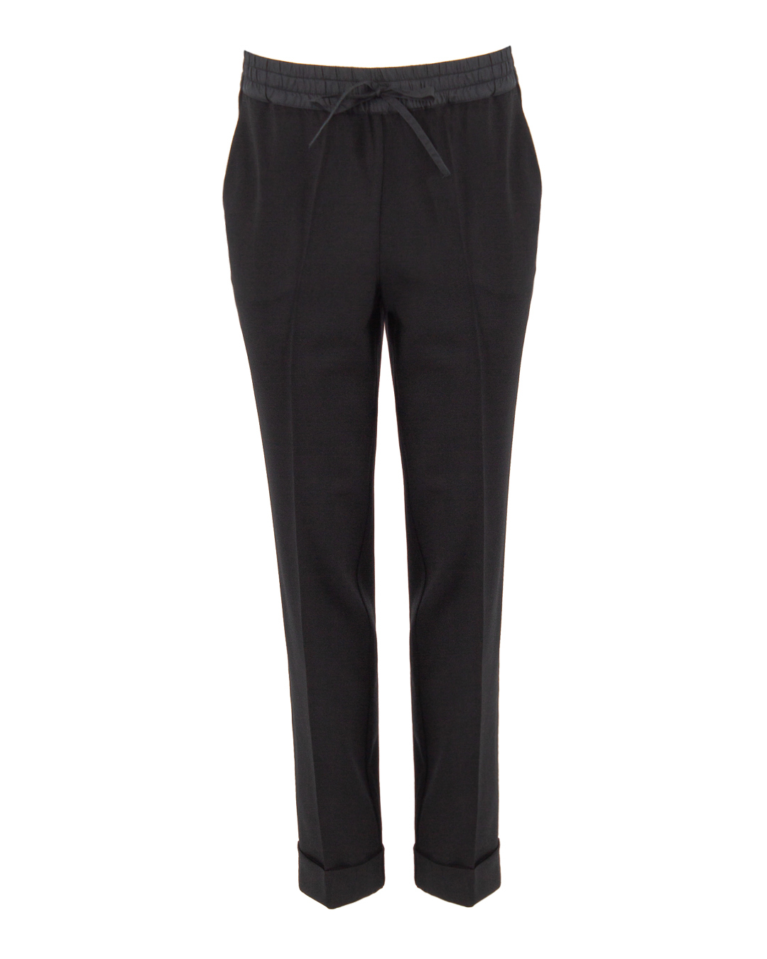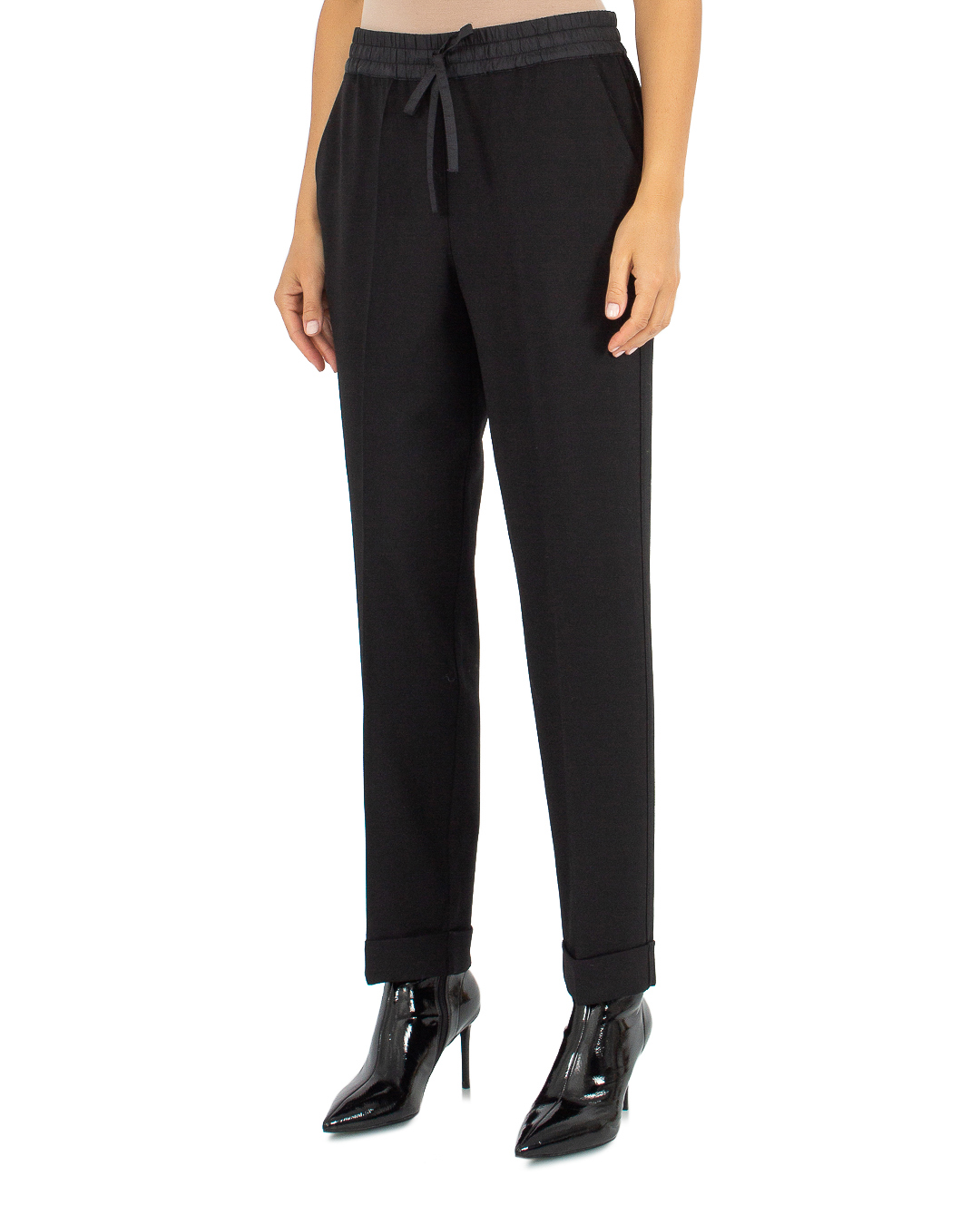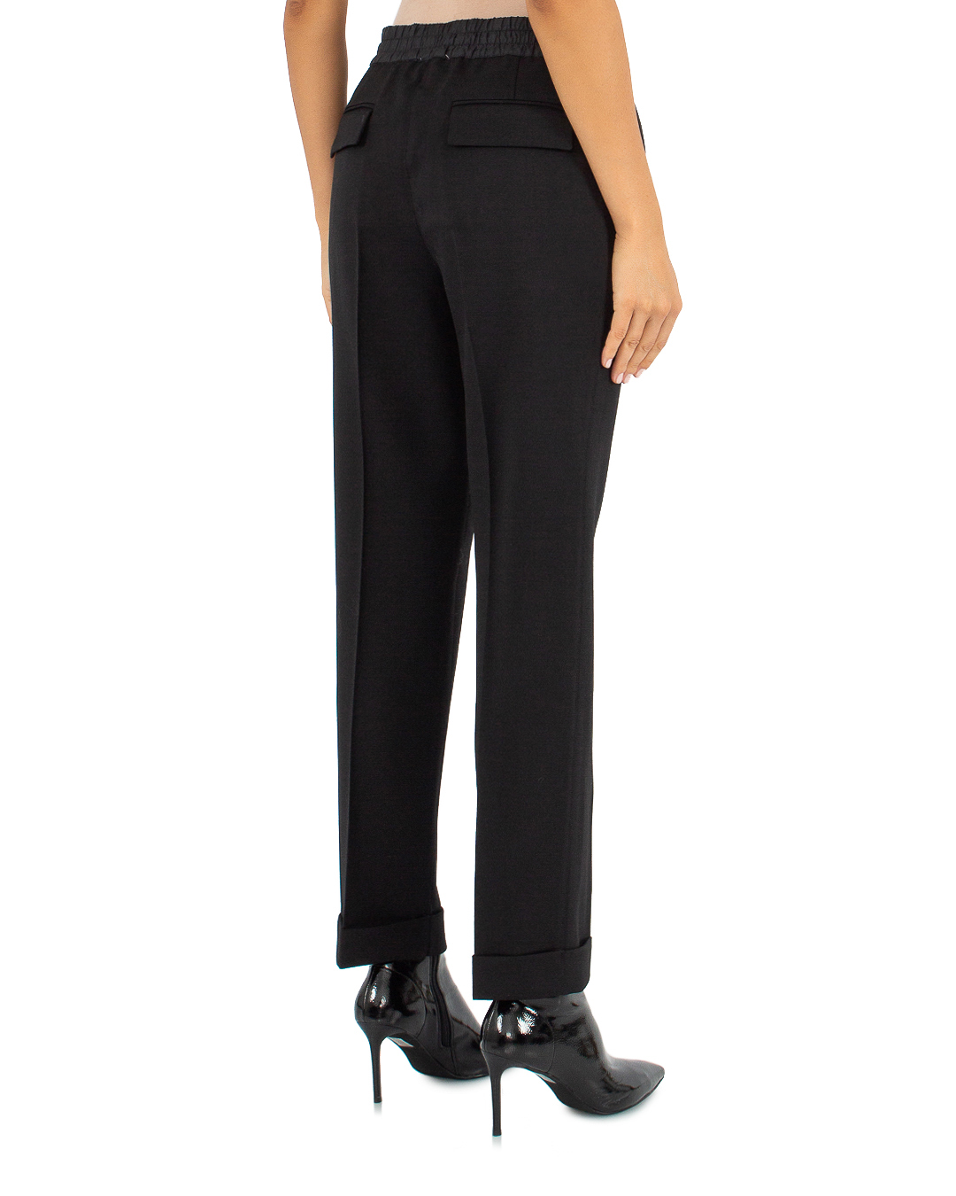 Брюки P.A.R.O.S.H. из костюмной шерсти. Модель прямого силуэта со стрелками и отворотами в нижней части брючин. Высокая посадка на талии и эластичная линия пояса.