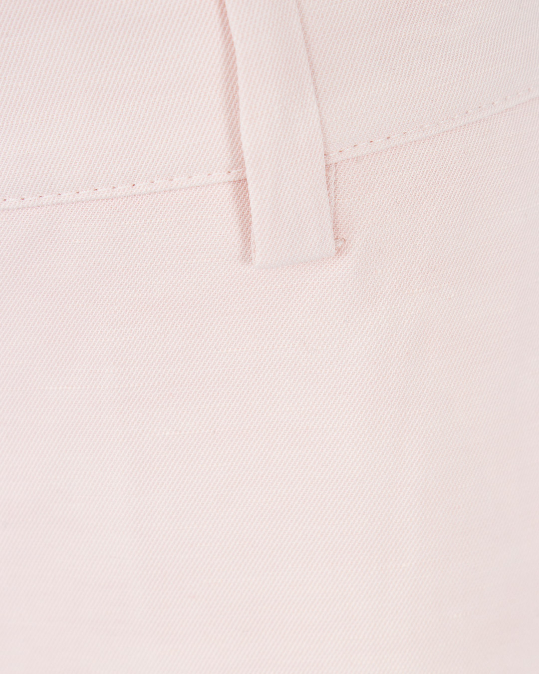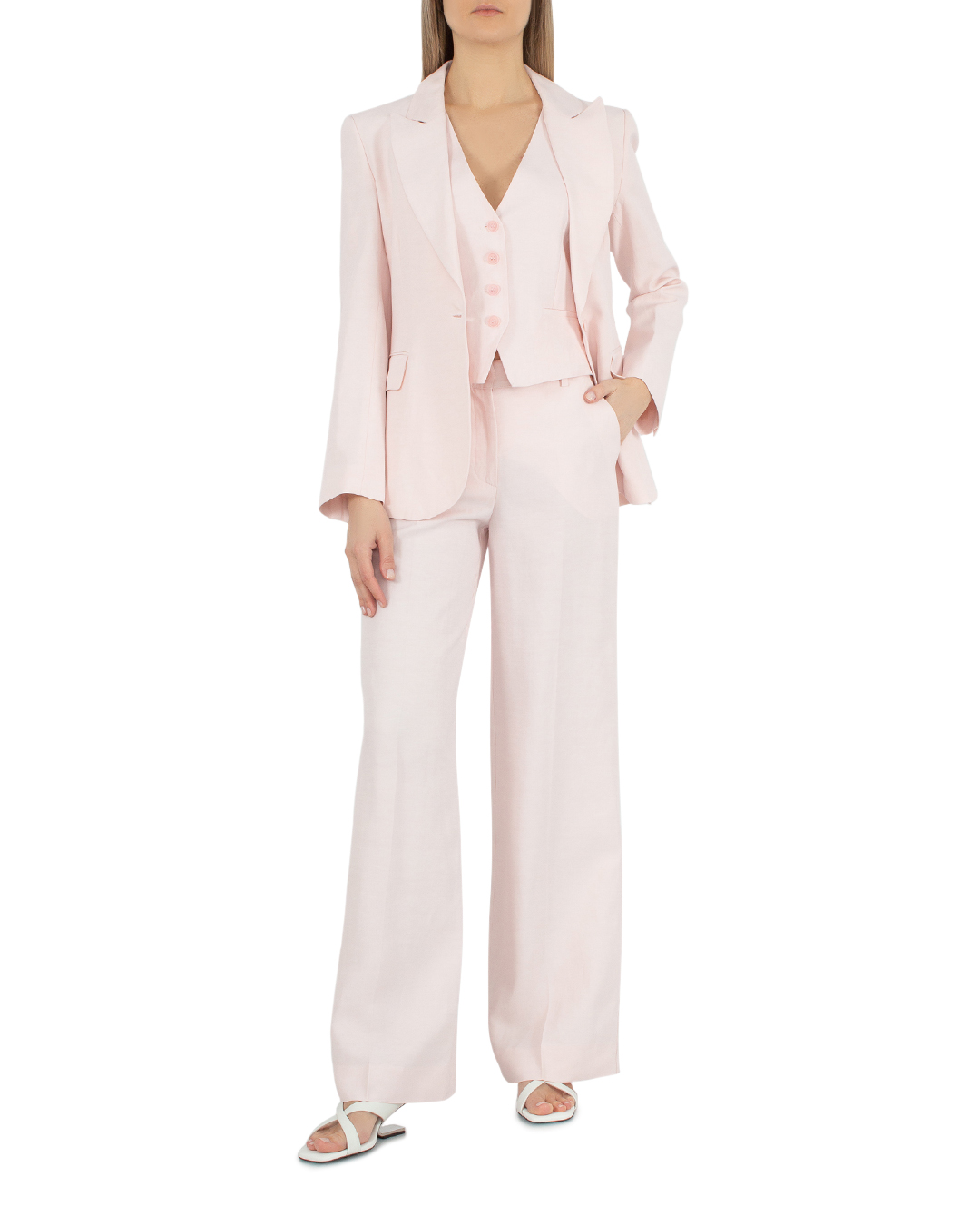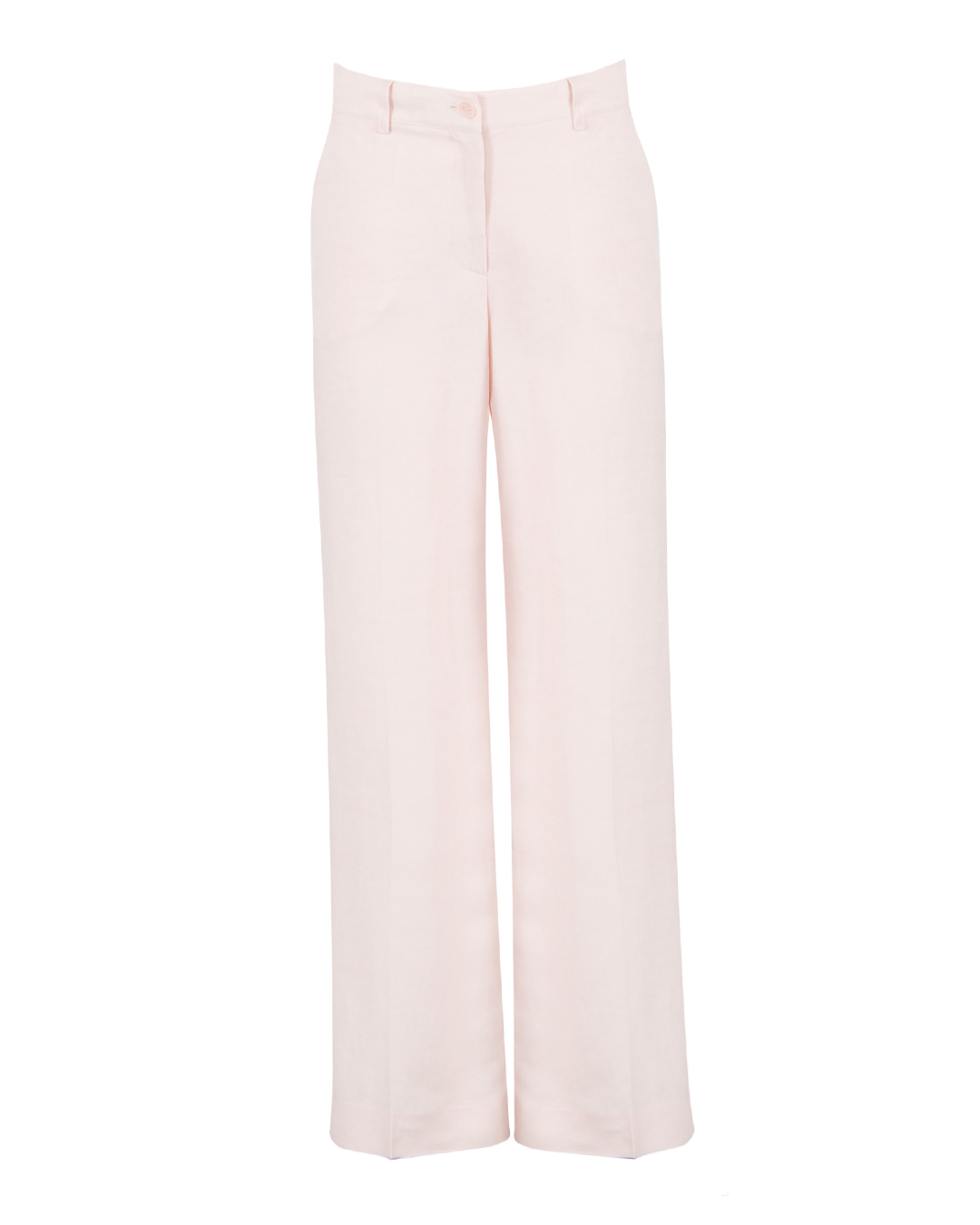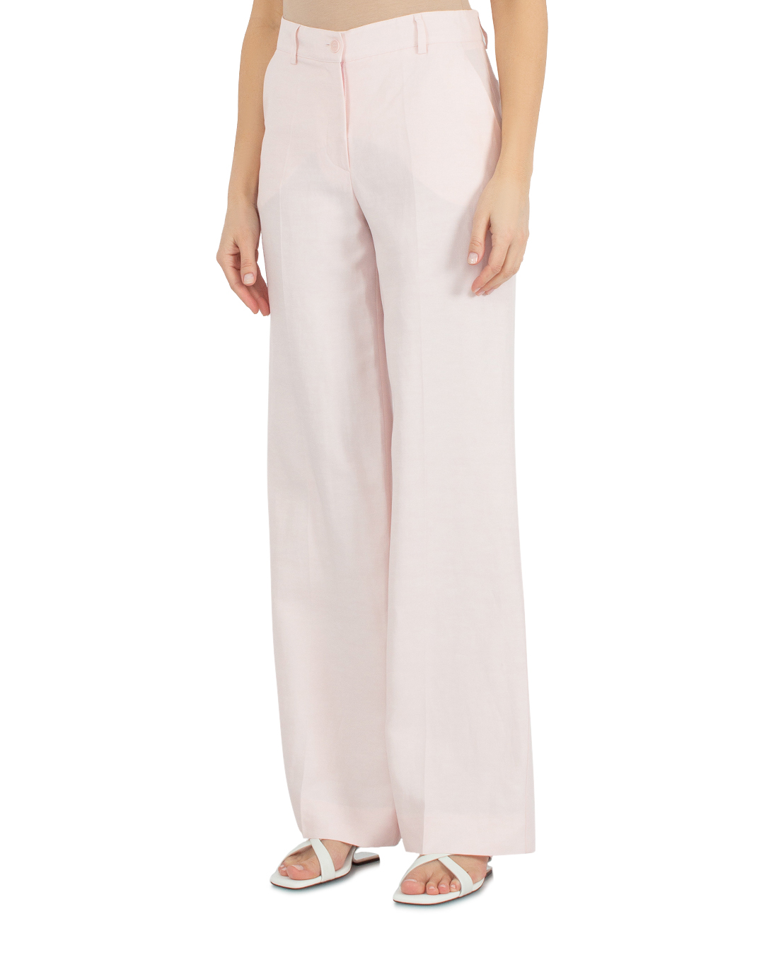 Костюмные брюки P.A.R.O.S.H. из вискозы и льна. Модель прямого силуэта с широкими брючинами и с высокой посадкой на талии с застежкой на молнию и пуговицу.