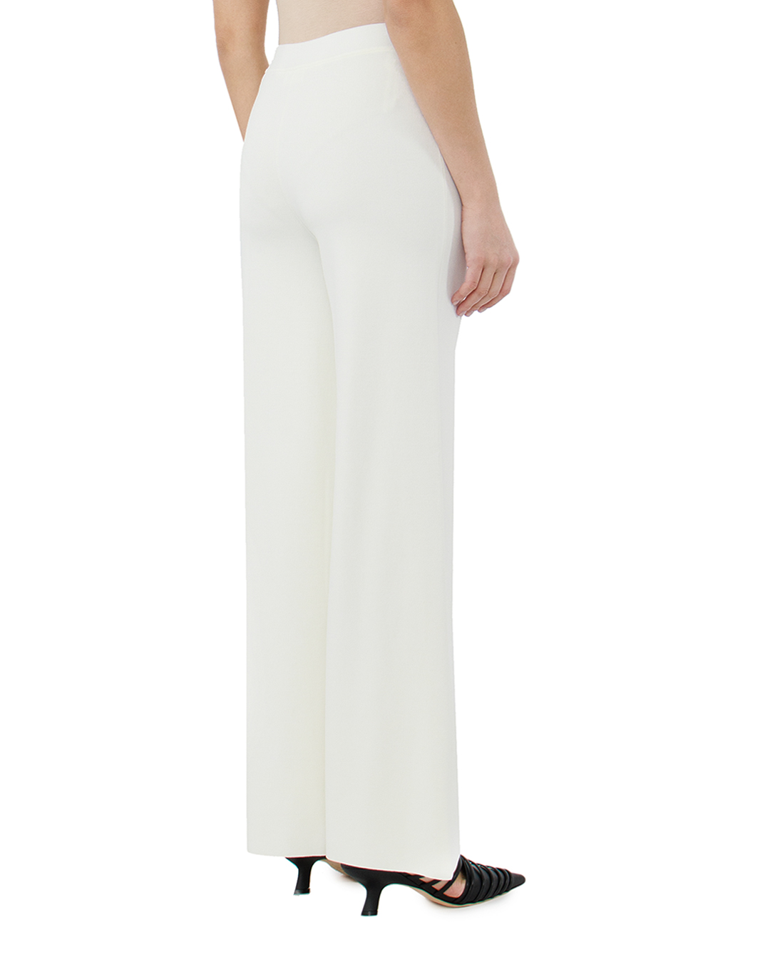 Брюки P.A.R.O.S.H. воплощают в себе элегантность и современный шарм, создавая атмосферу утонченной роскоши. Выполненные в благородном молочном оттенке, они предлагают свежий взгляд на классический силуэт. Свободный крой с легким клешем от бедра придает образу динамичность и изысканную расслабленность, подчёркивая линию фигуры с деликатной элегантностью. Материал отличается исключительным качеством, текстура ткани приятная на ощупь и обеспечивает комфорт в носке, идеально формируя драпировку. Широкий пояс без видимой застежки обеспечивает безупречную посадку, создавая чистый, лаконичный силуэт. Швы выполнены с филигранной точностью, подчеркивая мастерство бренда. Благодаря простой, но утонченной отделке, эти брюки легко комбинируются как с классическими, так и с современными акцентами гардероба. Они станут идеальным элементом как для деловых встреч, так и для стильного повседневного образа.