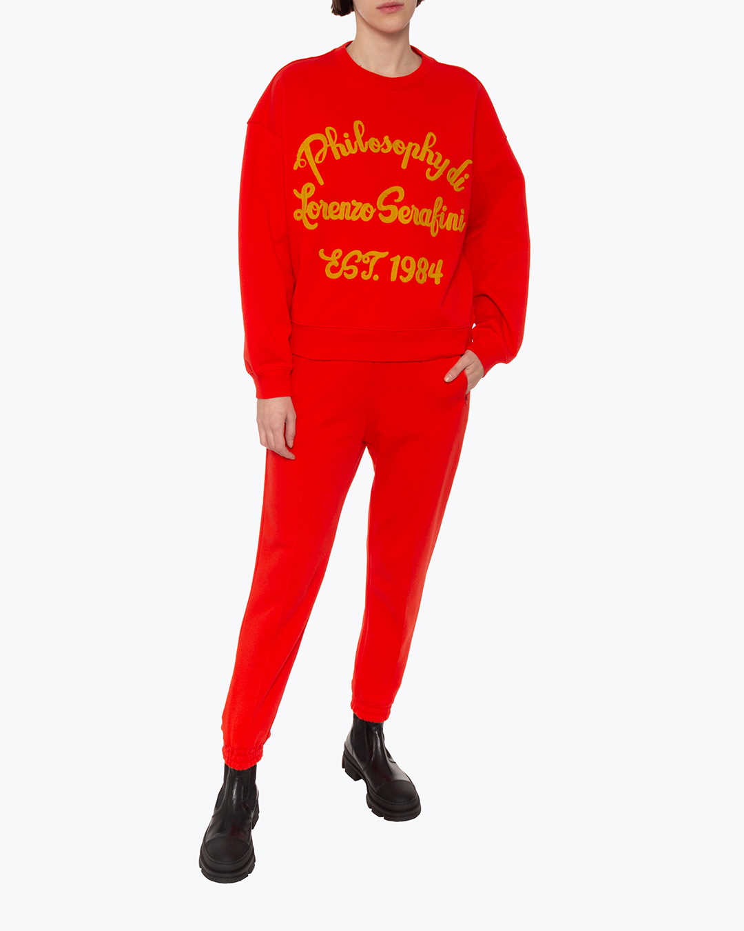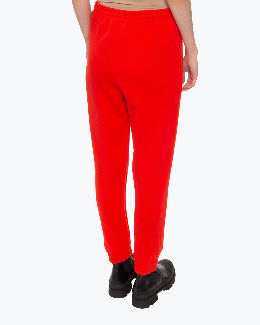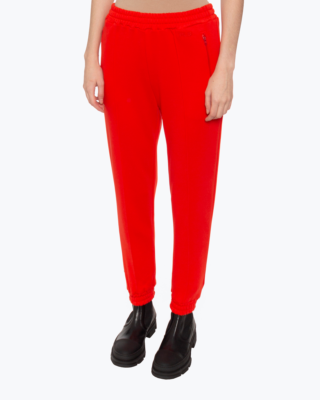 Женские брюки PHILOSOPHY DI LORENZO SERAFINI из трикотажного хлопка красного оттенка. Зауженное к низу изделие в спортивном стиле с высокой посадкой на талии и широкой эластичной линией пояса. Брюки дополнены двумя карманами по бокам на молниях.