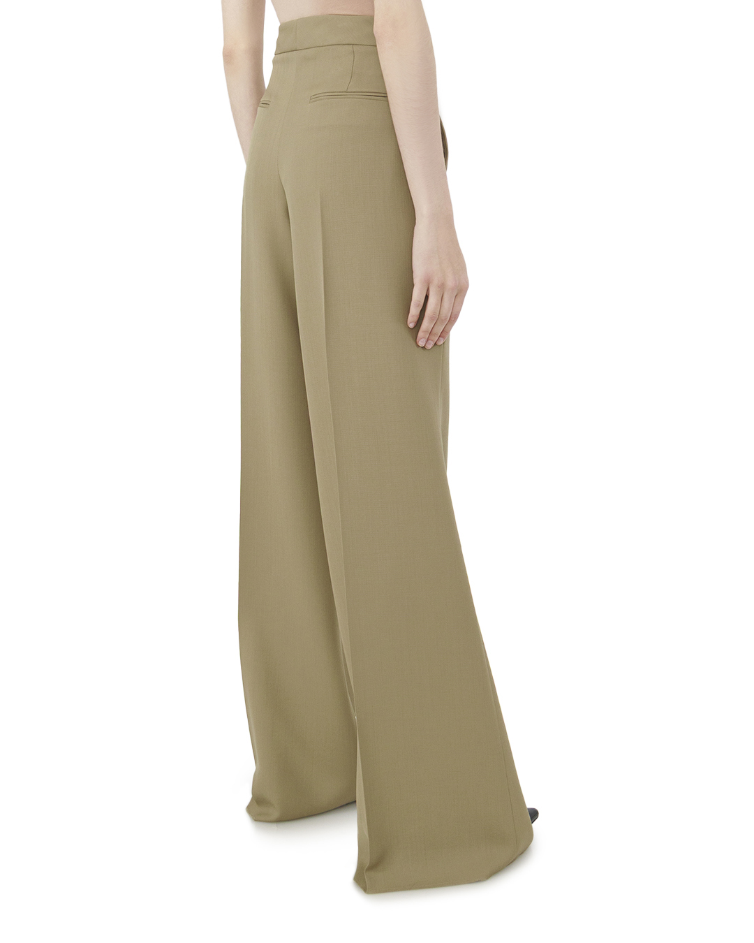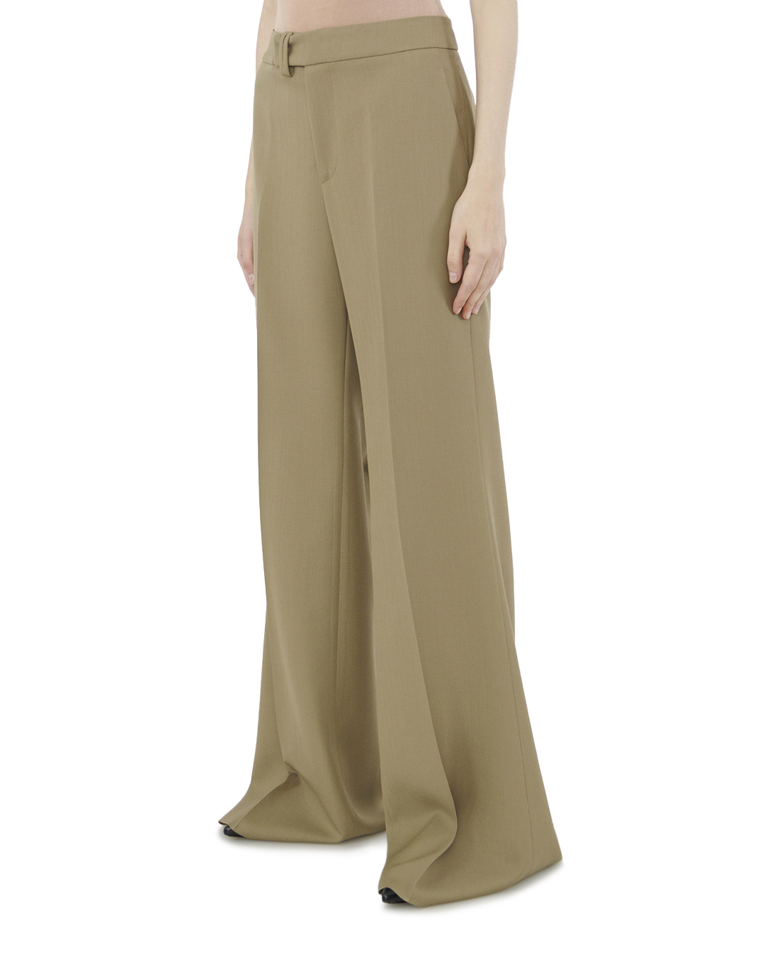 Эти брюки в изысканном бежевом оттенке выполнены из шерсти, что делает их идеальными для создания стильного и современного образа. Линия талии завышена, что визуально удлиняет ноги и подчеркивает силуэт. Крой — свободный, с широкими штанинами, создающим эффект «палаццо», который придает образу элегантности и изящества. Пояс оформлен узким ремнем на талии, что добавляет акцент и обеспечивает идеальную посадку, а также акцентирует внимание на линии талии. Отделка включает утонченные стрелки вдоль передней части штанин, которые подчеркивают длинную линию ног и придают образу строгий, лаконичный вид. Боковые карманы с аккуратным подрезом сохраняют чистоту линий и добавляют функциональности без ущерба для эстетики. Стильные отвороты на подоле брюков создают лёгкую игру форм и текстур, вносив элемент динамики в классическое изделие. Эти брюки прекрасно подойдут как для офисной среды, так и для вечерних выходов, в сочетании с лаконичными блузами или обувью на каблуке. Такой акцент на деталях создает многогранный образ, преображая его в стильный и актуальный.