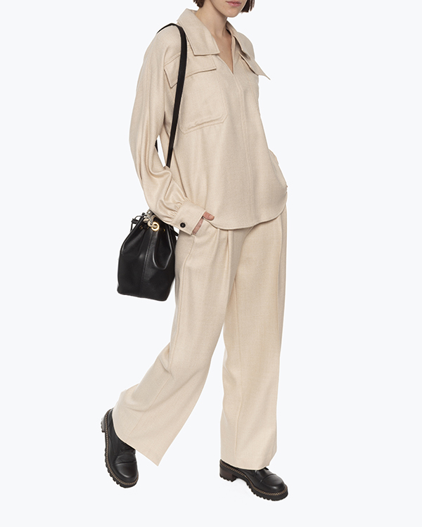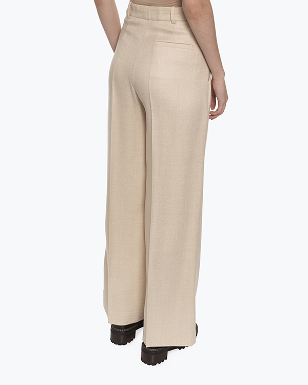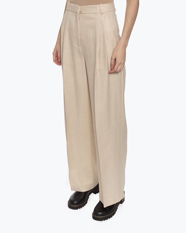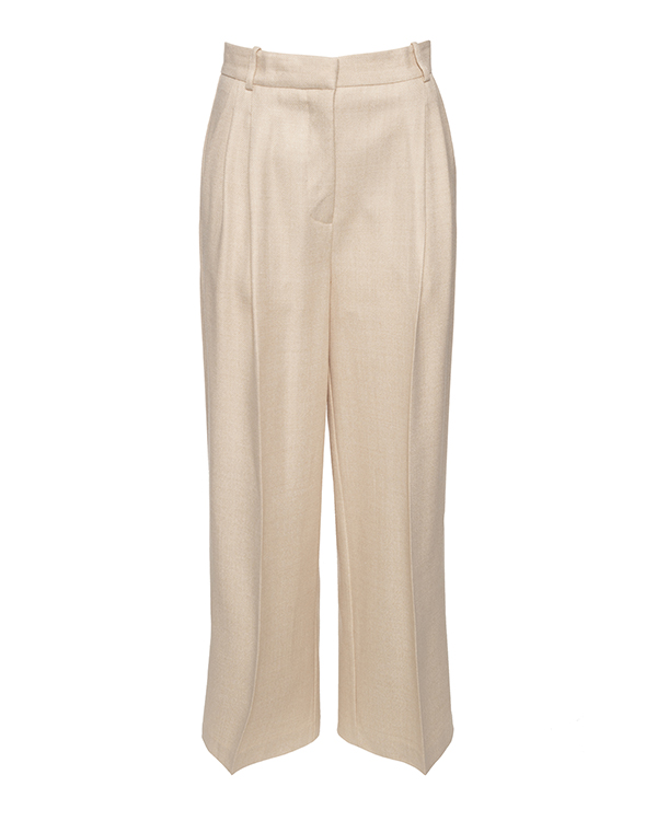 Женские брюки Erika Cavallini из новой осенне-зимней коллекции 21/22 выполнены из мягкого текстильного полотна с добавлением шерсти бежевого оттенка. Модель прямого свободного силуэта с высокой посадкой на талии и защипами для придания большего объема.