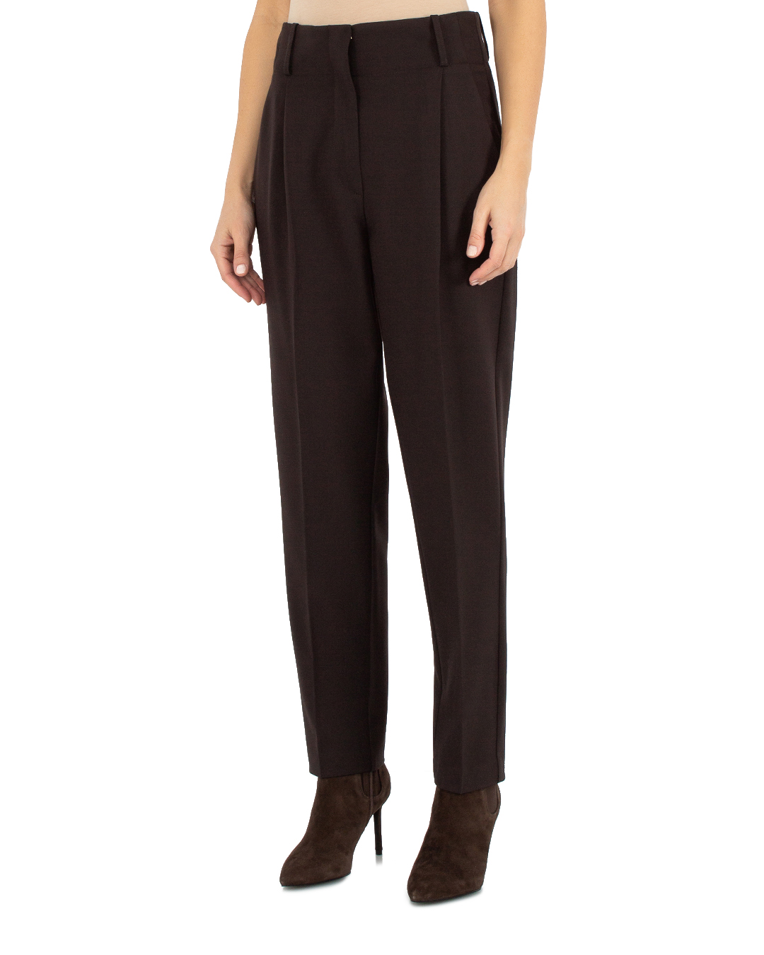 Брюки Sfizio из крепа с контрастной строчкой. Модель прямого силуэта со стрелками. Комфортная посадка на талии и застежка на молнию и крючок.