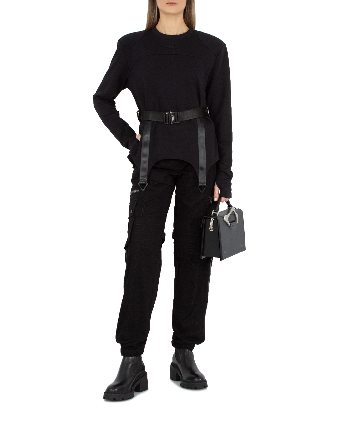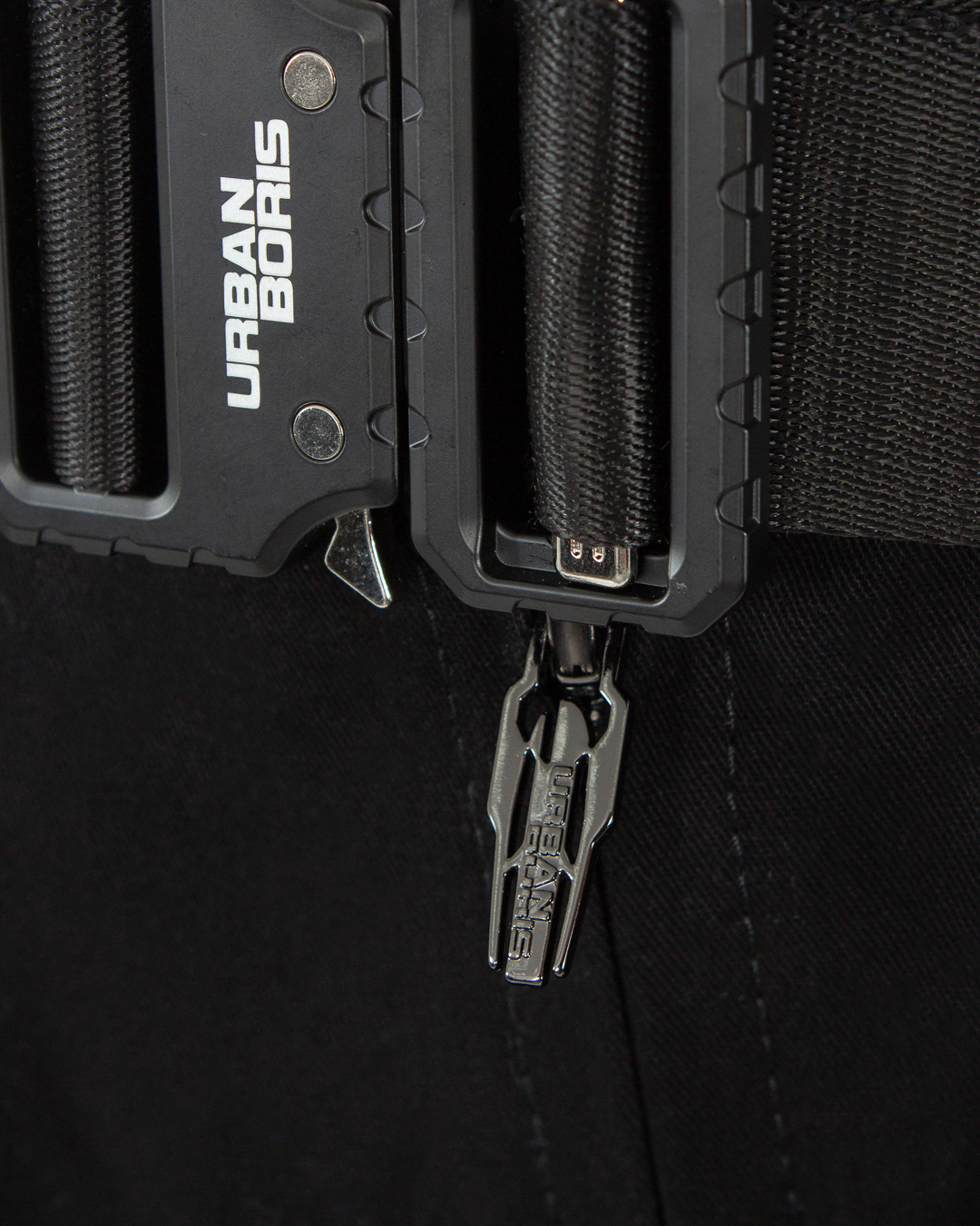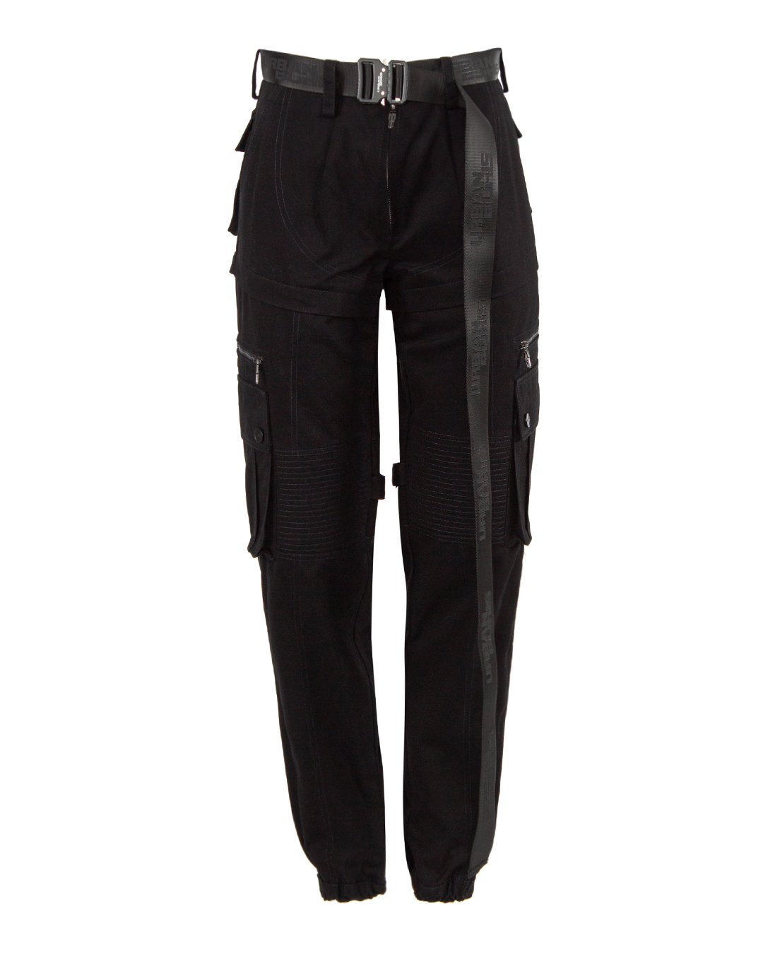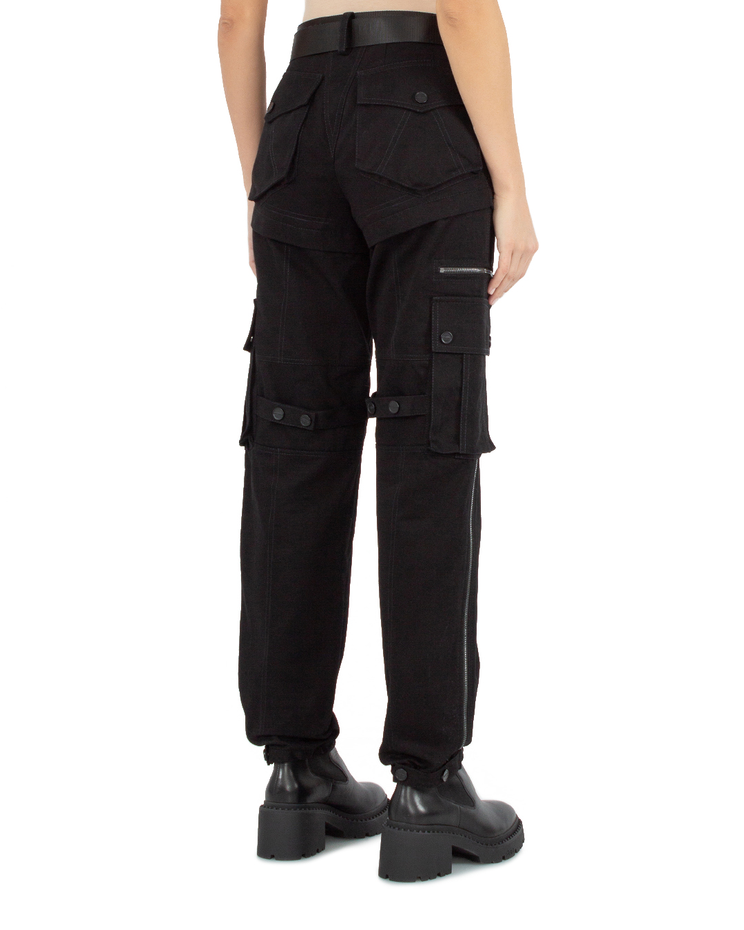 Брюки карго URBAN BORIS из хлопка черного цвета. Модель прямого силуэта с широкими брючинами и накладными карманами. Высокая посадка на талии и застежка на молнию дополнена широким ремнем.