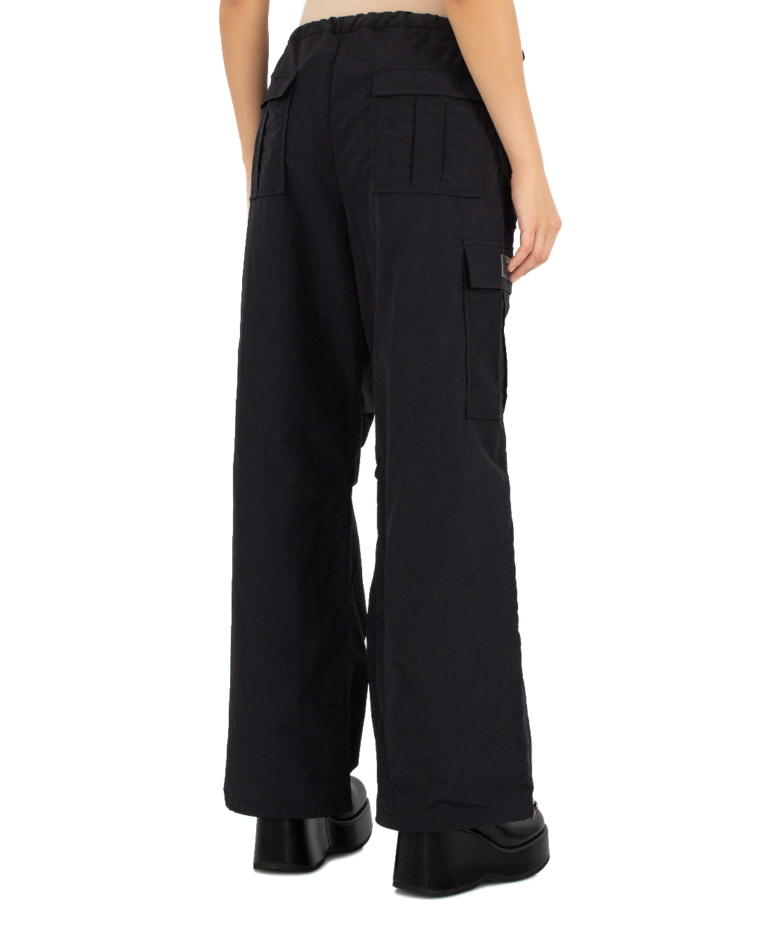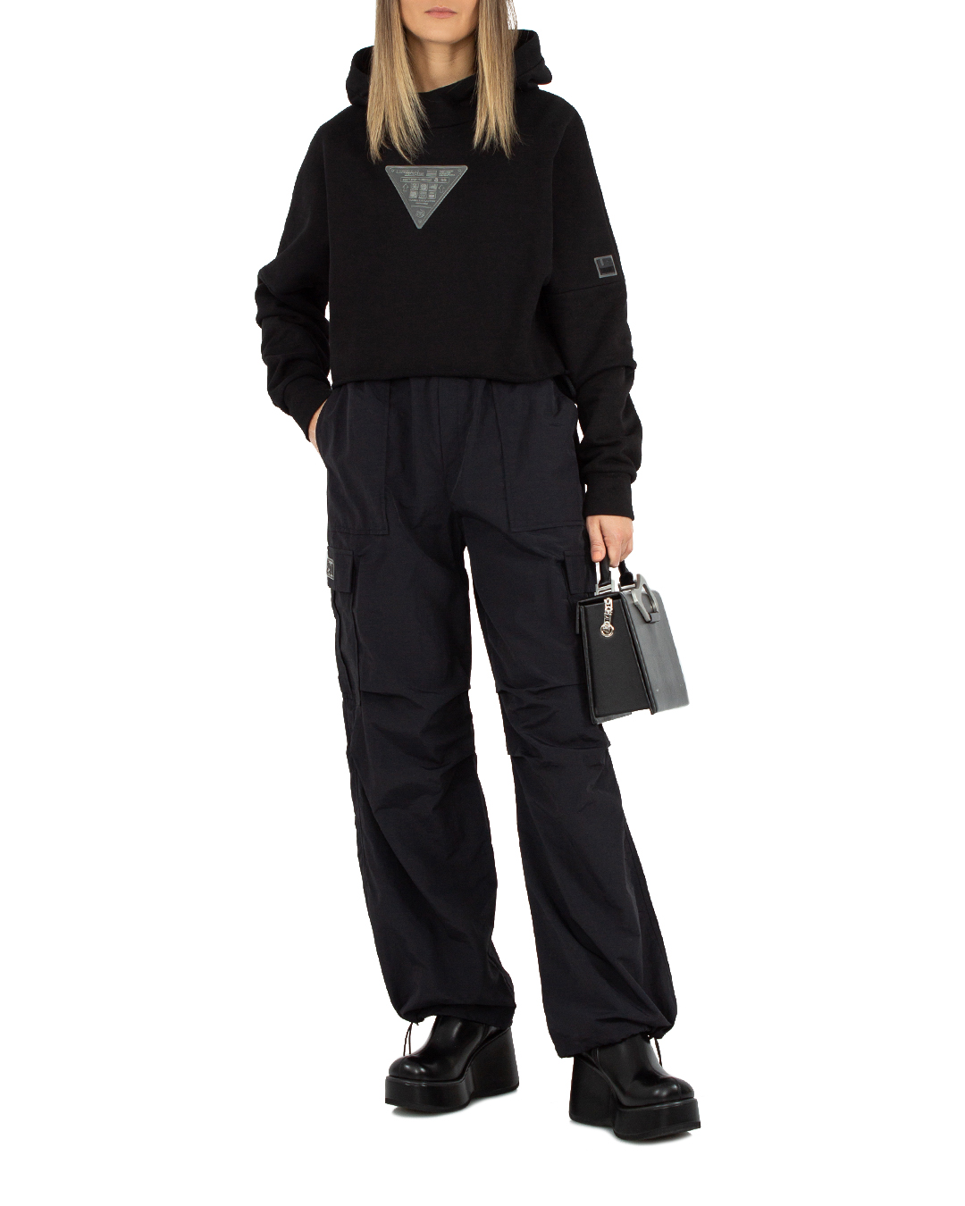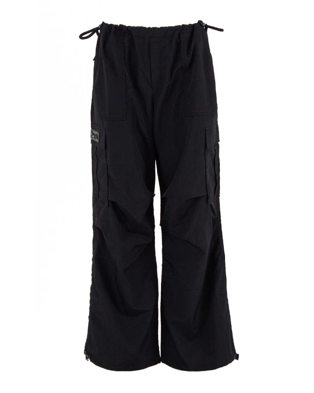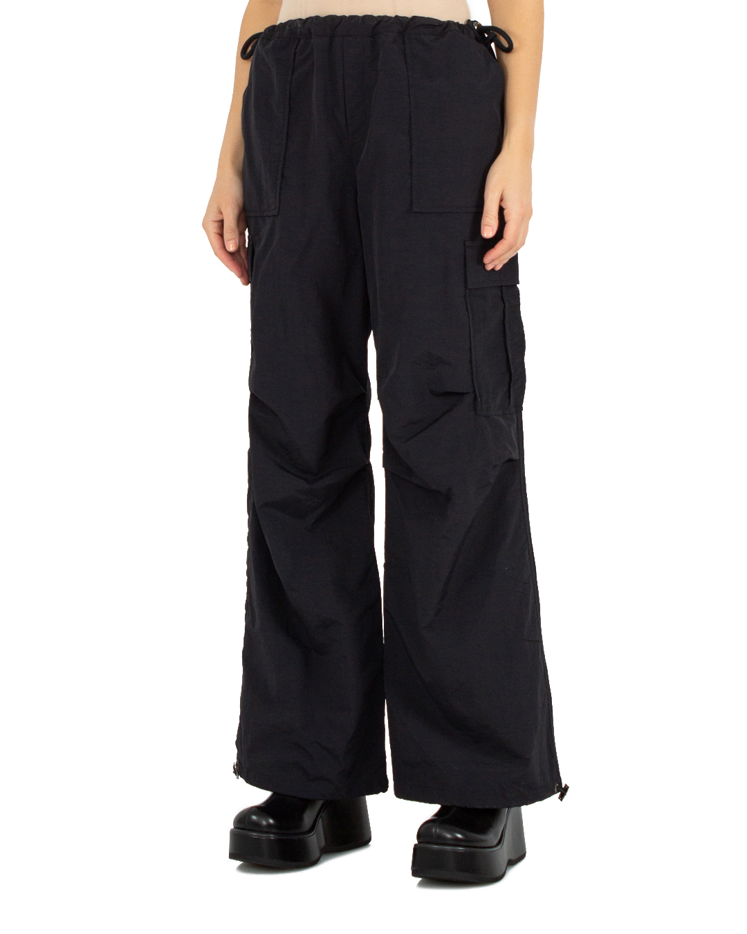 Брюки URBAN BORIS из неэластичного материала черного цвета. Модель прямого свободного силуэта с широкими брючинами и высокой посадкой на талии с кулисками по бокам.