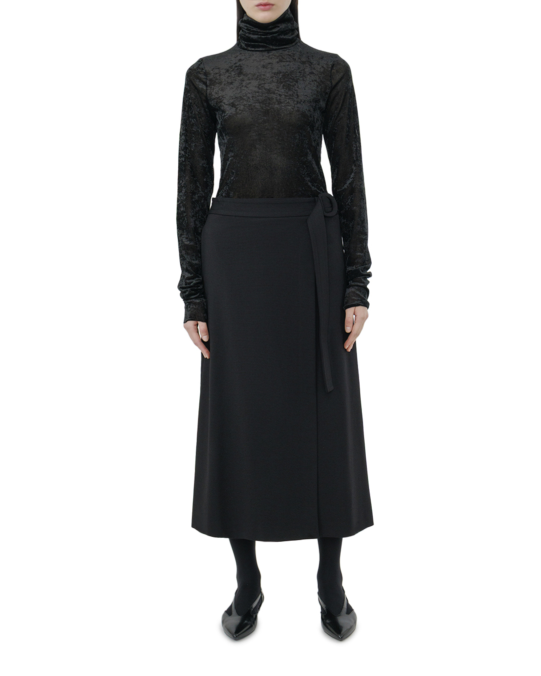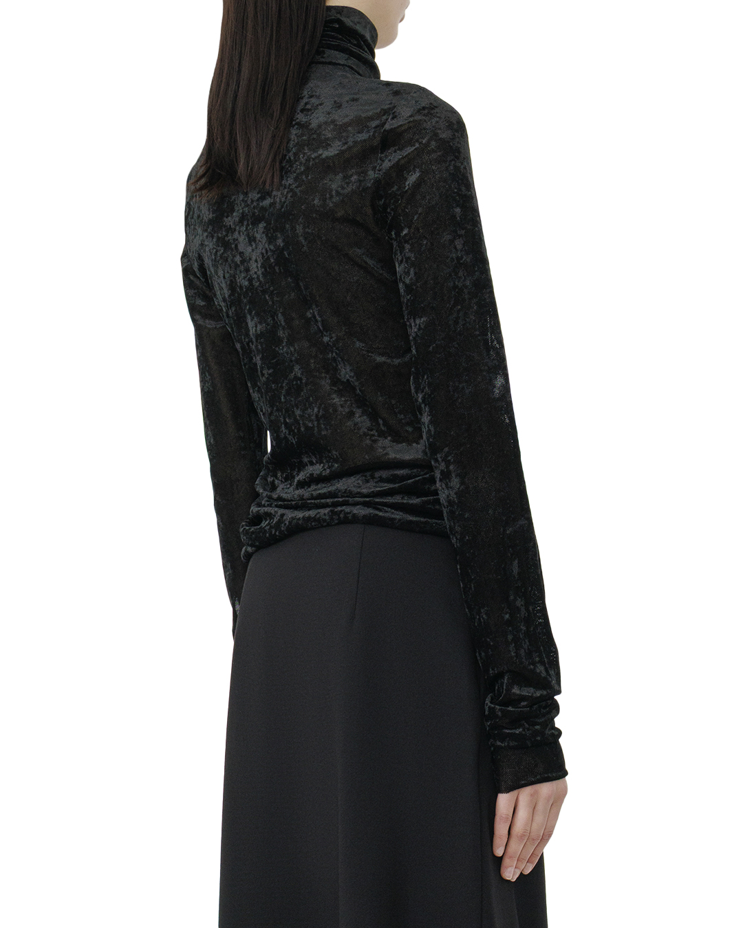 Эта водолазка воплощает в себе элегантность и нежность, благодаря использованию благородной бархатной текстуры, которая мягко огибает фигуру и создаёт неповторимое ощущение комфорта. Материал изделия обладает лёгким мерцанием, которое добавляет глубину и богатство цвету, придавая образу утонченную изысканность. Силуэт водолазки приближен к традиционной форме, сохраняя центральный элемент – высокий воротник, который мягко драпируется и создаёт ощущение оболочки, подчеркивая линию шеи. Длинные рукава обтекаемого кроя добавляют гармонию и визуально удлиняют силуэт. Детали отделки минималистичны, акцентируя внимание на фактуре ткани: отсутствие швов, которые могут отвлечь взгляд, демонстрирует мастерство исполнения и безупречное качество. Такая водолазка станет идеальным дополнением как к деловому гардеробу, так и к вечернему образу, внося нотку изысканности и стиля в любой выбор.