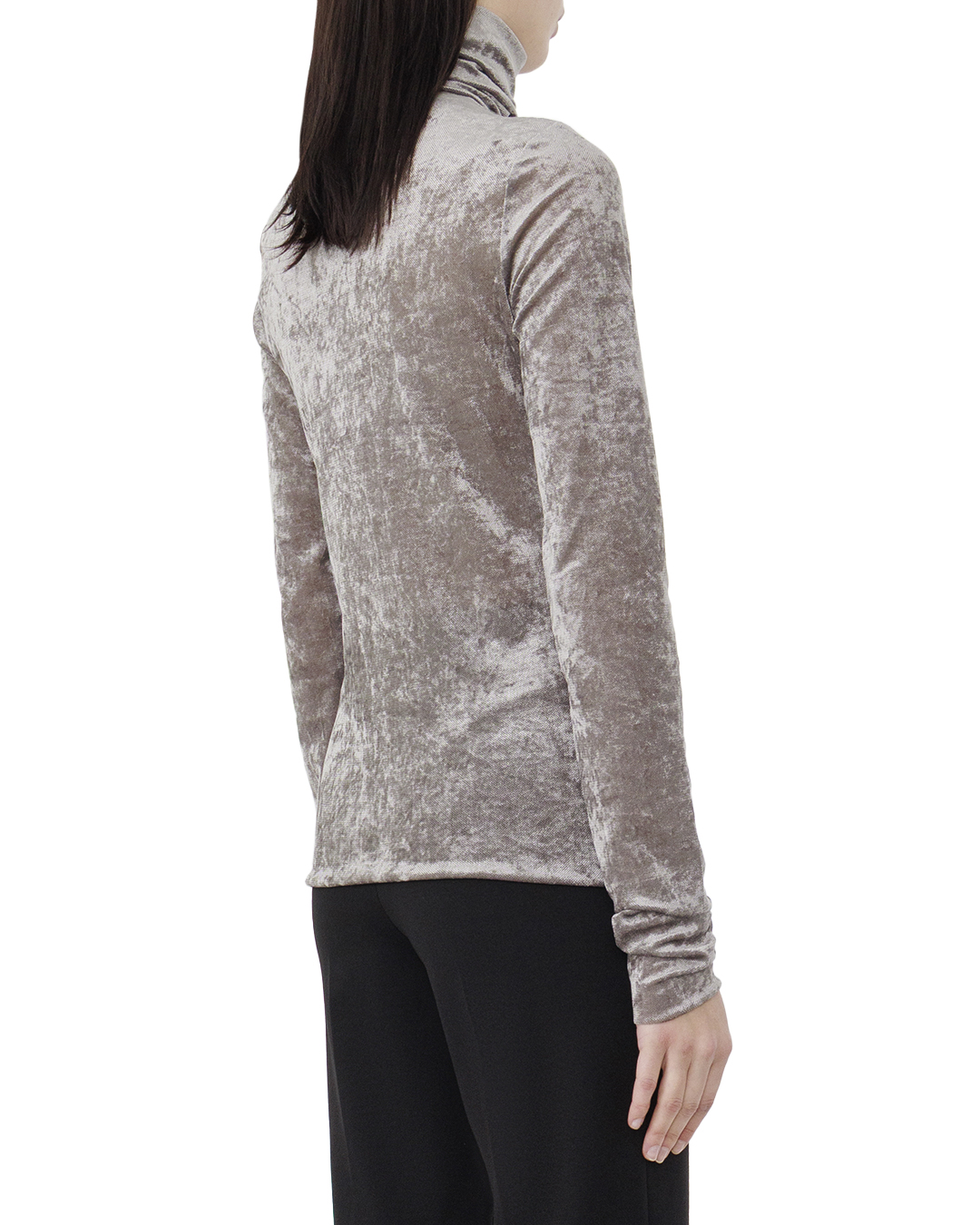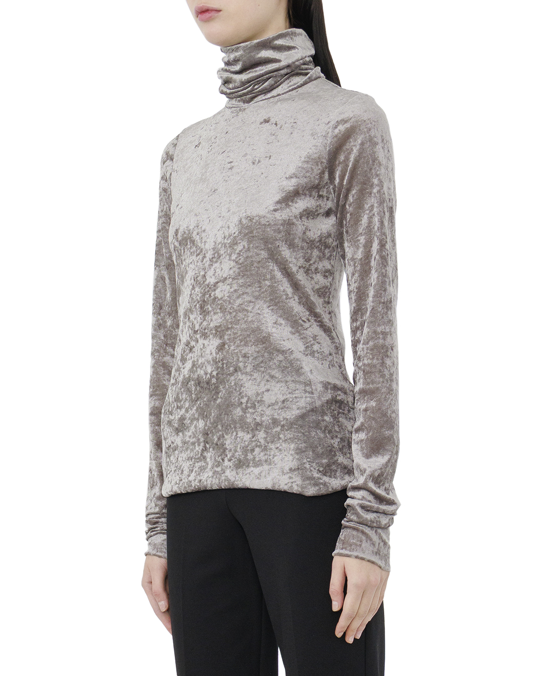 Эта водолазка воплощает в себе элегантность и нежность, благодаря использованию благородной бархатной текстуры, которая мягко огибает фигуру и создаёт неповторимое ощущение комфорта. Материал изделия обладает лёгким мерцанием, которое добавляет глубину и богатство цвету, придавая образу утонченную изысканность. Силуэт водолазки приближен к традиционной форме, сохраняя центральный элемент – высокий воротник, который мягко драпируется и создаёт ощущение оболочки, подчеркивая линию шеи. Длинные рукава обтекаемого кроя добавляют гармонию и визуально удлиняют силуэт. Детали отделки минималистичны, акцентируя внимание на фактуре ткани: отсутствие швов, которые могут отвлечь взгляд, демонстрирует мастерство исполнения и безупречное качество. Такая водолазка станет идеальным дополнением как к деловому гардеробу, так и к вечернему образу, внося нотку изысканности и стиля в любой выбор.