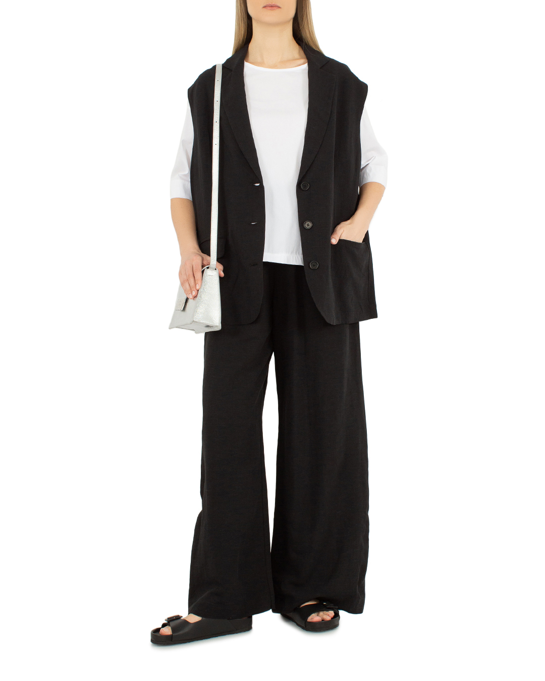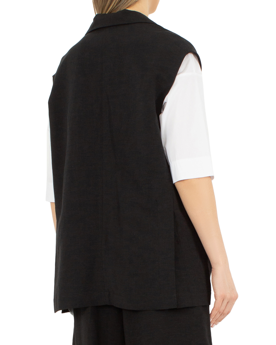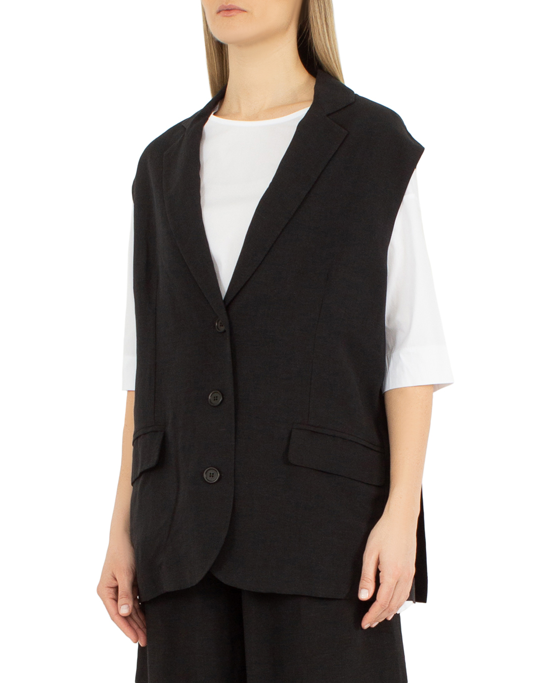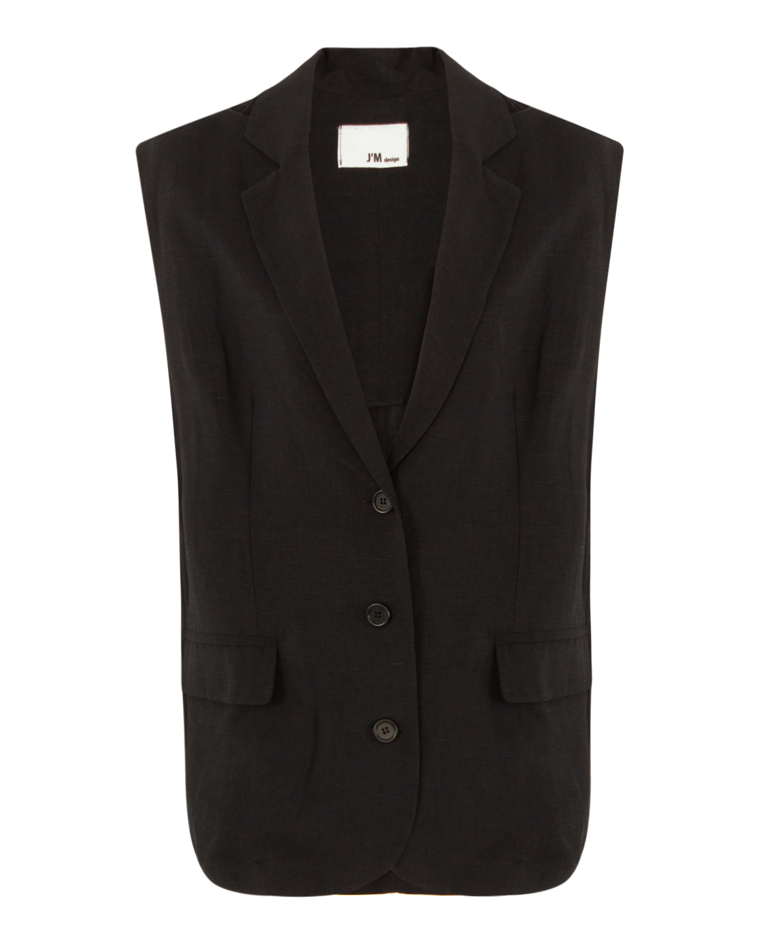Жилет J.M design из вискозы и льна черного цвета. Модель прямого свободного силуэта с застежкой на пуговицы дополнена двумя карманами с клапанами.