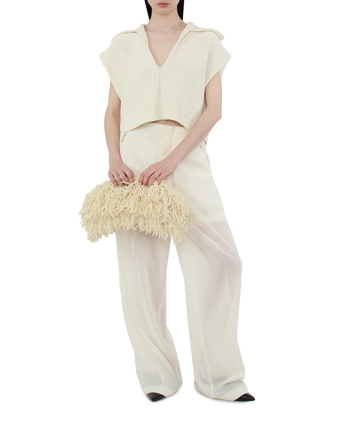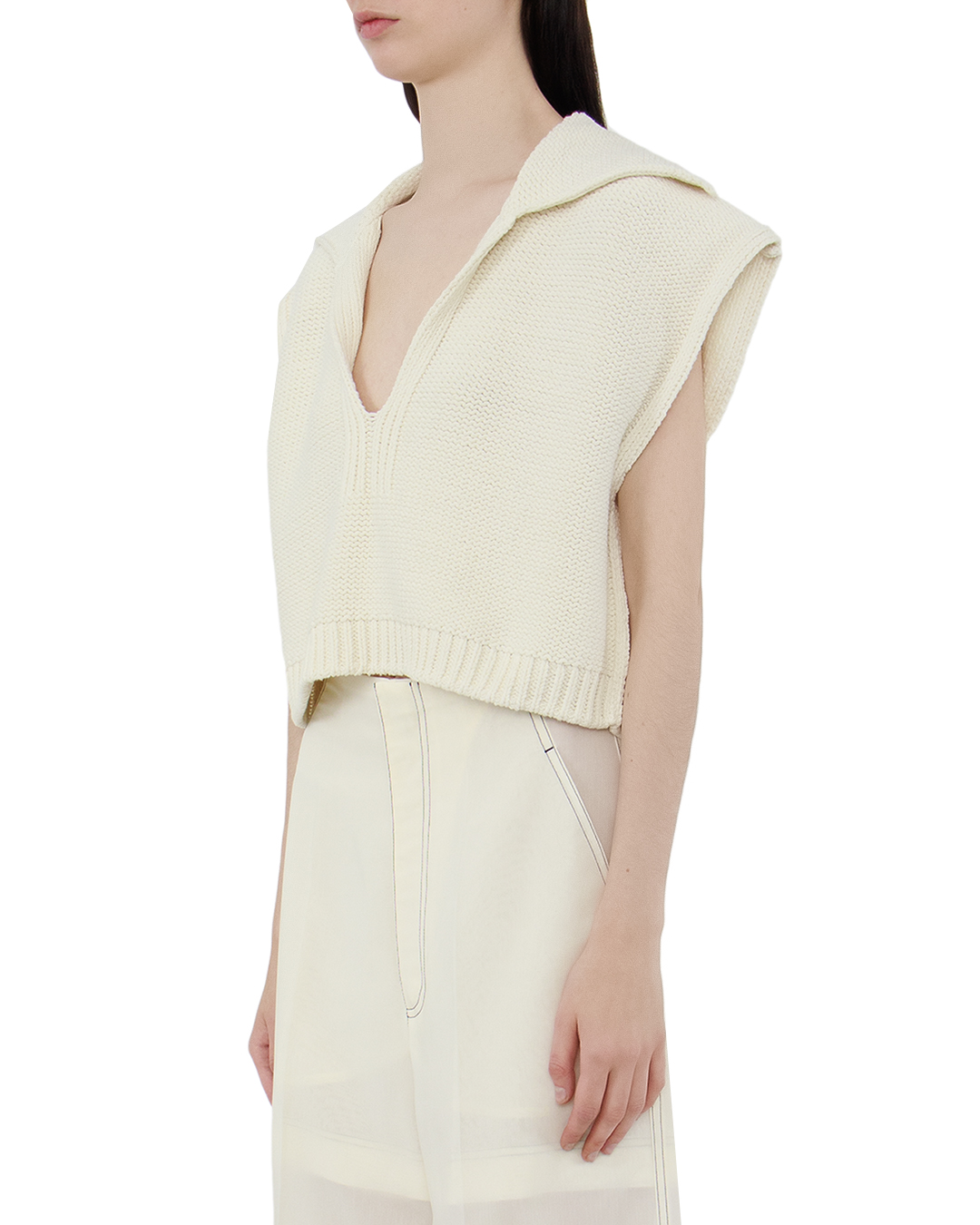 Этот жилет — идеальное воплощение непринужденной элегантности и комфортного стиля. Вязаная текстура придаёт изделию уют и тепло, делая его отличным выбором для прохладной погоды. Глубокий V-образный вырез обрамляет лицо и добавляет нотку женственности, позволяя играть с многослойностью и сочетаниями. Широкие плечи и свободный силуэт создают расслабленный, но стильный образ, который идеально впишется в повседневный гардероб. Мягкие линии и изысканное разнообразие узоров подчеркивают мастерство исполнения и внимание к деталям. Аккуратные края и обработка подчёркивают качество и долговечность изделия. Этот жилет прекрасно сочетается с рубашками и блузами, а также может быть самодостаточным элементом ансамбля, добавляя свежести и актуальности любому образу.