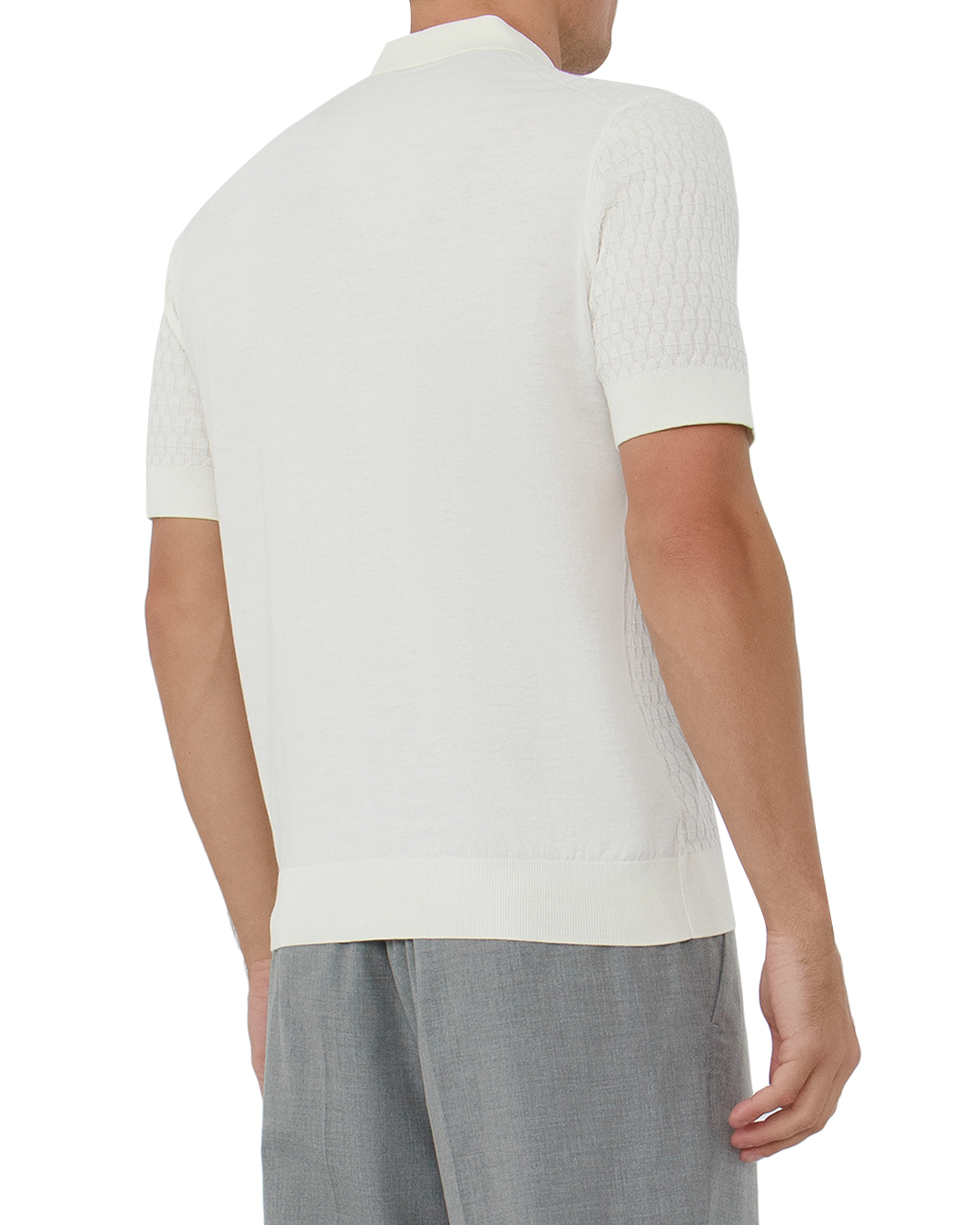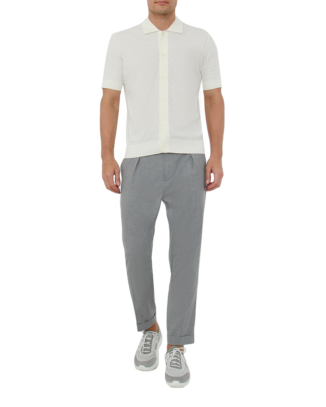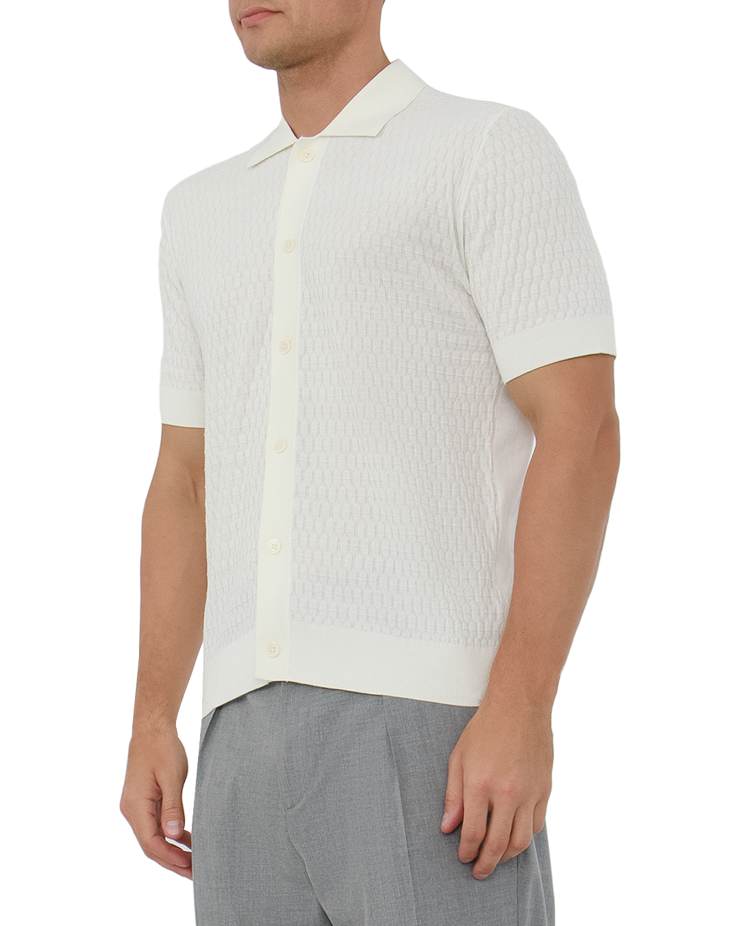 Этот кардиган олицетворяет утонченность и современный шик, прекрасно сочетая в себе классический и актуальный подходы к моде. Выполненный в благородном молочном оттенке, он добавит в любой образ свежесть и элегантность. Структурный узор в вязке придаёт кардигану изысканную текстуру, создавая визуальную глубину и выразительность. Поло-воротник добавляет стильный акцент, подчёркивая деликатную линию плеч и придавая образу изящество. Центральная застёжка на пуговицах выполнена в тон кардигана, что сохраняет гармонию и цельность дизайна. Манжеты и подол оснащены аккуратной риб-отделкой, обеспечивающей идеальную посадку и комфорт. Короткие рукава делают этот кардиган универсальным элементом гардероба, подходящим как для офисного стиля, так и для повседневных выходов. Он легко комбинируется с различными элементами, создавая многослойные и стильные образы.
