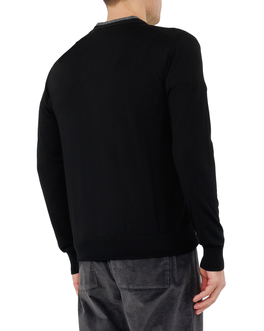 Этот джемпер воплощает в себе утончённую элегантность и непринуждённый стиль, идеально подходящий для любого современного гардероба. Изготовленный из качественного трикотажа глубокого чёрного цвета, он обладает благородством и универсальностью. Горловина оформлена аккуратной окантовкой контрастного оттенка, добавляющей изысканную деталь и создающей визуальный акцент. Этот элемент выгодно подчёркивает линию шеи и добавляет изделию характер. Спущенные плечевые швы подчёркивают расслабленный и современный силуэт, позволяя джемперу идеально сесть по фигуре. Манжеты и нижний край выполнены в технике резинки, что обеспечивает сохранение формы и удобство в носке. Аккуратные швы идеально выровнены, подчёркивая внимание к деталям и высокий уровень исполнения. Джемпер легко комбинируется с различными элементами гардероба, от повседневных до более строгих комплектов, благодаря своим чистым линиям и финальной отделке. Этот джемпер станет базовой частью вашего гардероба, добавляя чувство стиля к любому ансамблю и обеспечивая комфорт на каждый день.