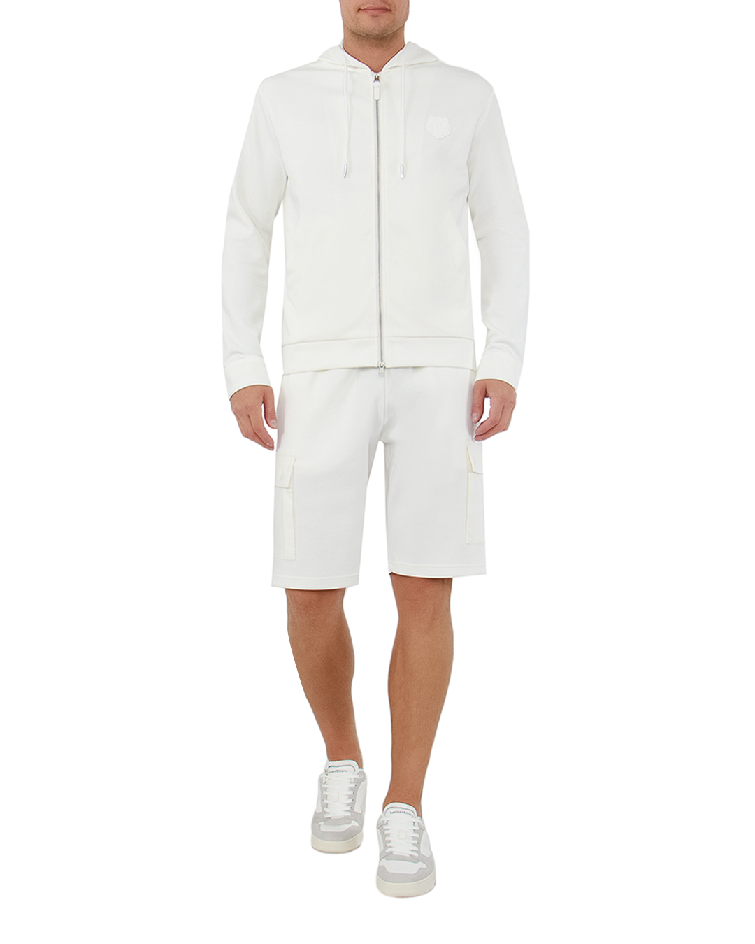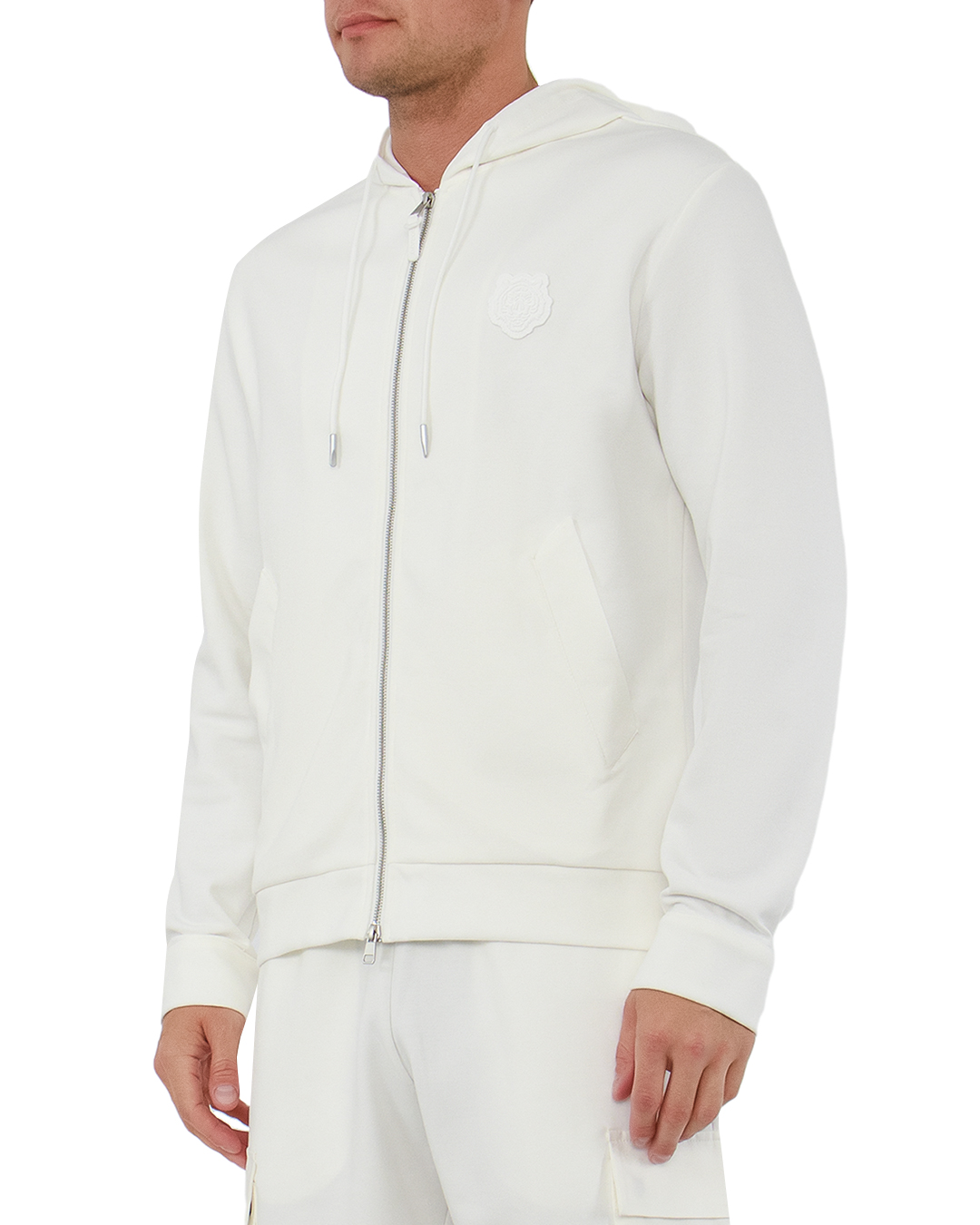Эта олимпийка великолепно сочетает в себе спортивный стиль и утонченную элегантность, сохраняя при этом минимализм и актуальность. Выполненная в чистом белом цвете, она идеально вписывается в любой гардероб, придавая образу свежесть и легкость. Подчеркивая простой, но изысканный фасон, олимпийка изготовлена из мягкой, приятной на ощупь ткани, которая обеспечивает комфорт и свободу движений. Прямой крой в тандеме с регулируемым капюшоном создает гармоничный и сбалансированный силуэт. Металлическая молния по центру не только функциональна, но и служит стильным акцентом, добавляя изделию современности. Вышитый логотип на груди — это деликатная деталь, подчеркивающая бренд и добавляющая эксклюзивности. Манжеты и нижний край отделаны эластичной резинкой, обеспечивающей идеальную посадку. Карманы, скрытые в боковых швах, сохраняют функциональность, оставаясь незаметными и сохраняя целостность дизайна. Эта олимпийка является настоящим воплощением утилитарного шика и станет незаменимой в создании актуальных и стильных образов.